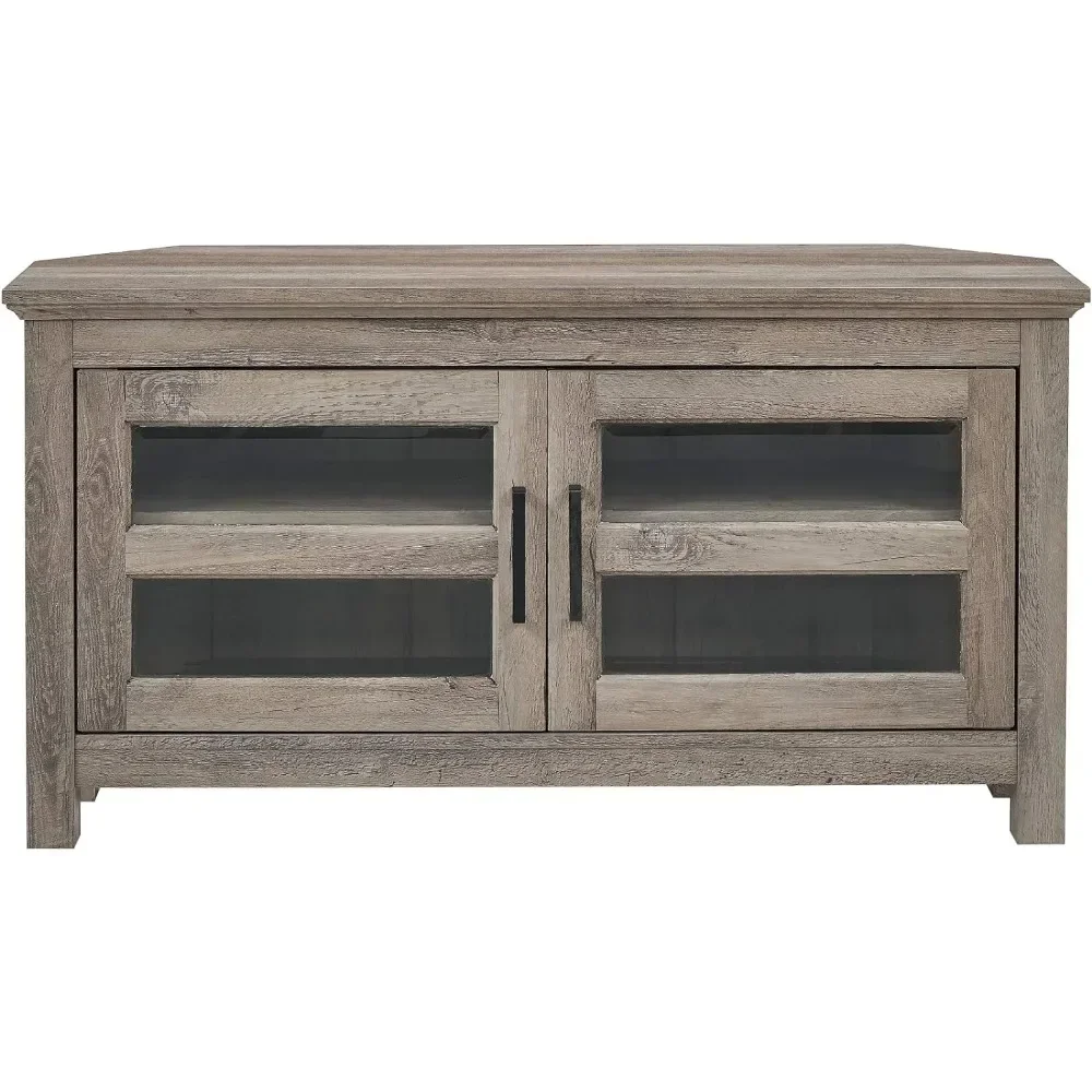 Modern Farmhouse Wood Corner Universal TV Stand for TV's Up to 50" Flat Screen Living Room Storage Entertainment Center 44 Inch