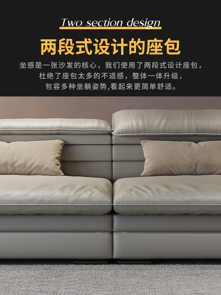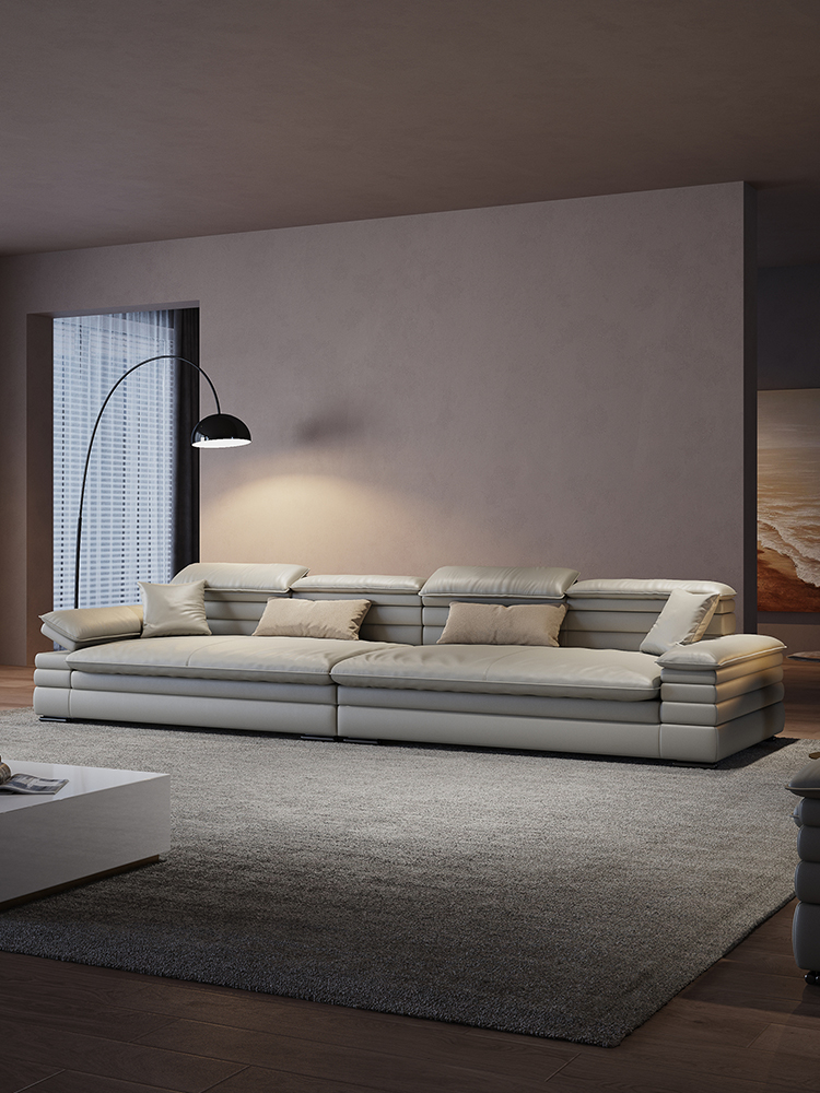 Modern Large Living Room Three-Seat Straight Row Designer Model Genuine Leather Italian Light Luxury Sofa