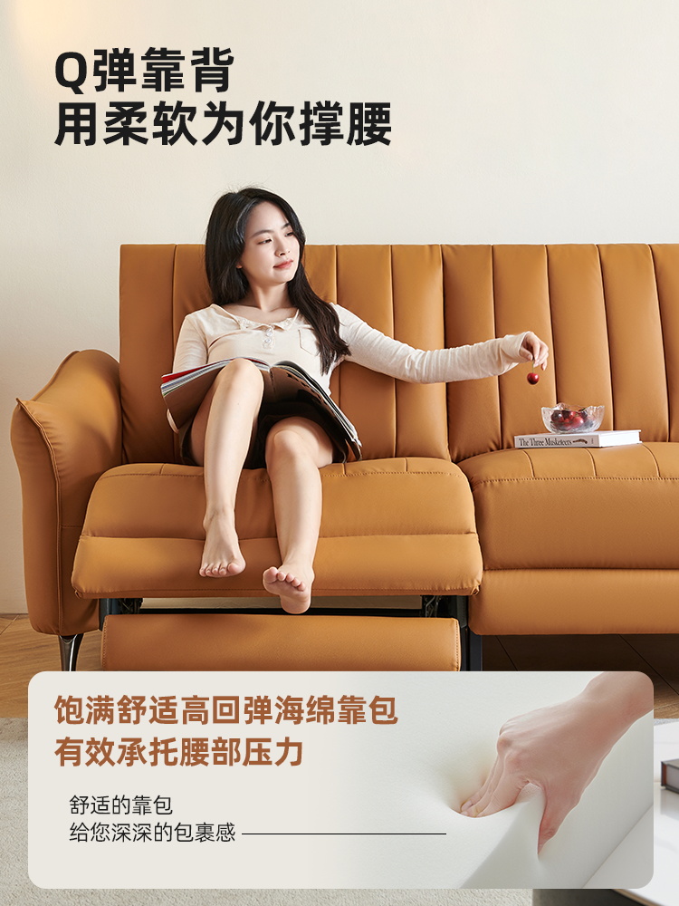 Modern Living Room First Class Electric Functional Sofa Straight Row Cream Style Light Luxury Sofa