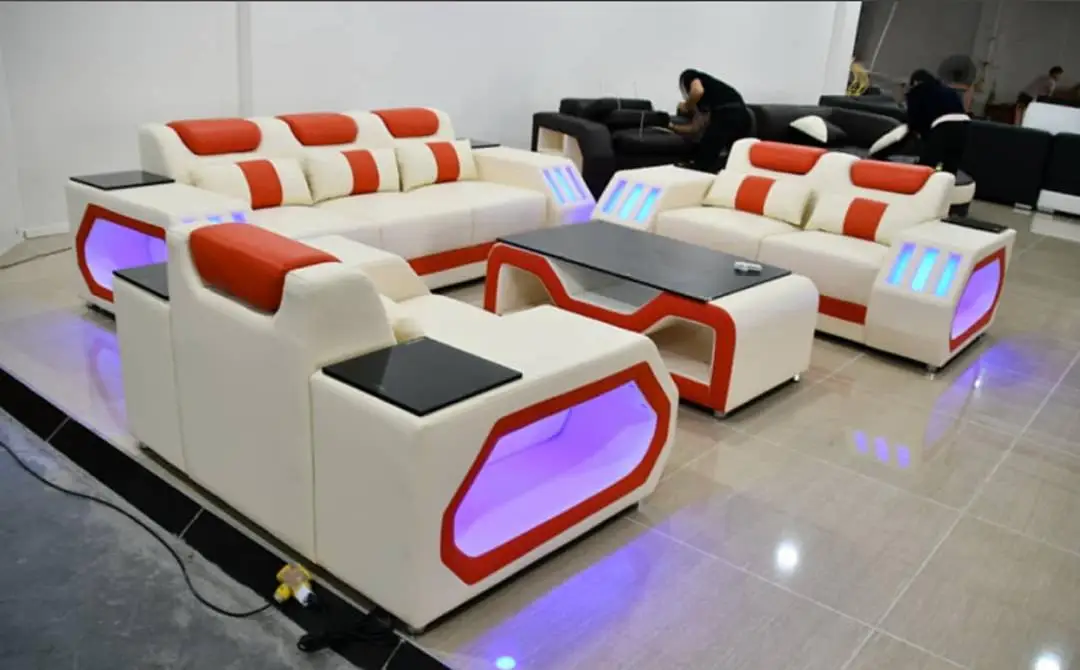 Modern Style Genuine Leather Red Living room Sofas Sofa Bed Set Furniture