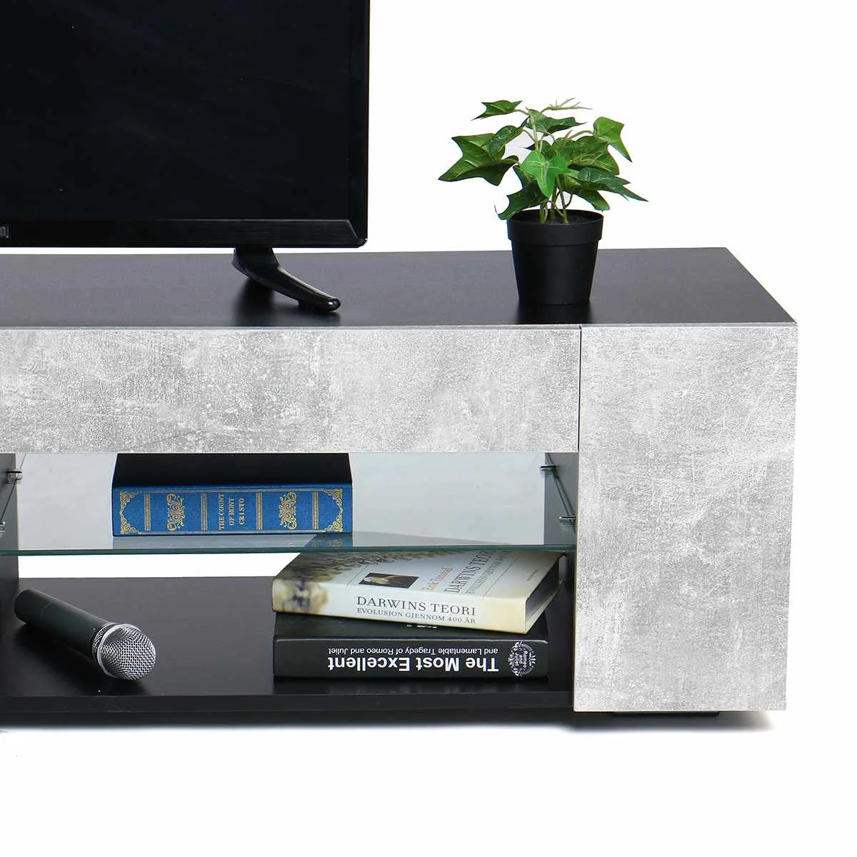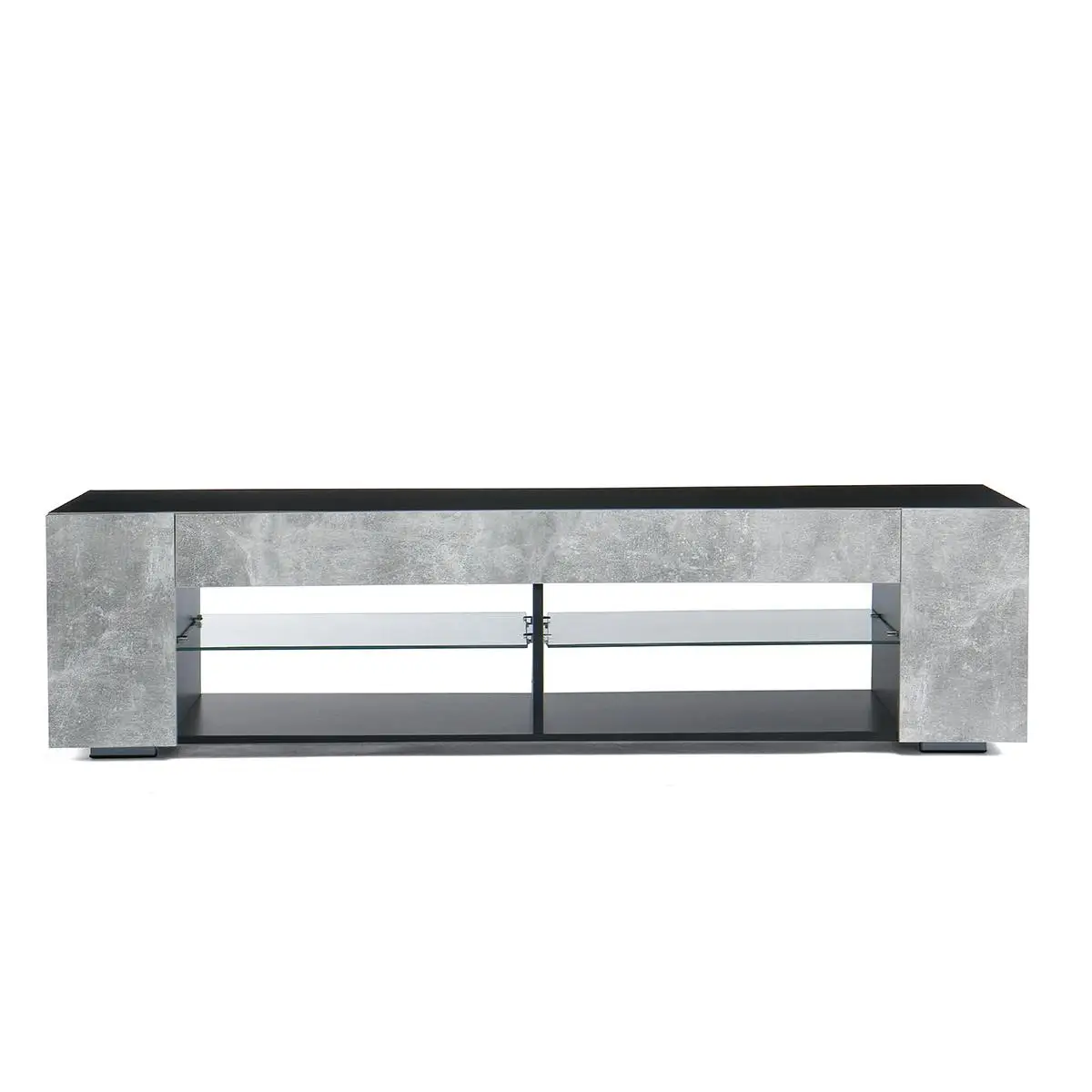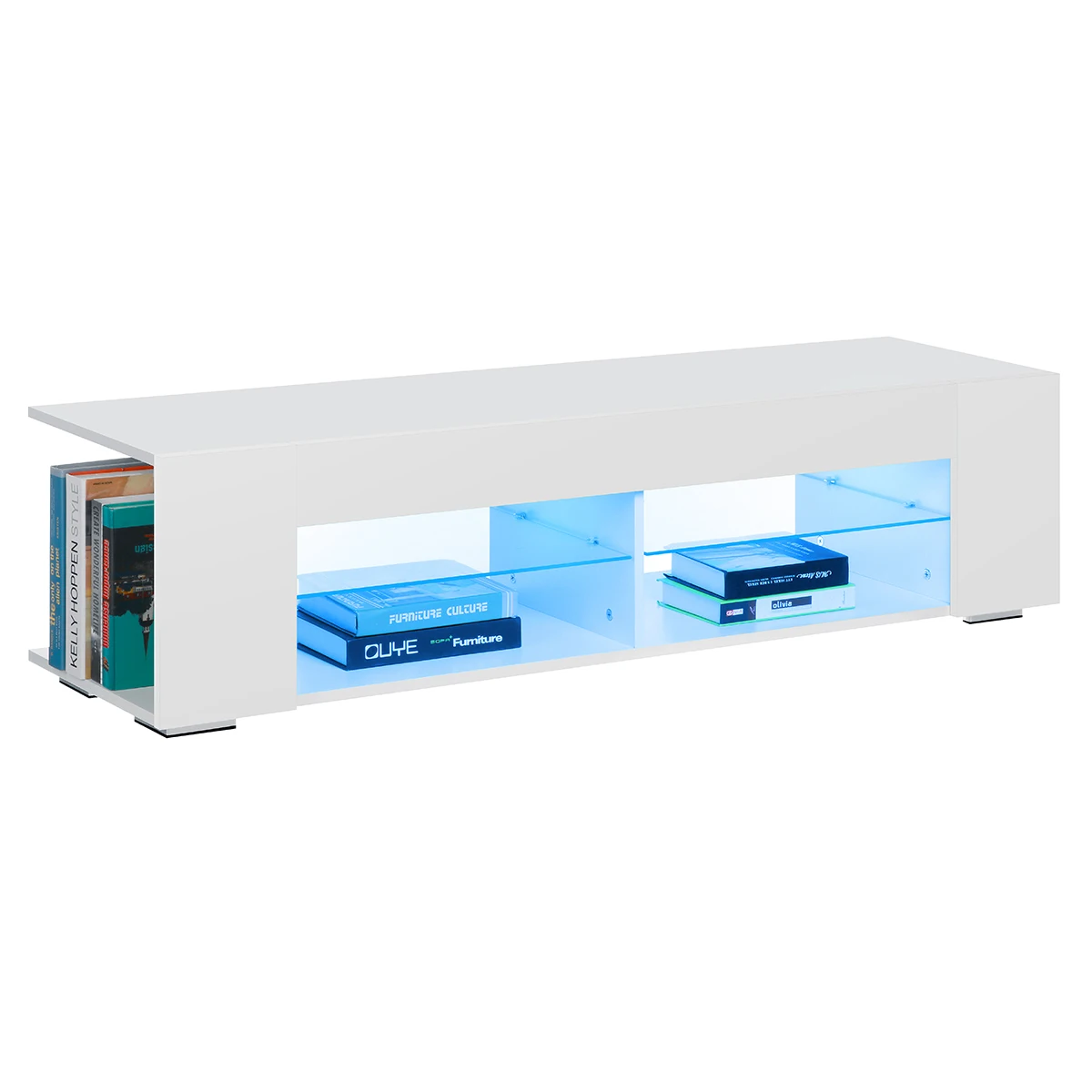 With stunning design and premium quality, this TV stand is ideal for home lovers. Featuring glass shelves with muti-colors LED back-light (remote control for color changing is including), which is made of MDF, and plenty of ample storage space for you. It is not only a TV cabinet, but also a decoration for your home living room.