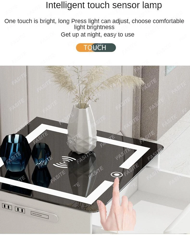 Multi-functional Intelligent Bedside Cabinet Wireless Charging with Light Bluetooth Audio Fingerprint Lock Bedside Cabinet