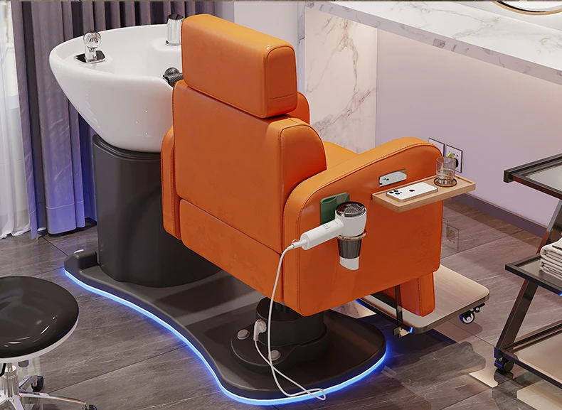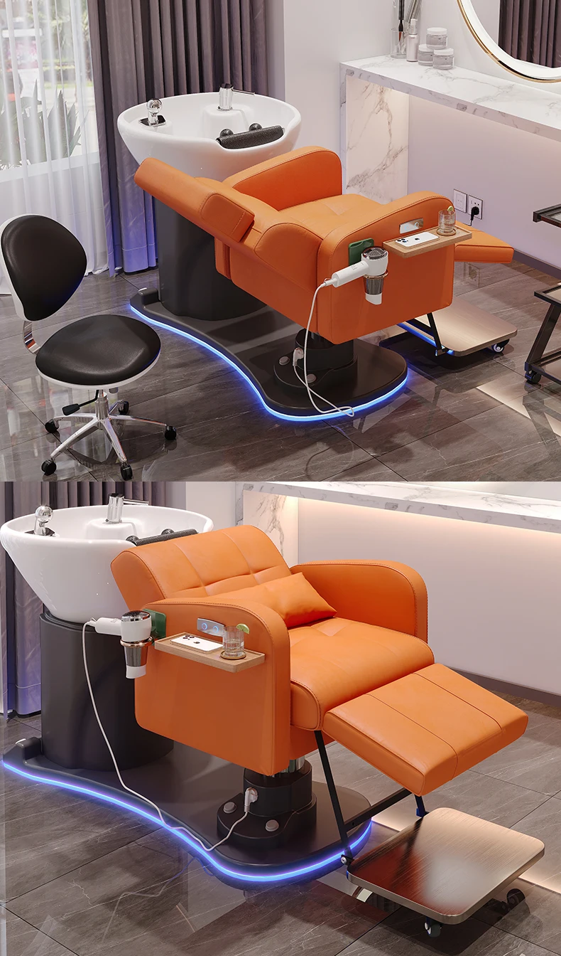 New design rotatable saloon hair wash chair electric modern shampoo bowl bed with led lighting salon furniture