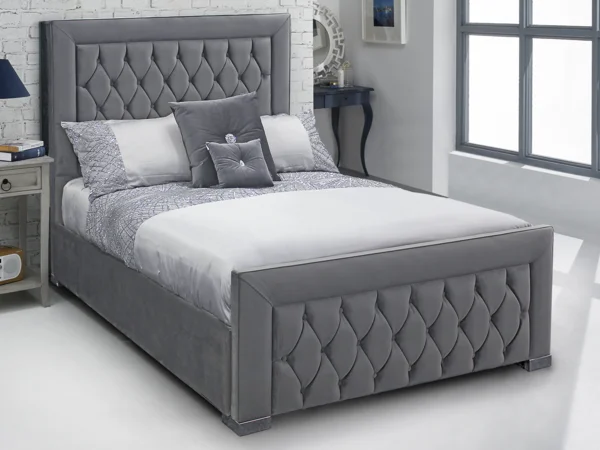 NEW Hot Sale Dark Gray Velvet Fabric Italian Design Queen Size Bed Frame