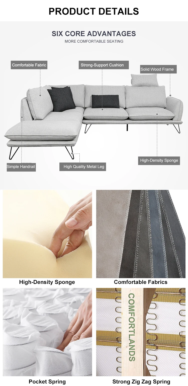 New Material Fabric Sofa Modern Furniture L Shaped Sofa Designs Living Room Corner Sofa Set Furniture