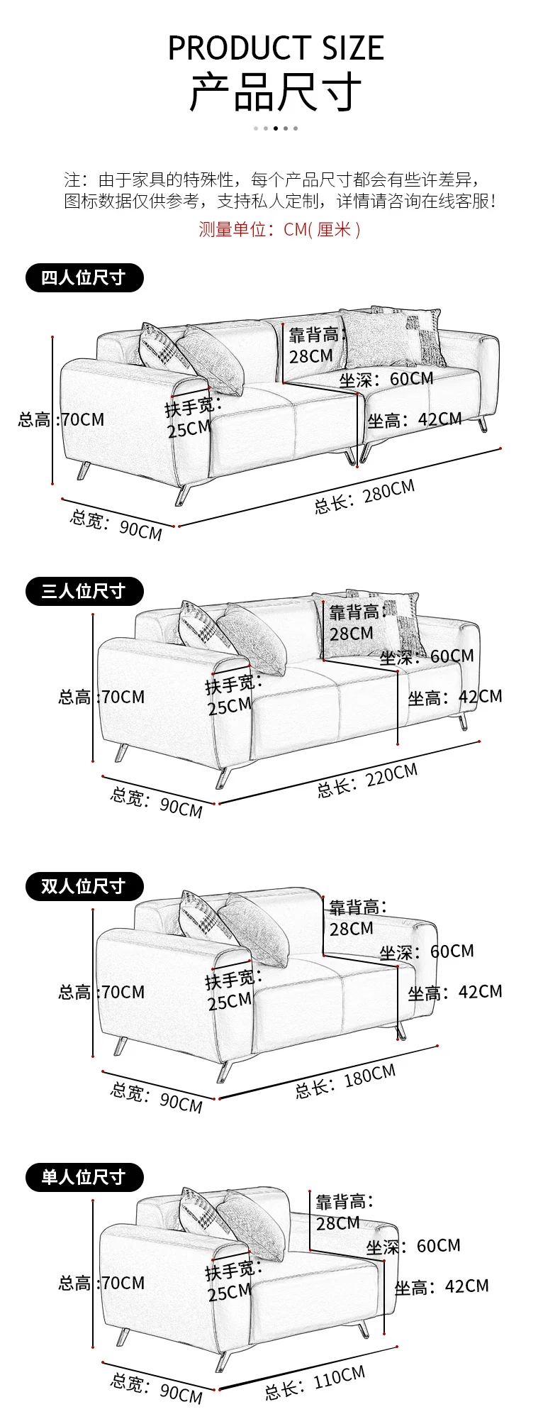 Nordic leather sofa modern simple very simple style small family living room straight row three person four person combination s