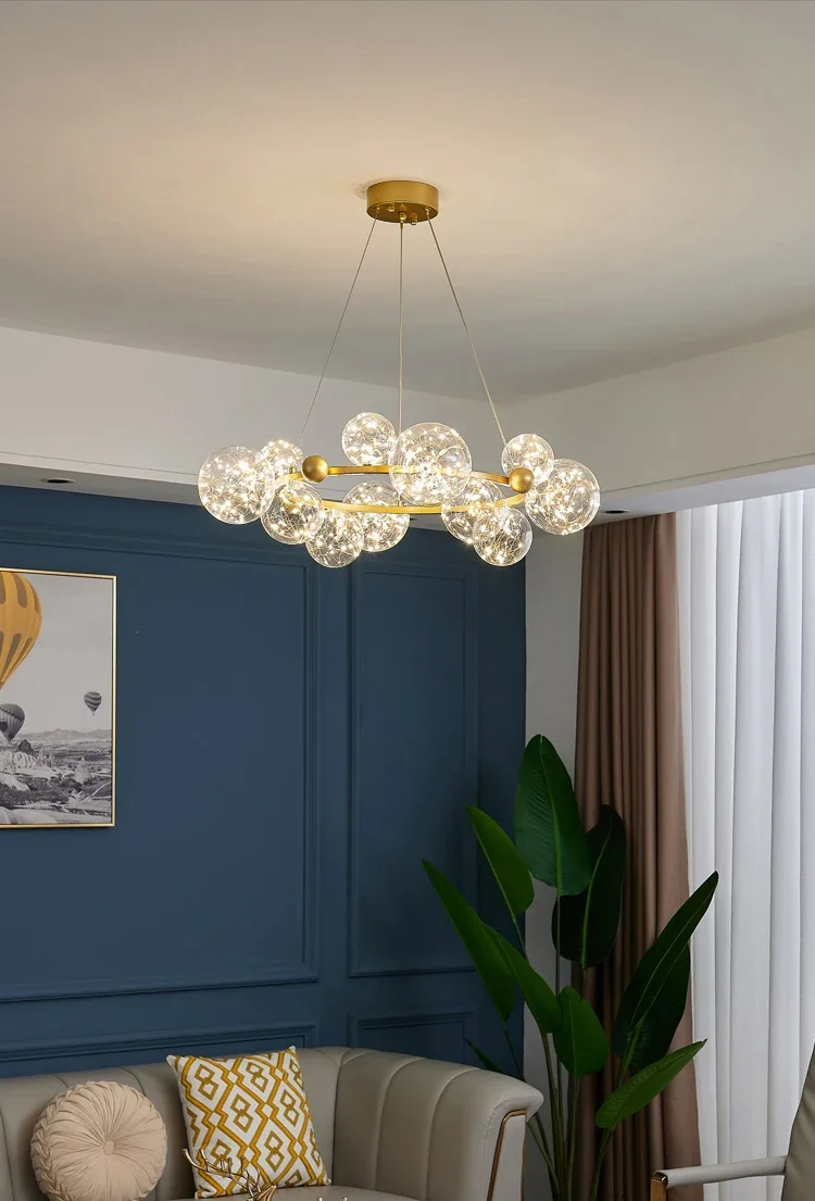 2020 Simple Chandelier Nordic Style Glass Bubble Ball Long Ring Living Dining Room Bedroom Home Design Decorative Lighting Gold