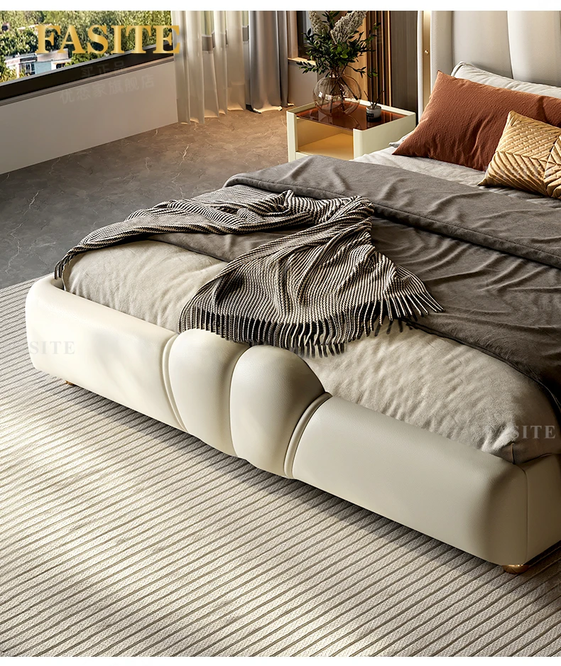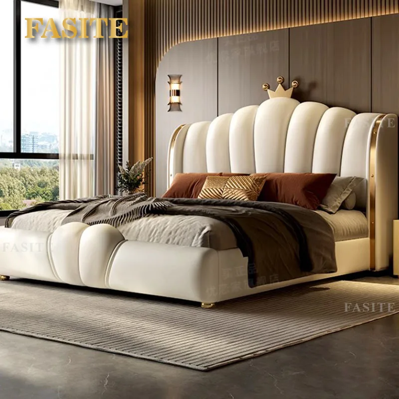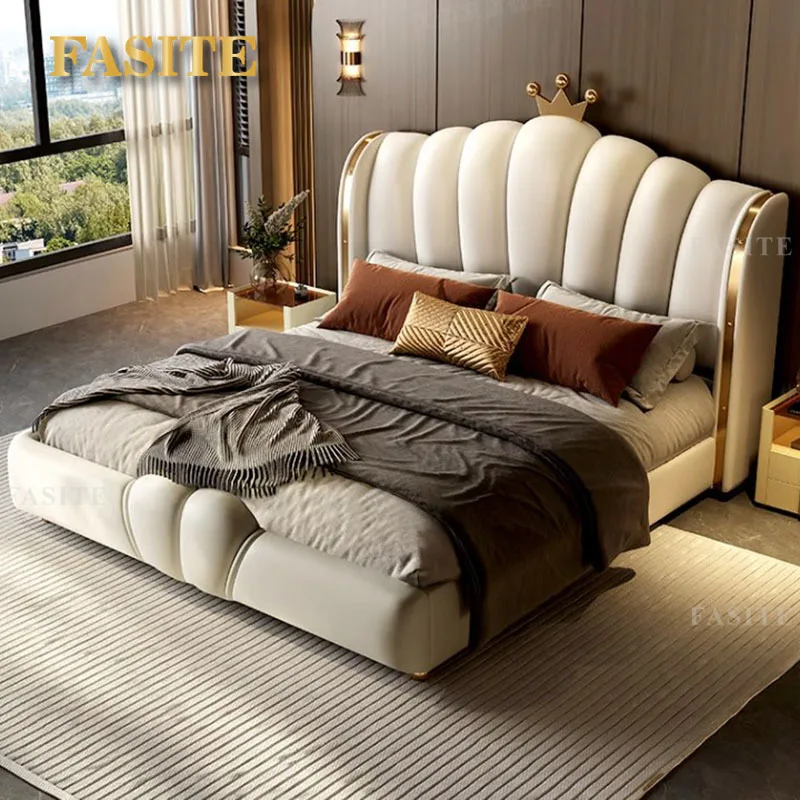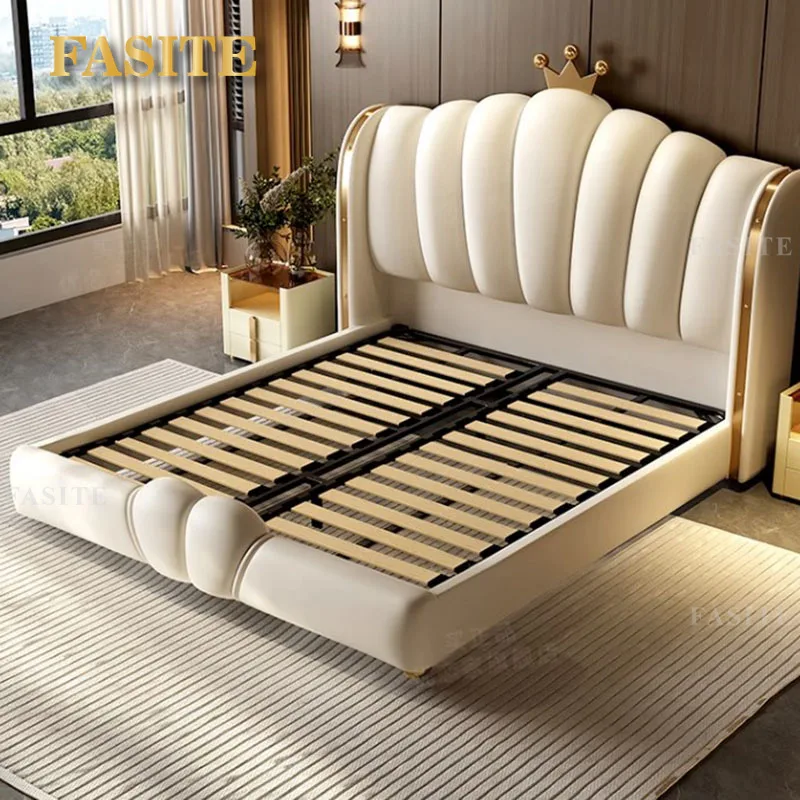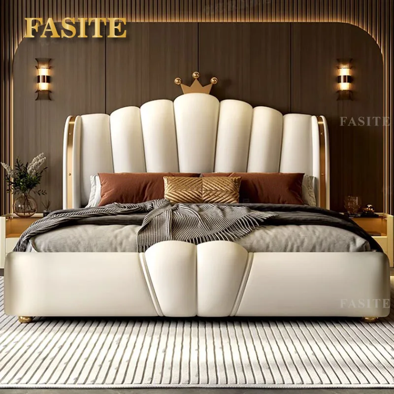Nordic modular Aesthetic Bed King Size Cheap Cute Modern Queen double Bed White Faux Leather Camas Matrimonial Bedroom Furniture