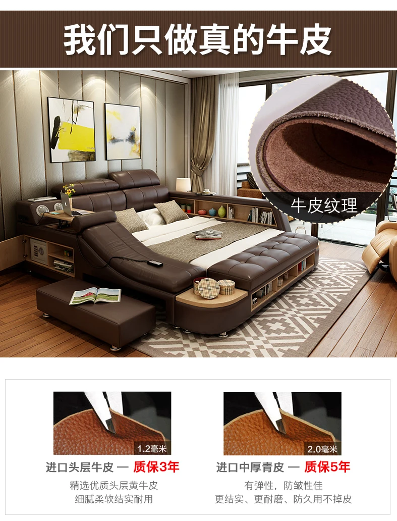 Nordic Queen Modern Bed Large Villa Master Massage Electric Bed Storage Multifunctional Muebles Para Dormitorio Home Furniture