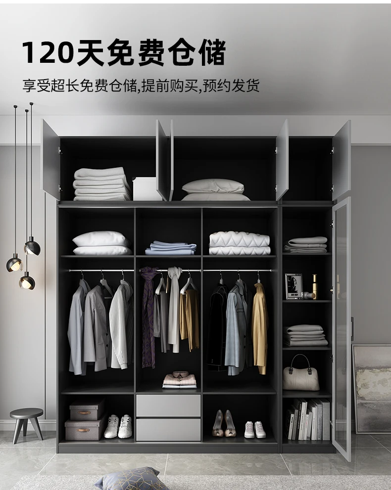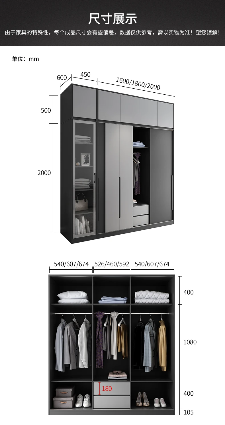 Nordic simple bedroom sliding door wardrobe modern household rental wardrobe economical apartment storage wardrobe