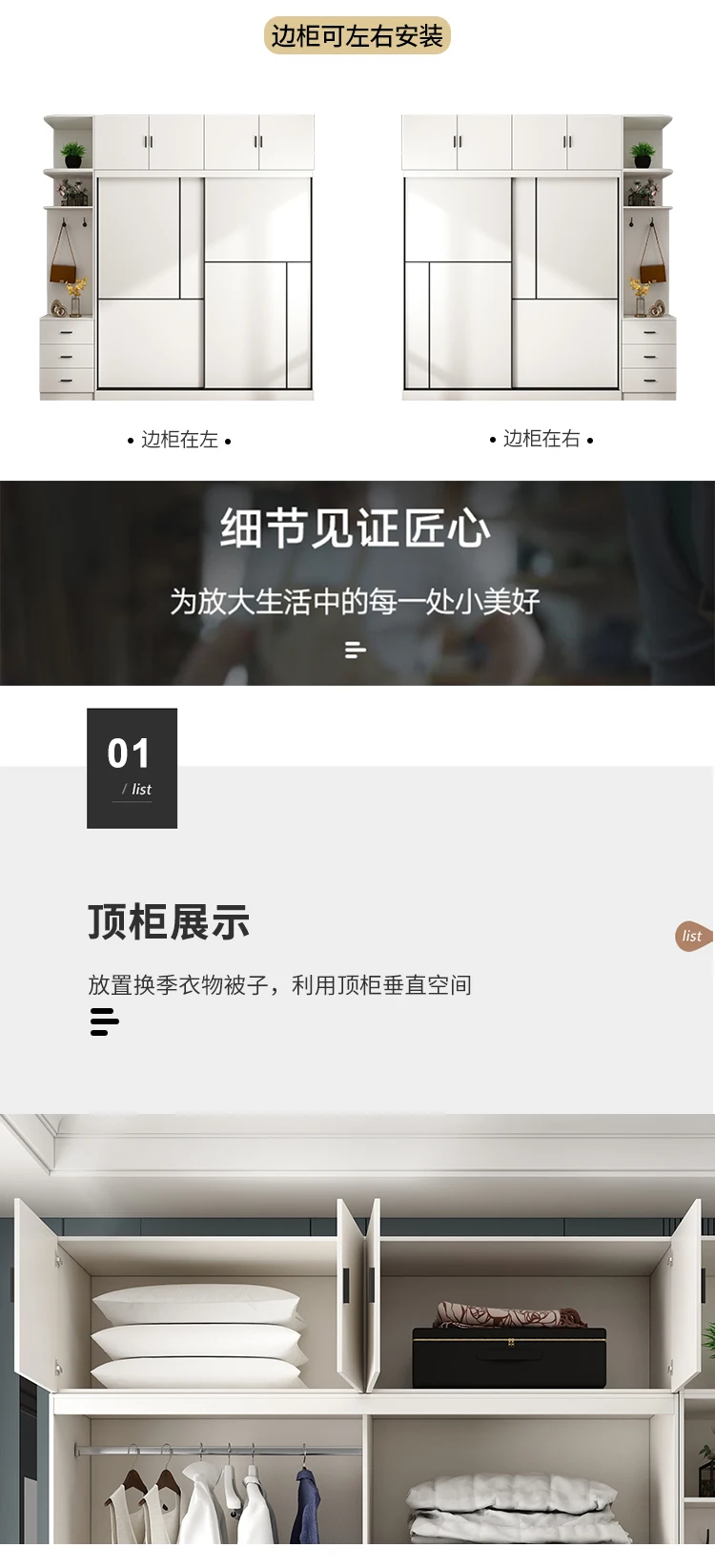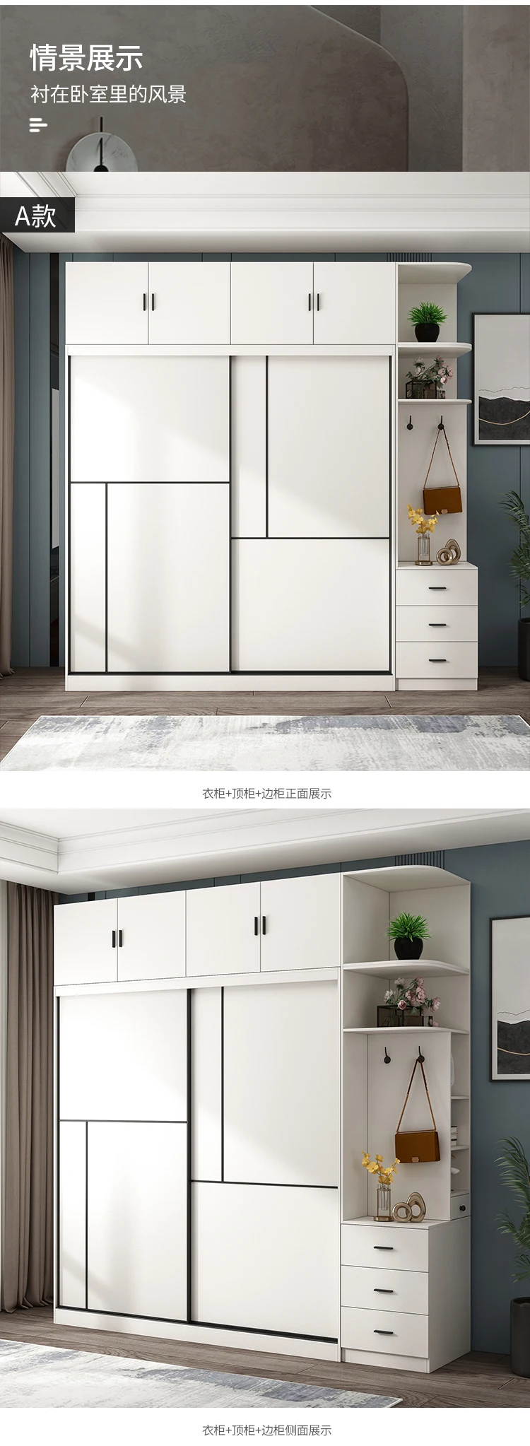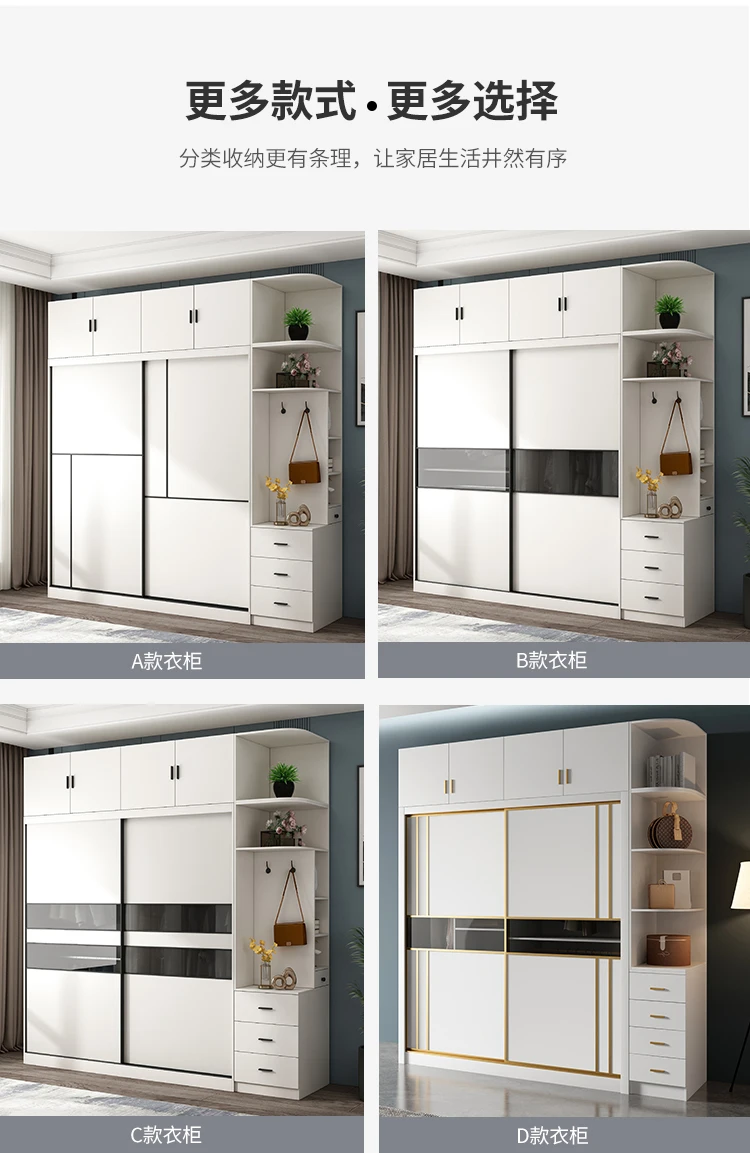 Nordic sliding door wardrobe simple modern assembly household bedroom sliding door wardrobe small family storage cabinet
