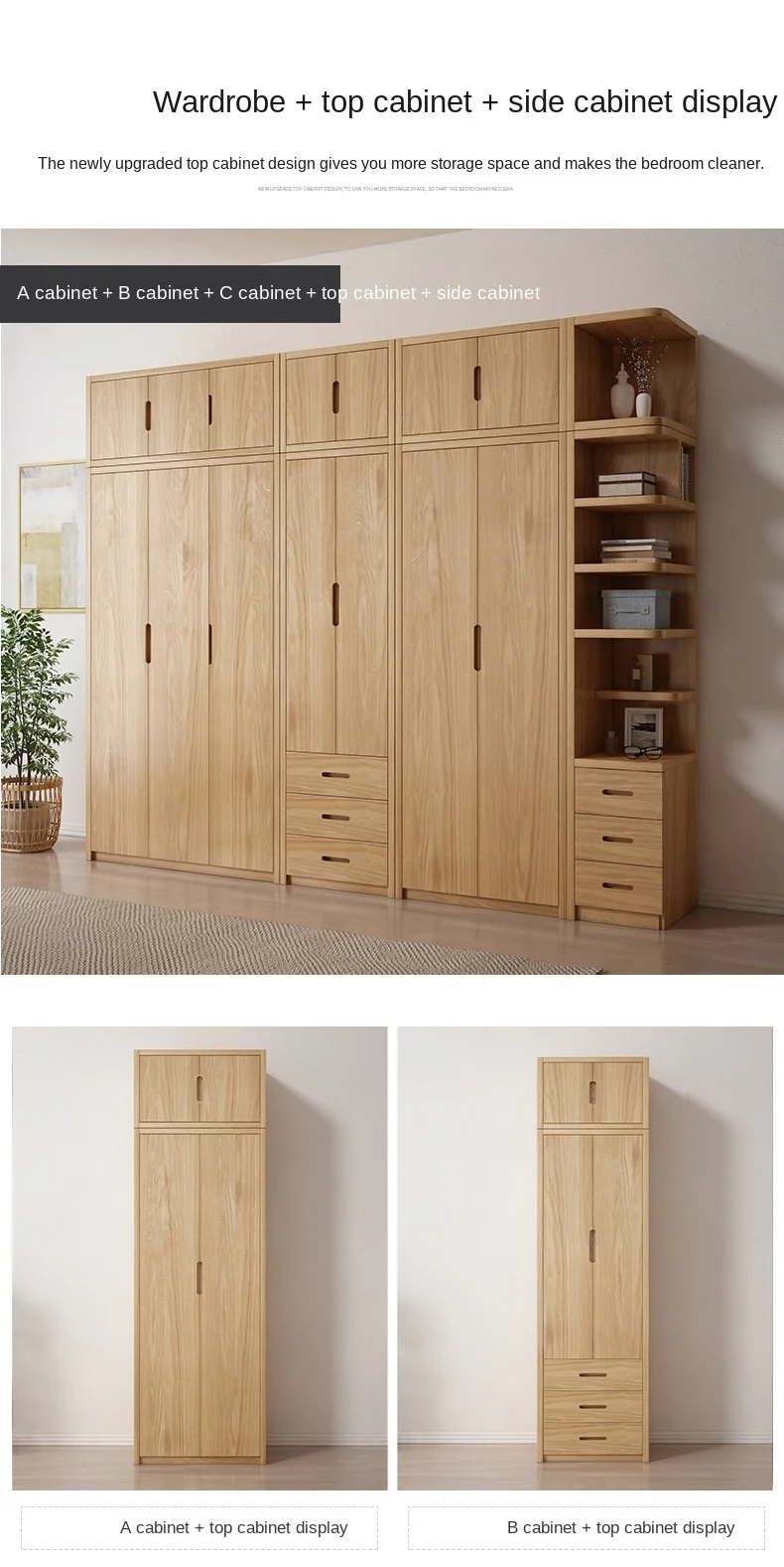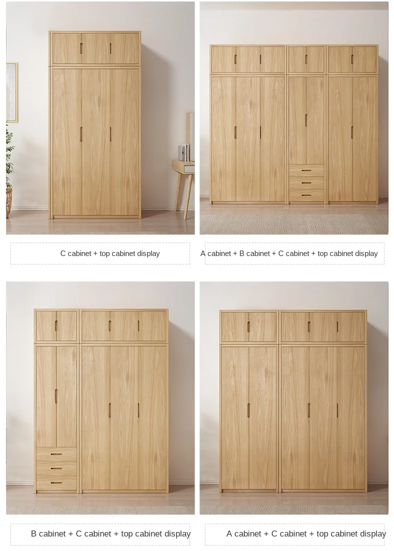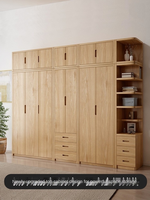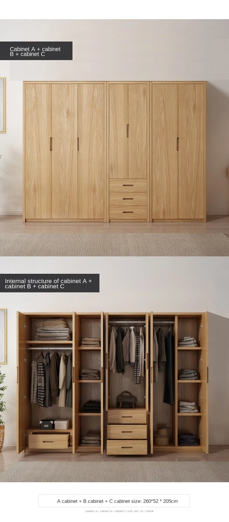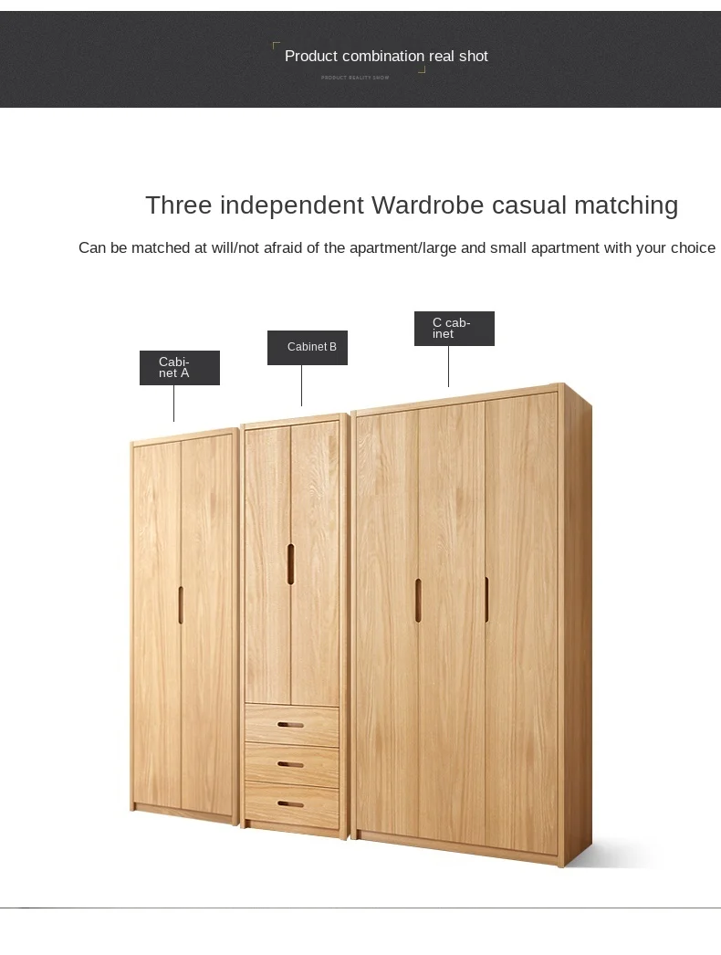 Oak modern minimalist wardrobe flat open locker bedroom coatcase log storage assembly