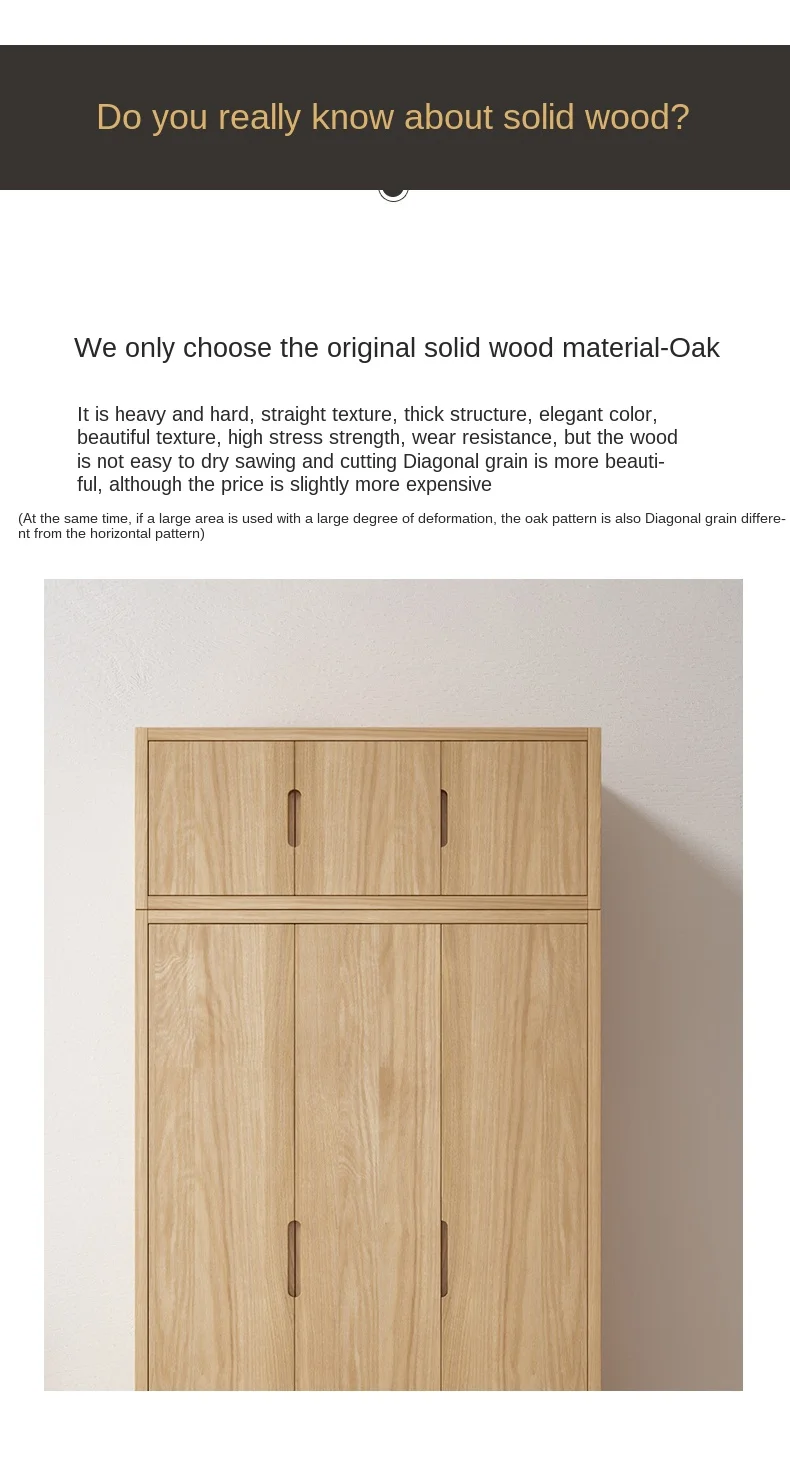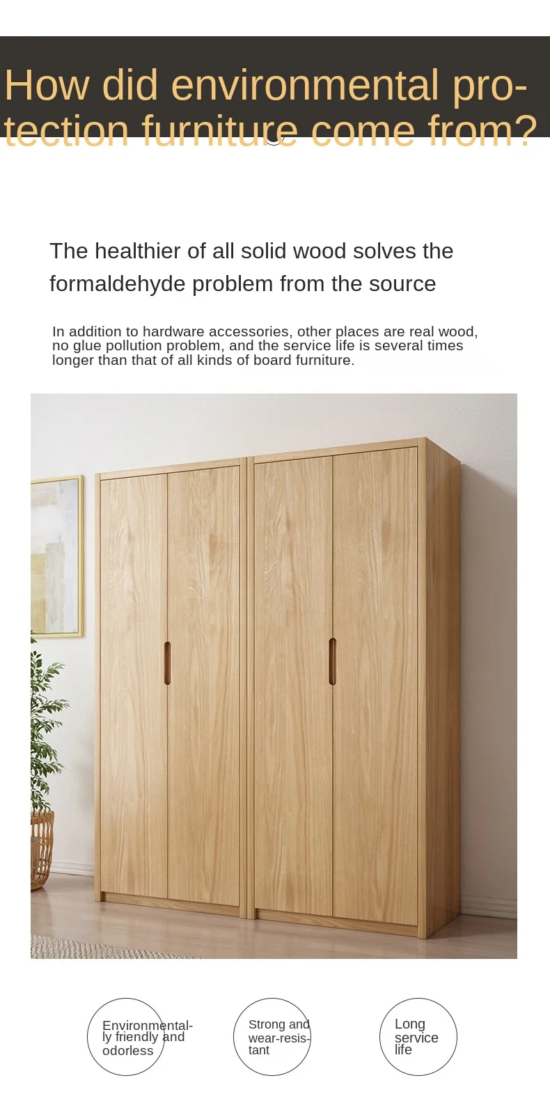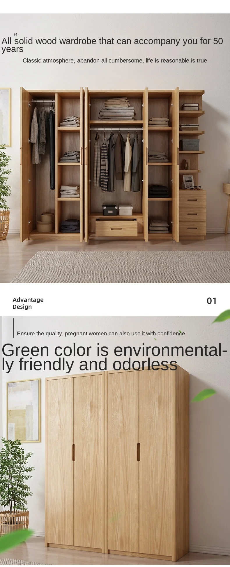 Oak modern minimalist wardrobe flat open locker bedroom coatcase log storage assembly