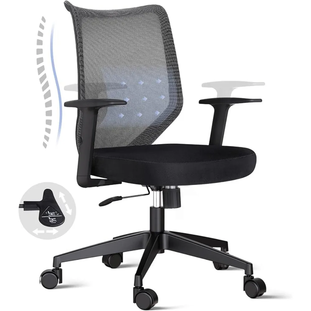 Office Chair with Adjustable Arms Mid-Back Desk Chair Black - Breathable Mesh Ergonomic Office Chair - Swivel, Height Adjustable