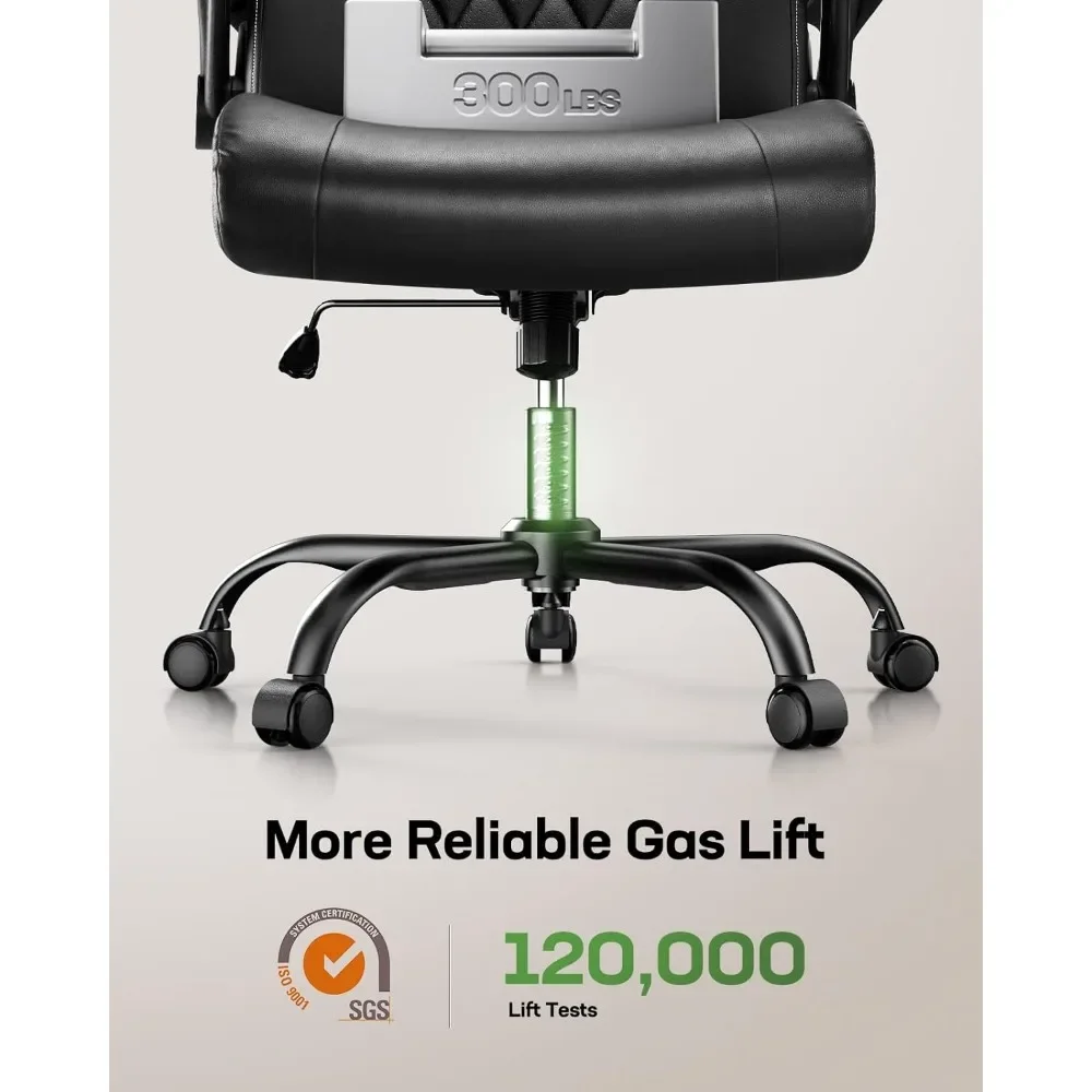 - Built to Last: Engineered with a 27.6″ oversized base and an SGS-certified gas lift, this office desk chair provides maximum stability for up to 300 lbs of weight. The center of the backrest is breathable to help keep you cool and dry with better airflow to your body.
