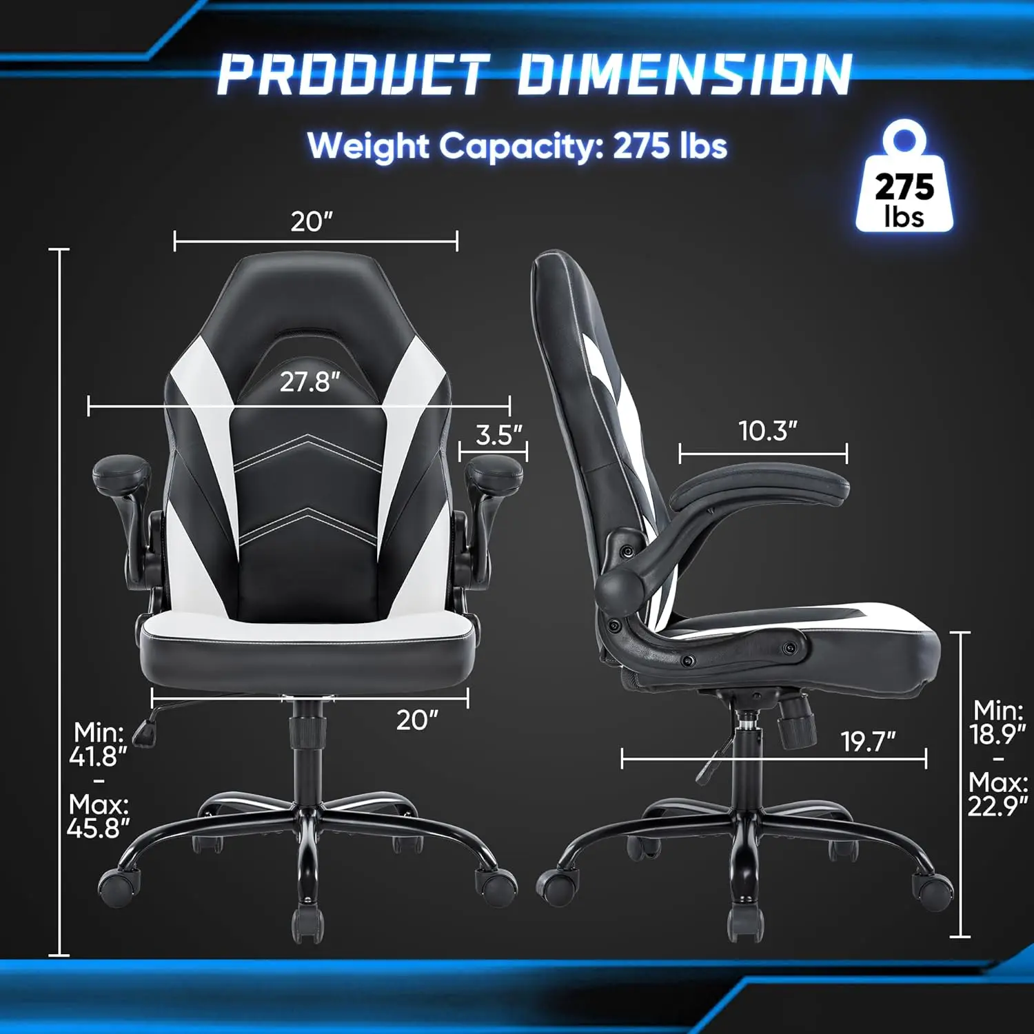 Office Ergonomic Computer Gaming Desk Racing Chair for Adults, Flip-up Arms Adjustable Height PU Leather Swivel with Wheel