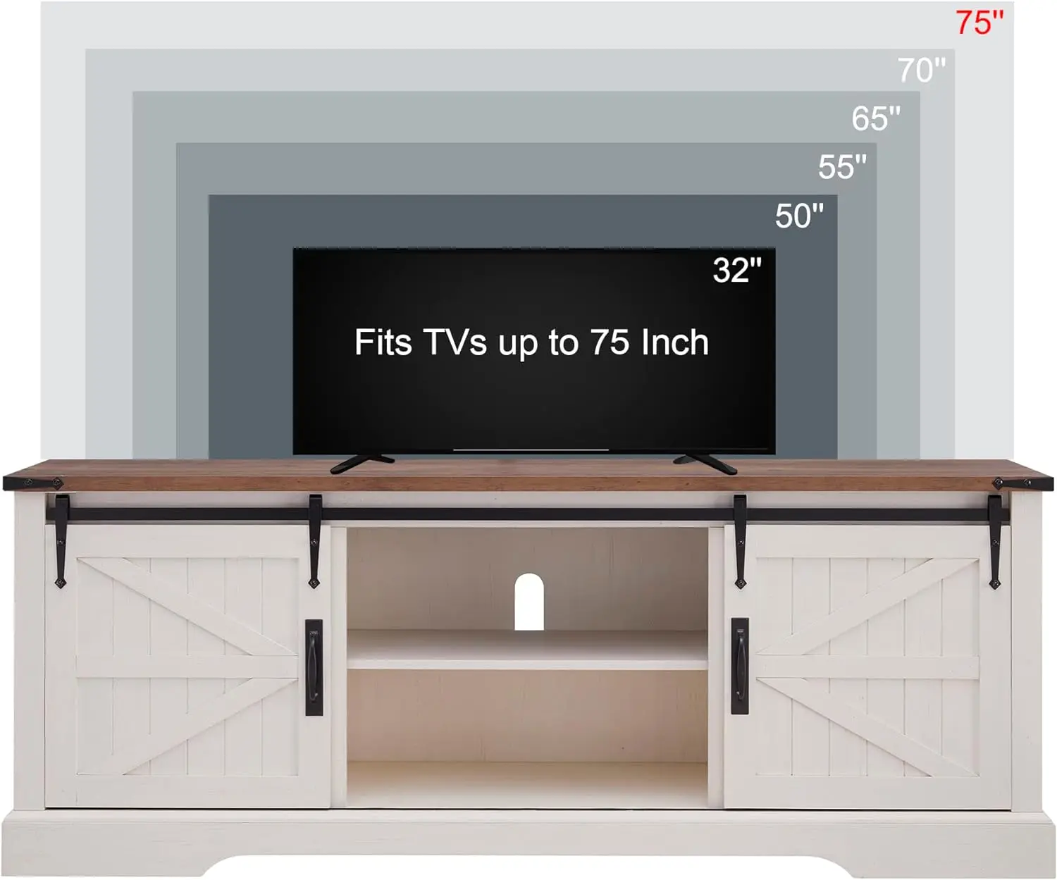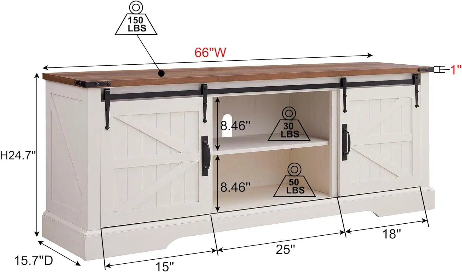 - DIMENSION: 66" W x 16"D x 25" H. Fits TVs up to 75 inches (farmhouse tv stand for 75 70 65 55 inch TVs etc.)