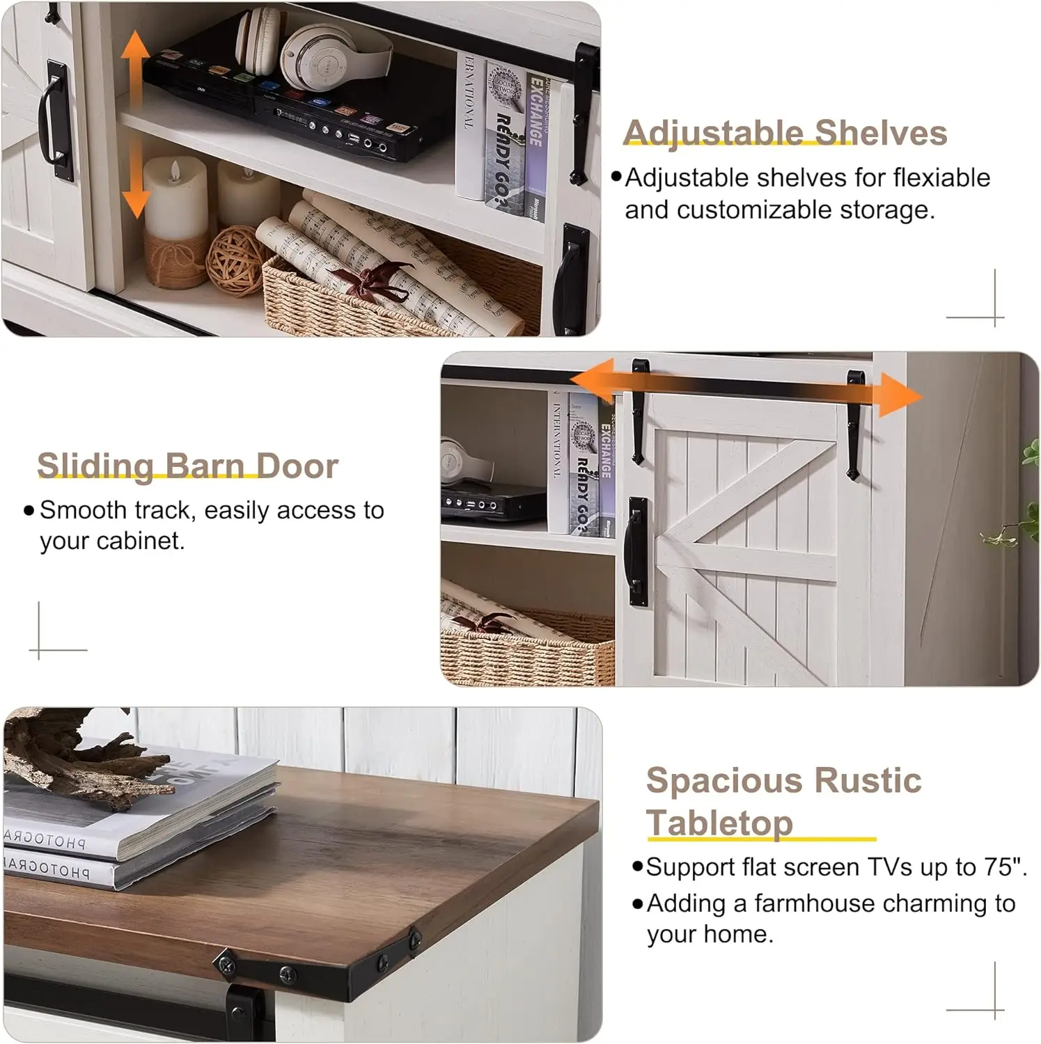 - MODERN FARMHOUSE or RUSTIC CLASSIC AESTHETIC: This TV entertainment stand perfectly combines modern, and rustic farmhouse style, a great way to add personality and charm to your living room. The interior adjustable shelves and 2 cable management holes behind the door help the easy organization and hiding wires.