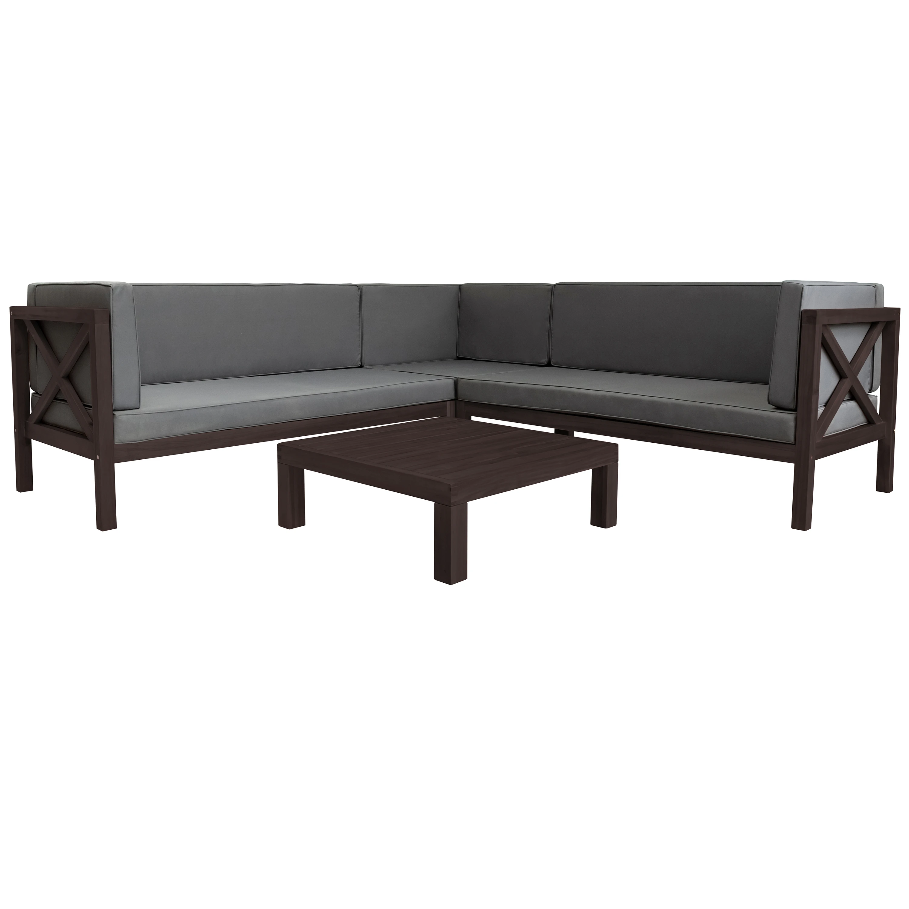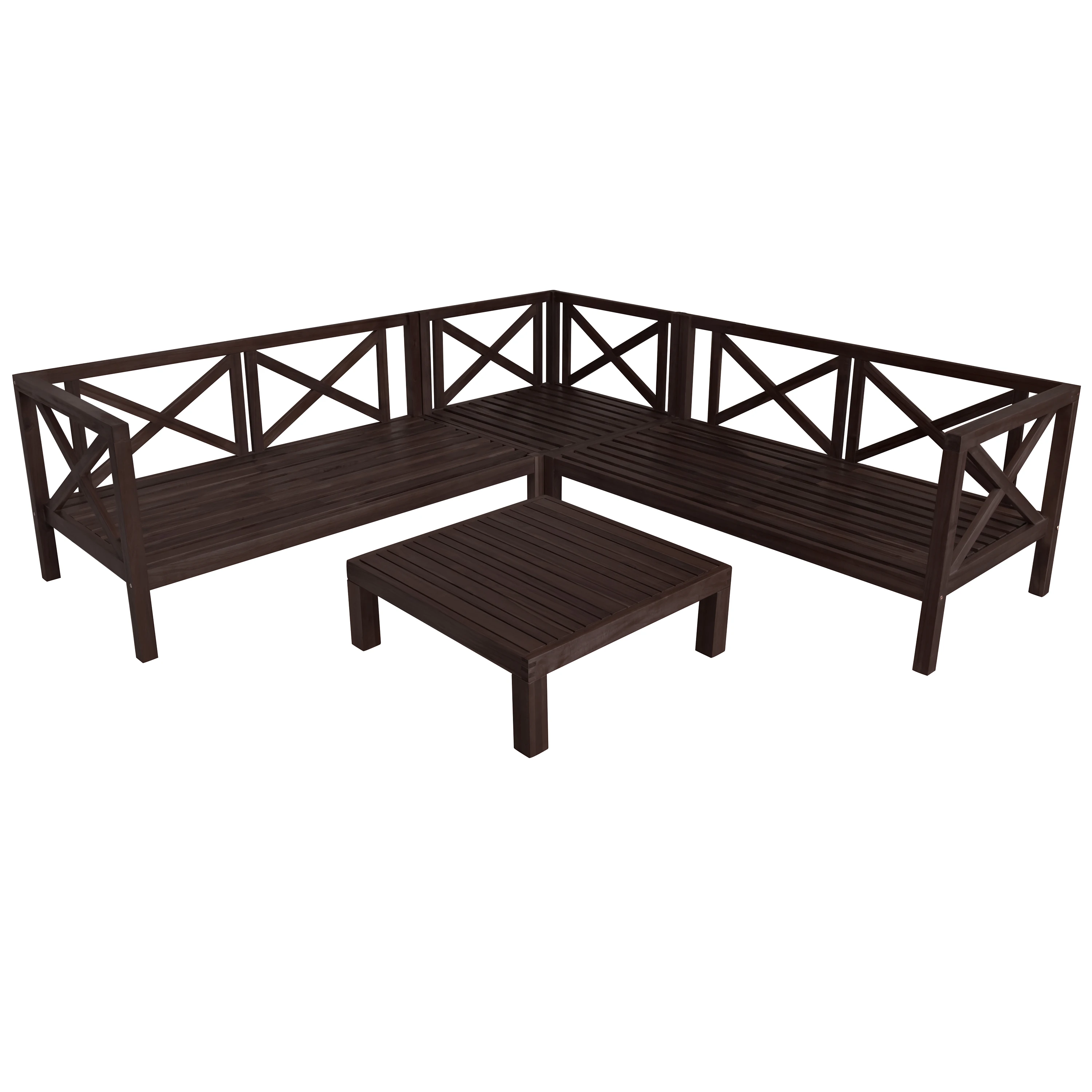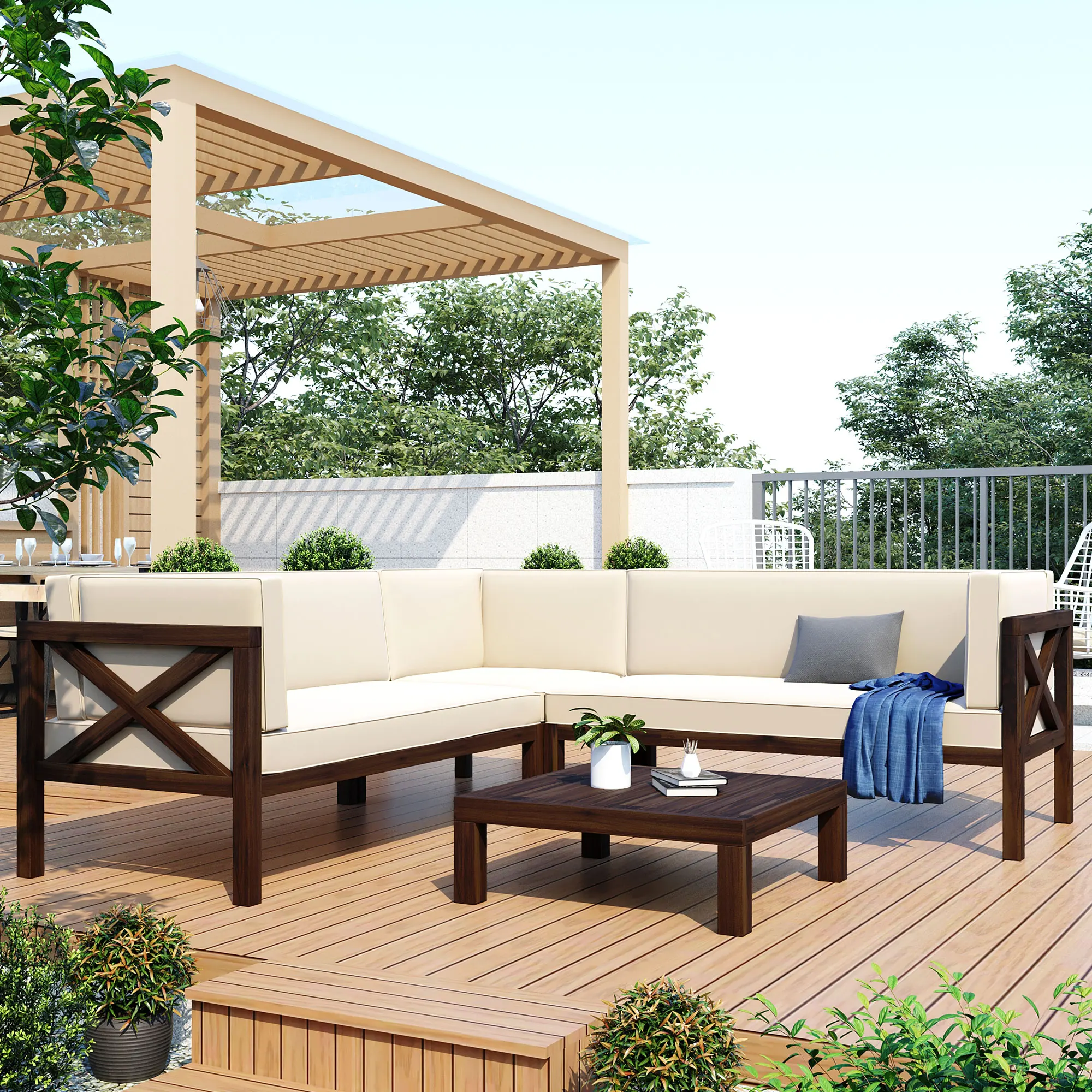 Outdoor furniture Set Wood Patio Backyard 4-Pc Sectional Seating Group with Cushions and Table X-Back Sofa Set for Small Places