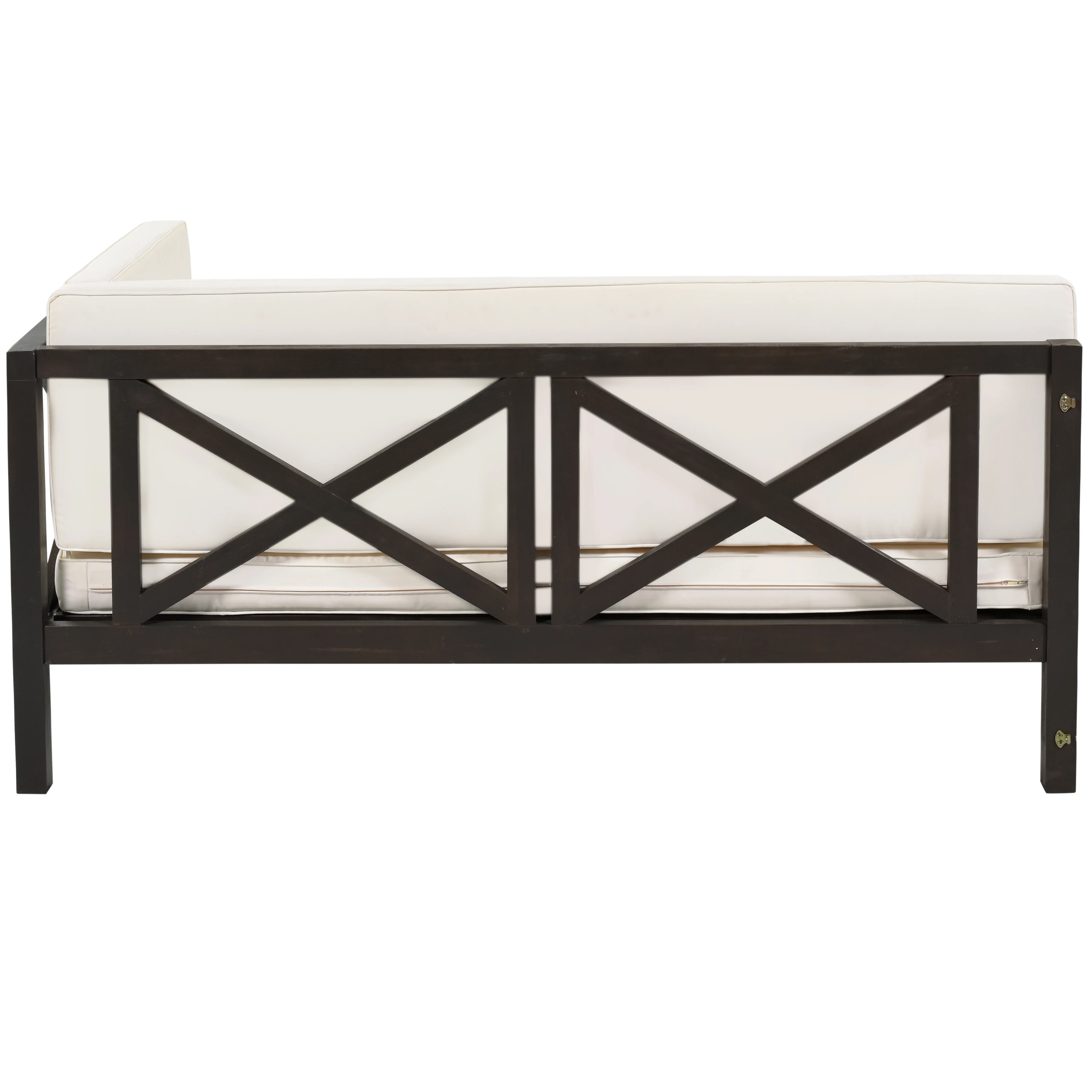 Sectional X-back charming design makes the sofa set harmoniously decoration not only in patios, but in decks, poolsides or balconies or wherever you want to put even in small places. Due to hardwood material, the product is easily maintenance with small brush or vacuum when dusting. Recommend to protect it with a tarp or other covering during extended periods of inclement weather for longevity.