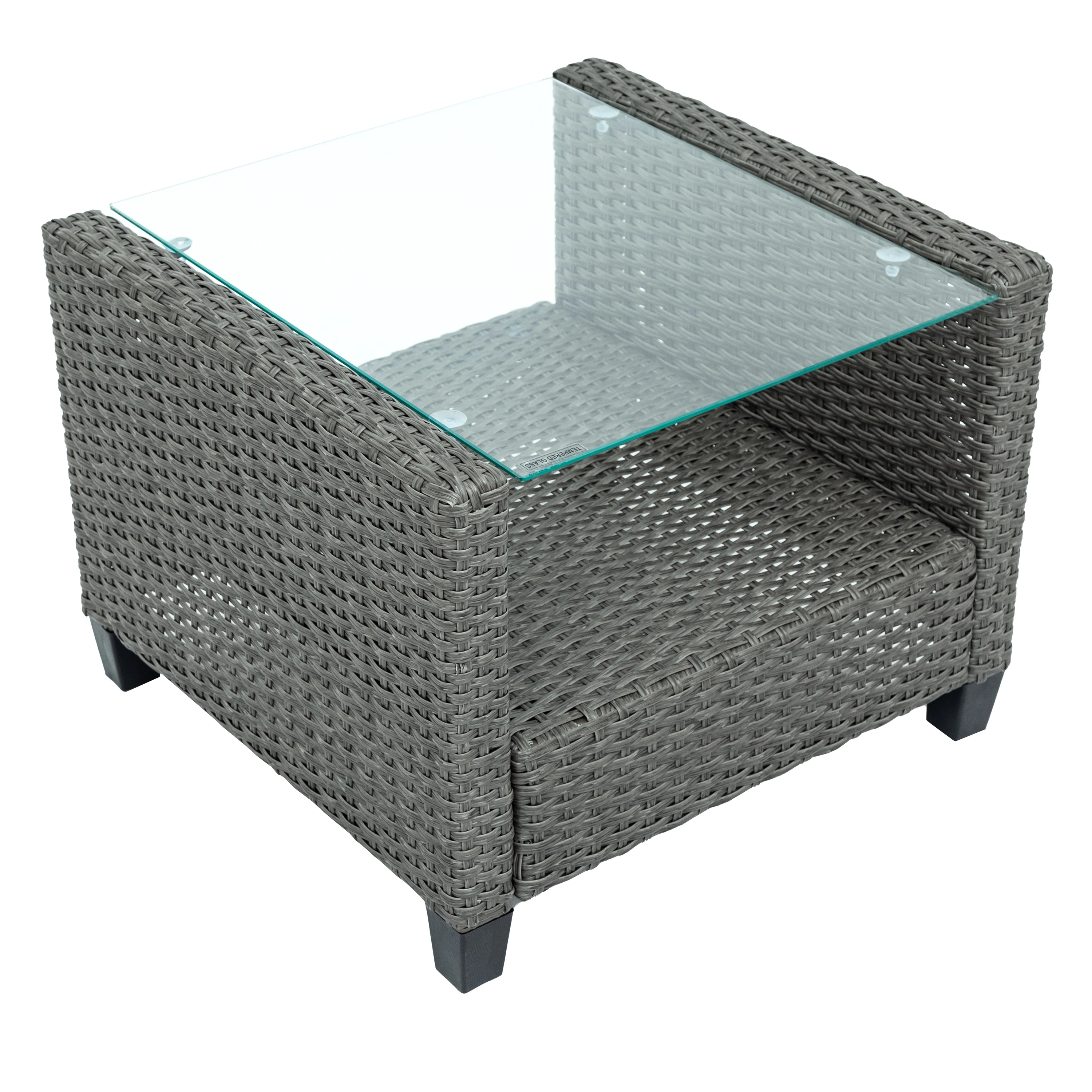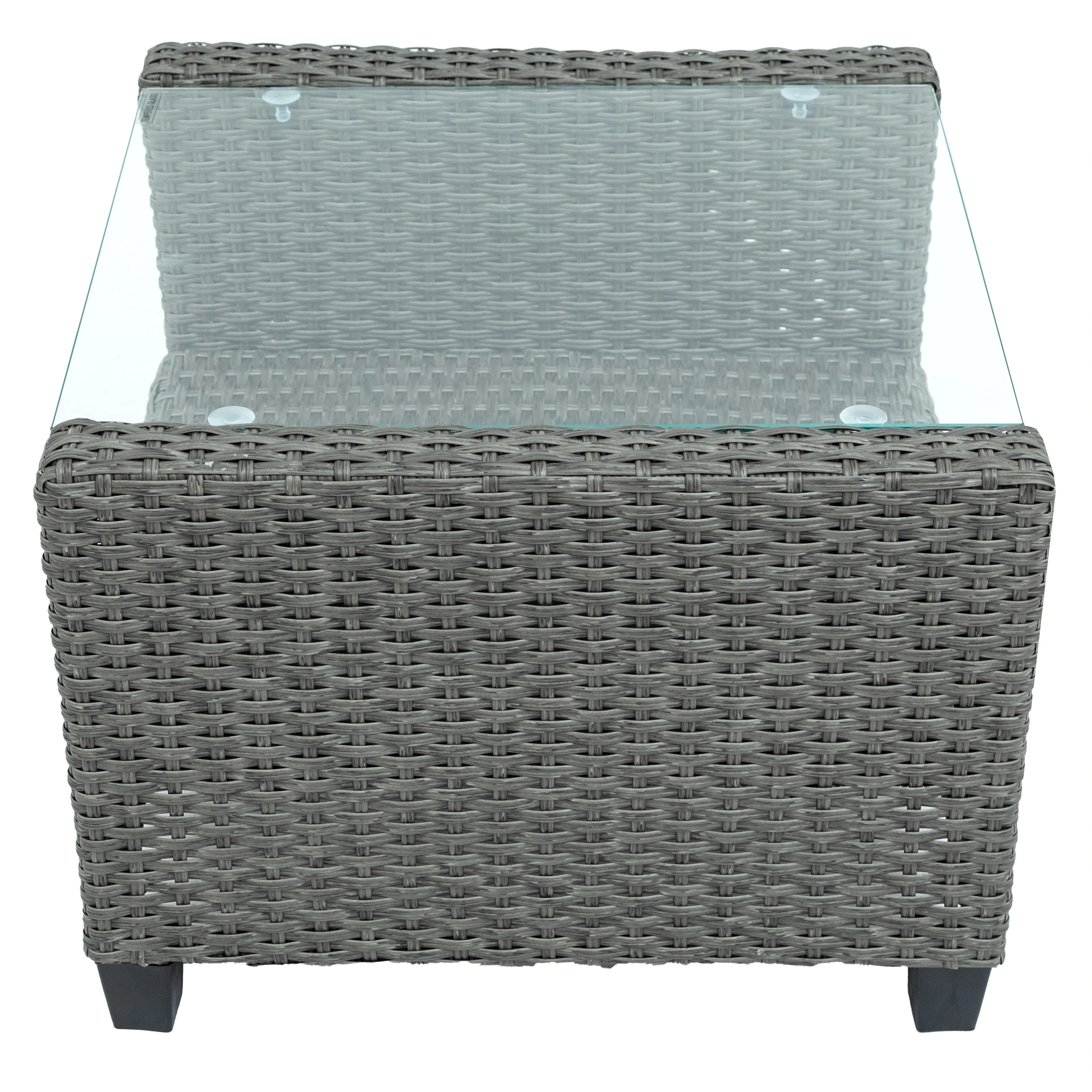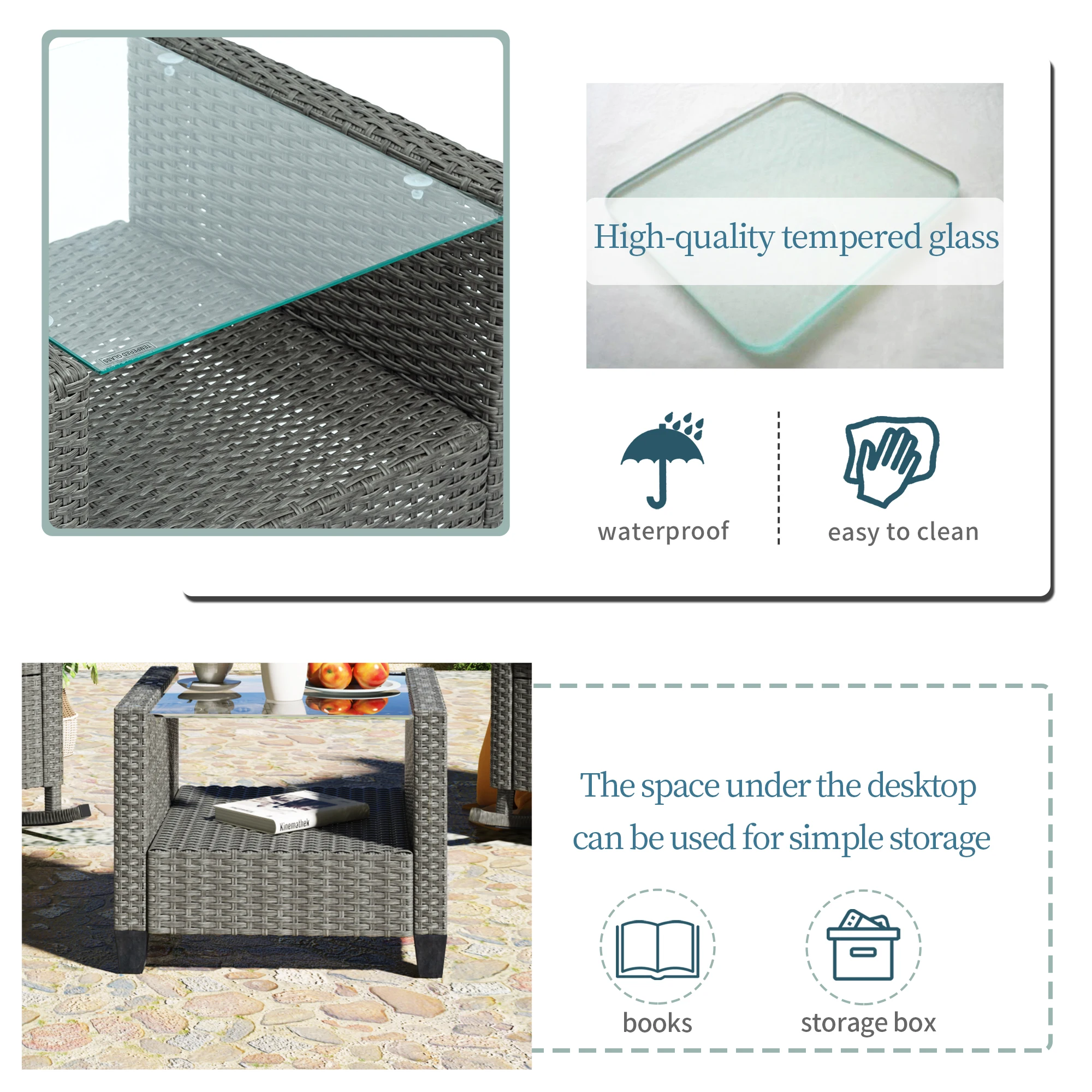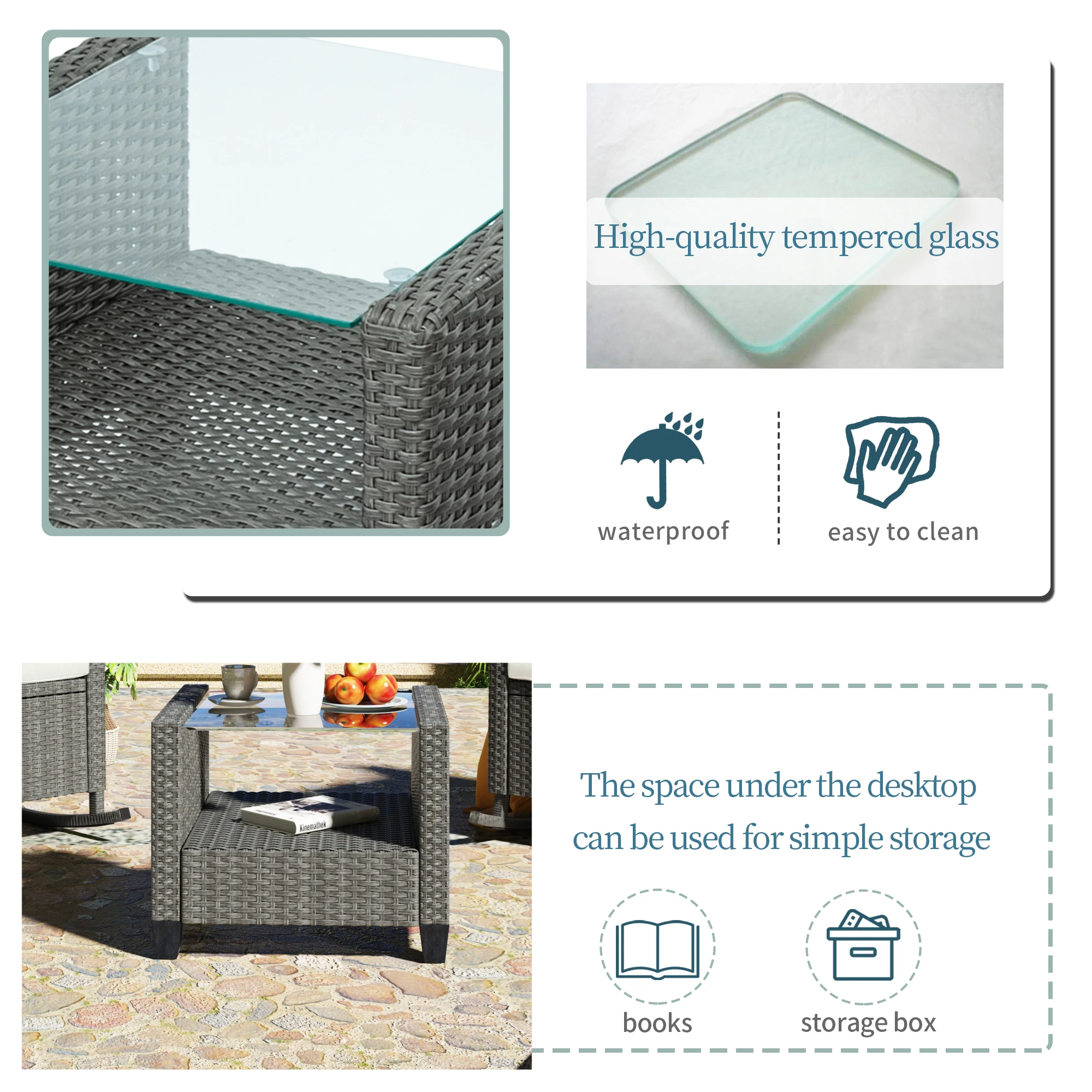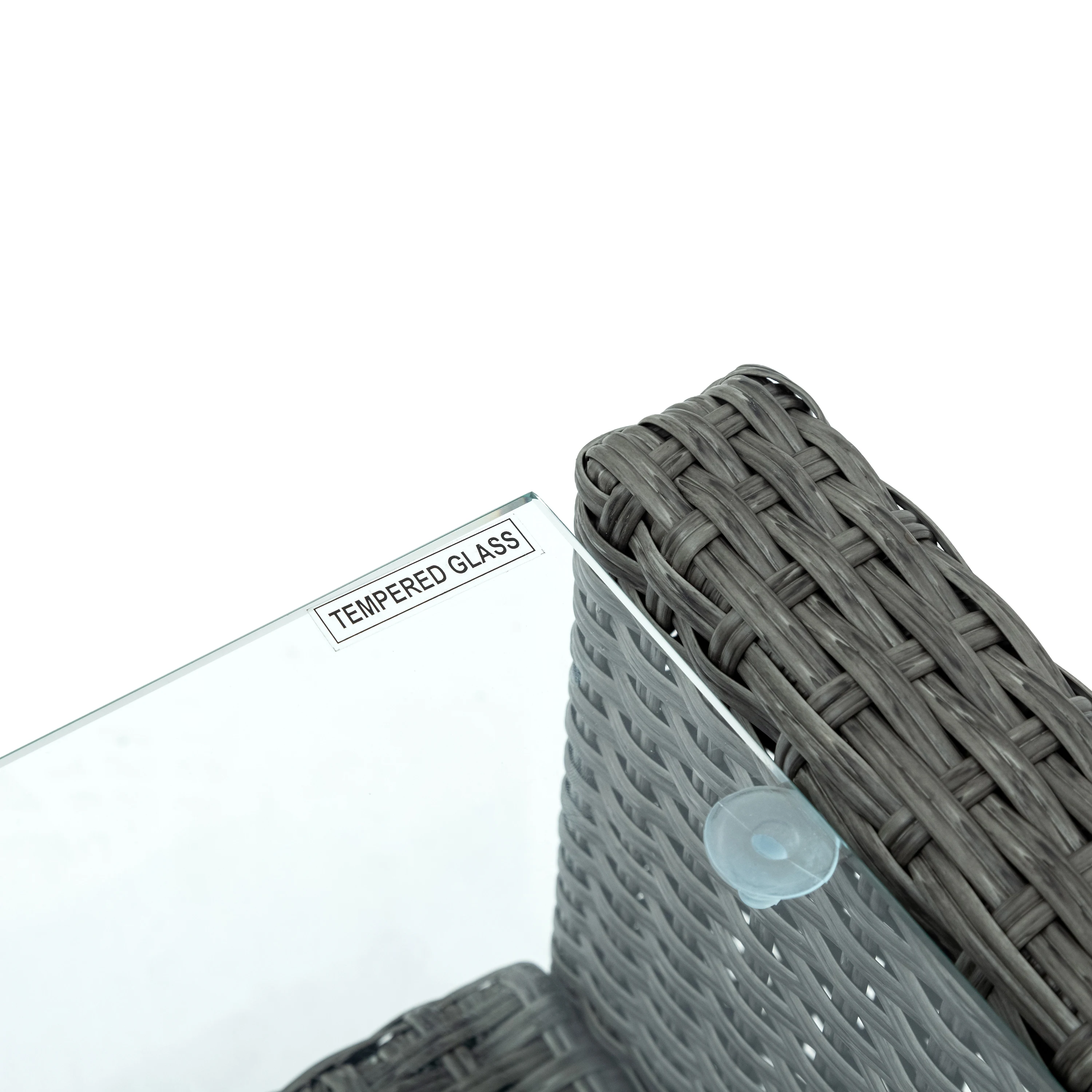 Featuring an elegant glass top coffee table, this rocking patio furniture set is perfect for a enjoying food and wines or the morning coffee. High-quality tempered glass table is easy-clean without worrying about spills, and the space under the tabletop can be used for simple storage.