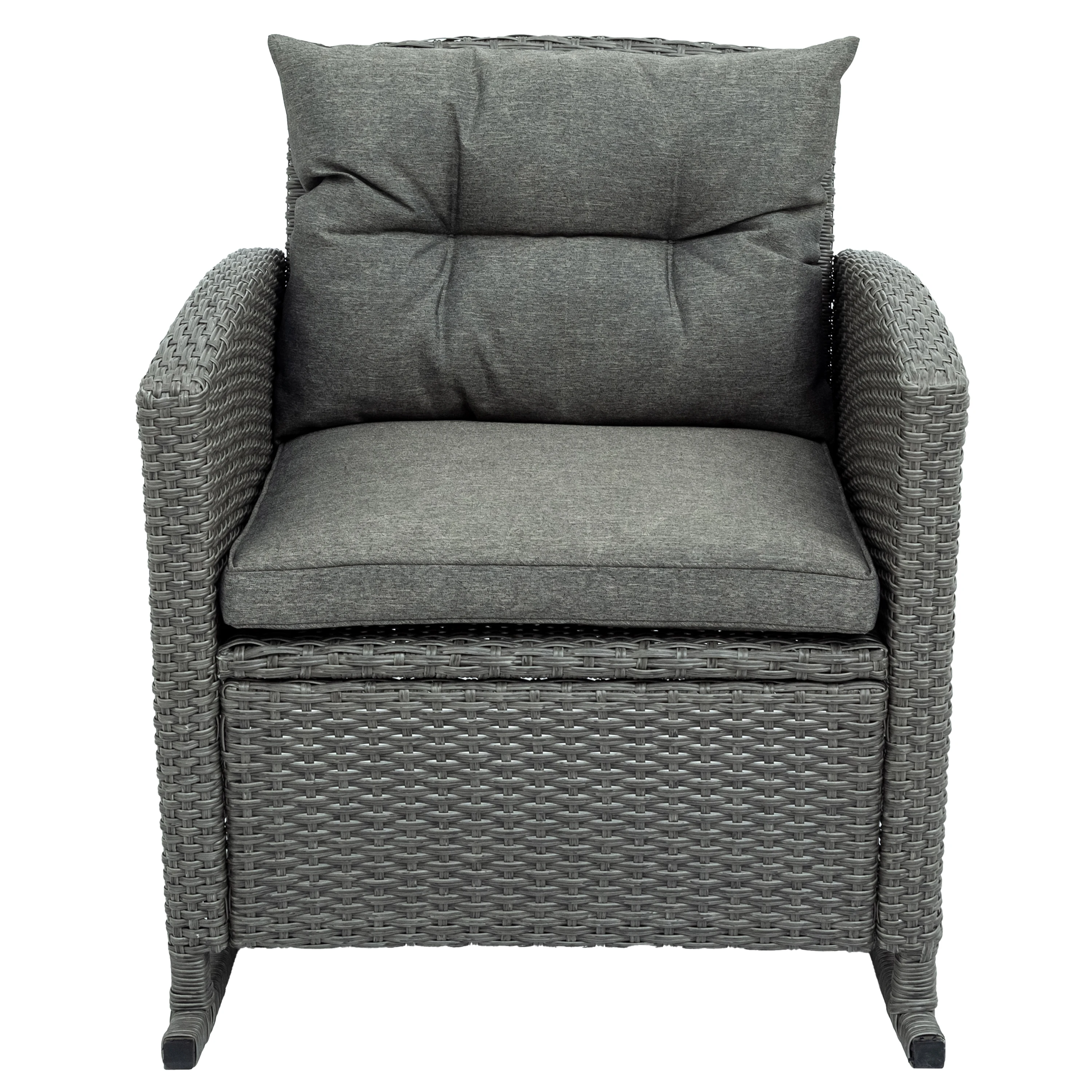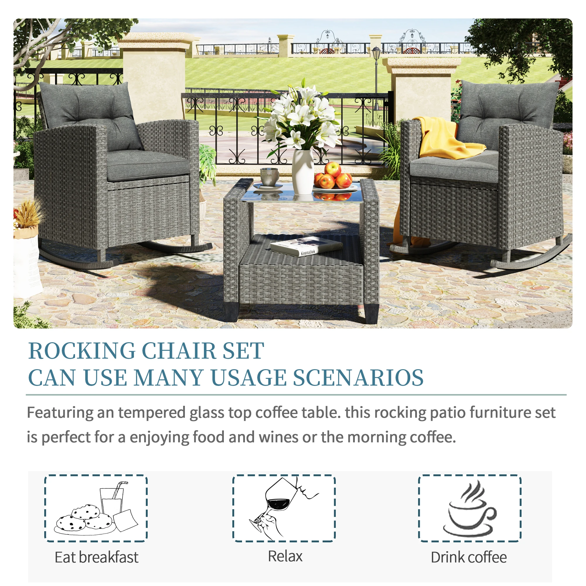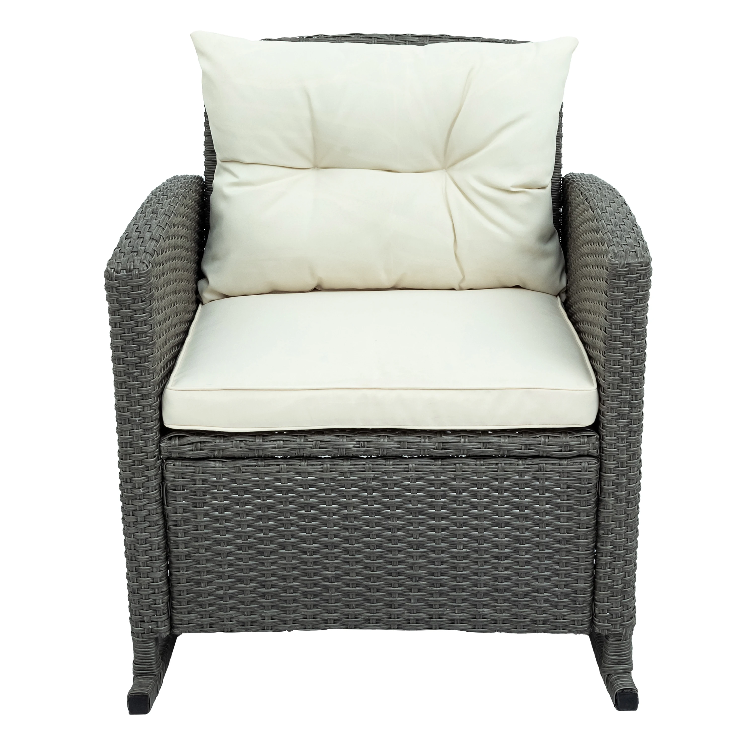 Outdoor Patio Rattan Wicker Rocking Furniture 3Pcs Set w/ Cushion 2 Rocking Chair Sofa+1 Tea Table for Garden Backyard[US-W]