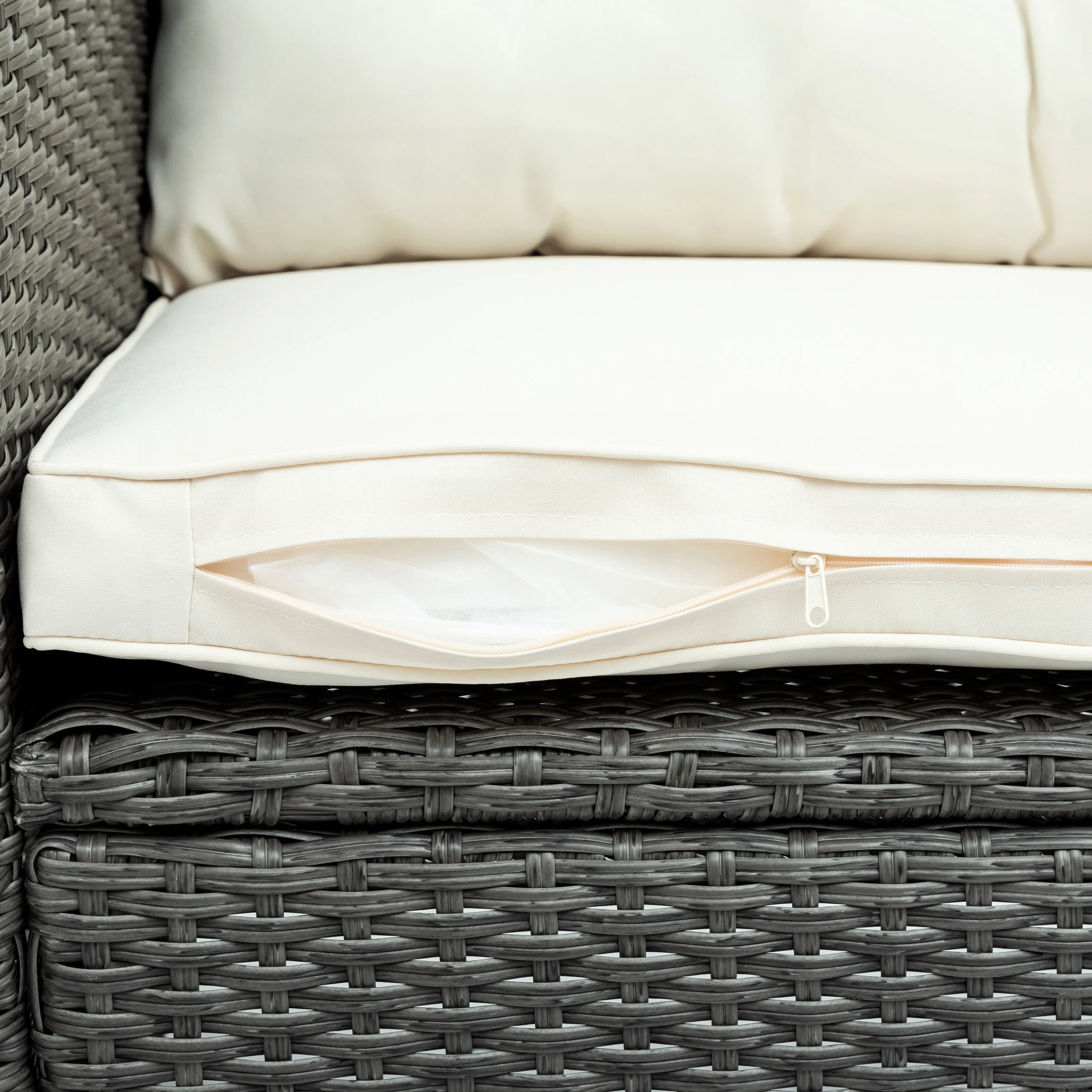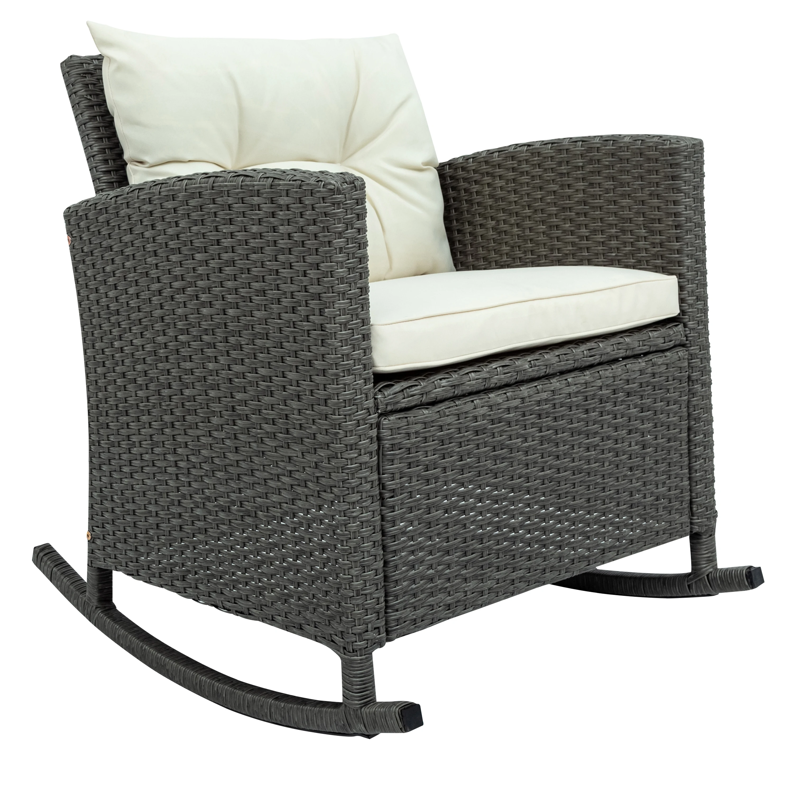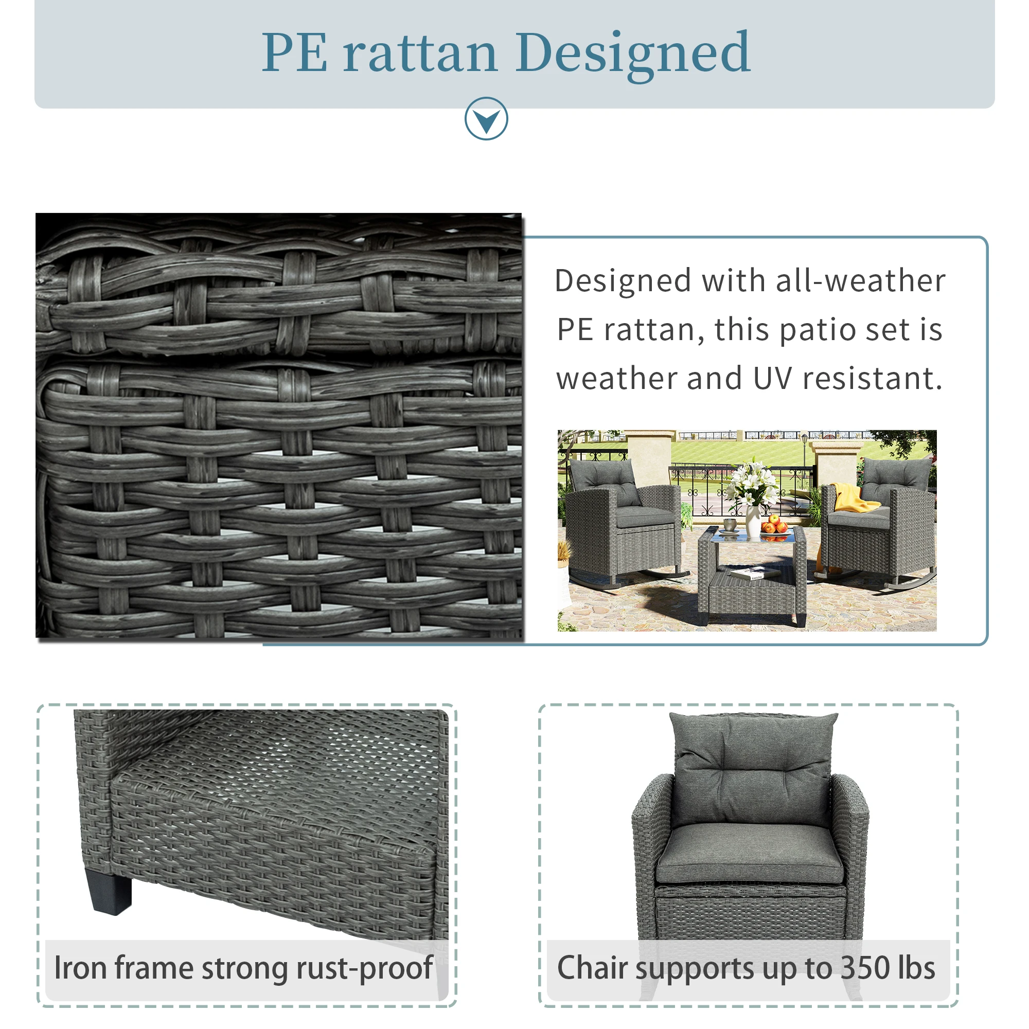 Outdoor Patio Rattan Wicker Rocking Furniture 3Pcs Set w/ Cushion 2 Rocking Chair Sofa+1 Tea Table for Garden Backyard[US-W]