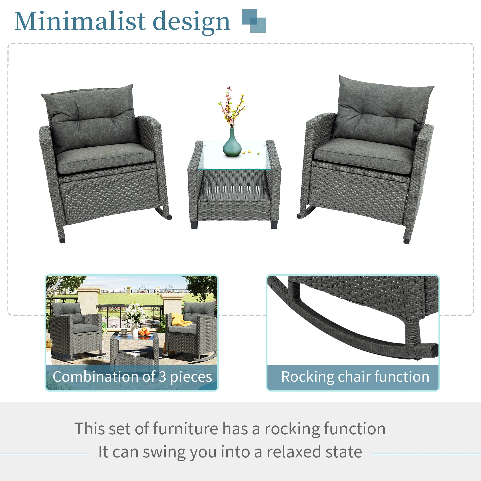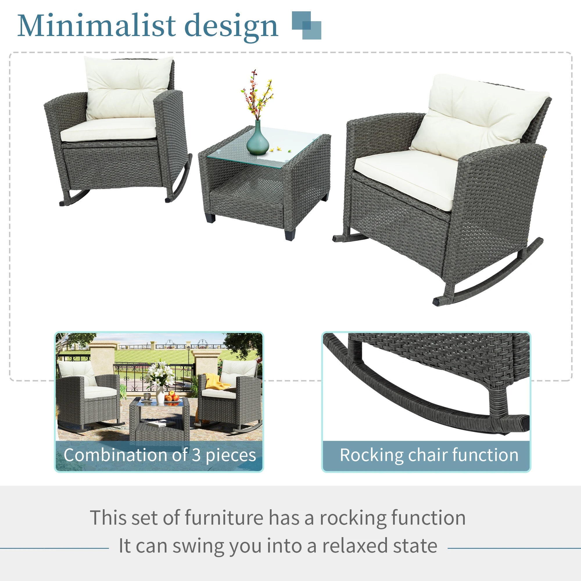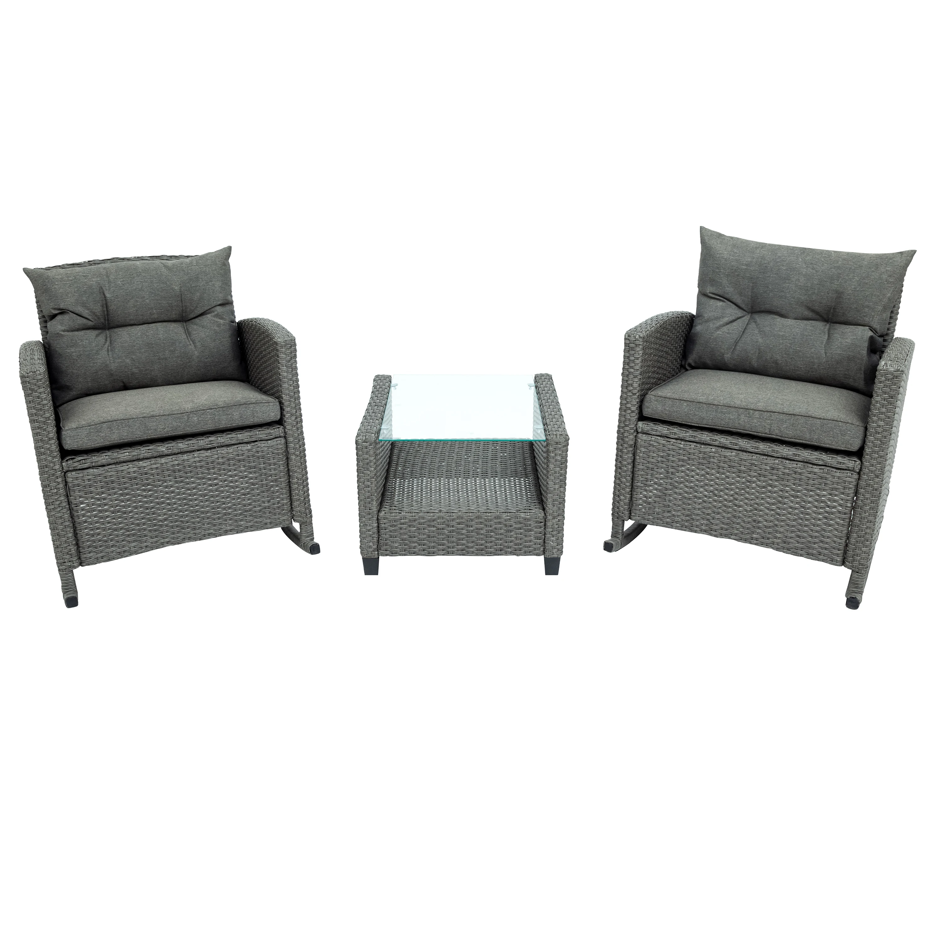 Minimalist design with a modern style. The 3-piece rocking patio furniture set features a rocking function to rock yourself into a relaxed state. With high-density foam padded, the seat and back cushions are soft and comfortable for an enjoyable experience.