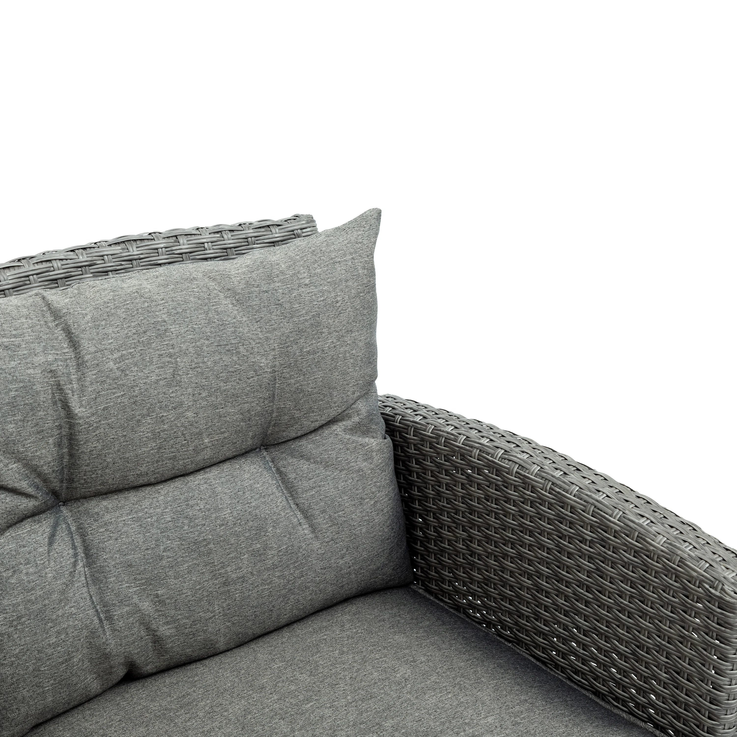 Designed with all-weather PE rattan, this patio set is weather and UV resistant. The powder coated steel frame is solid and rust-proof to provide extra support and balance for chairs, fit for people of any figure. Each chair supports up to 350 lbs.
