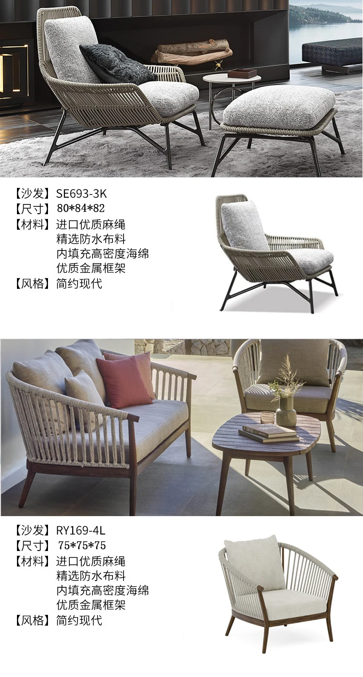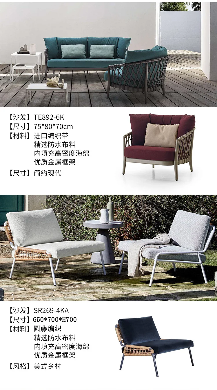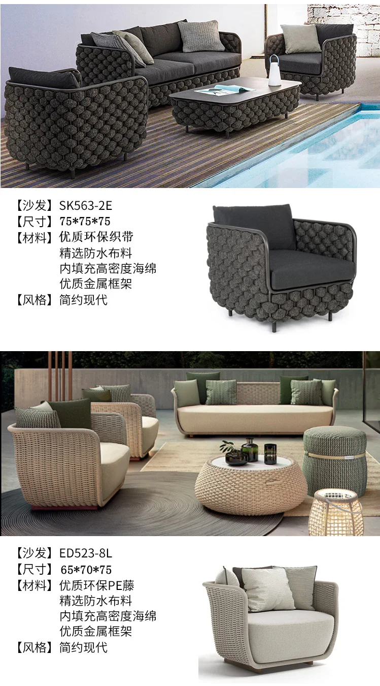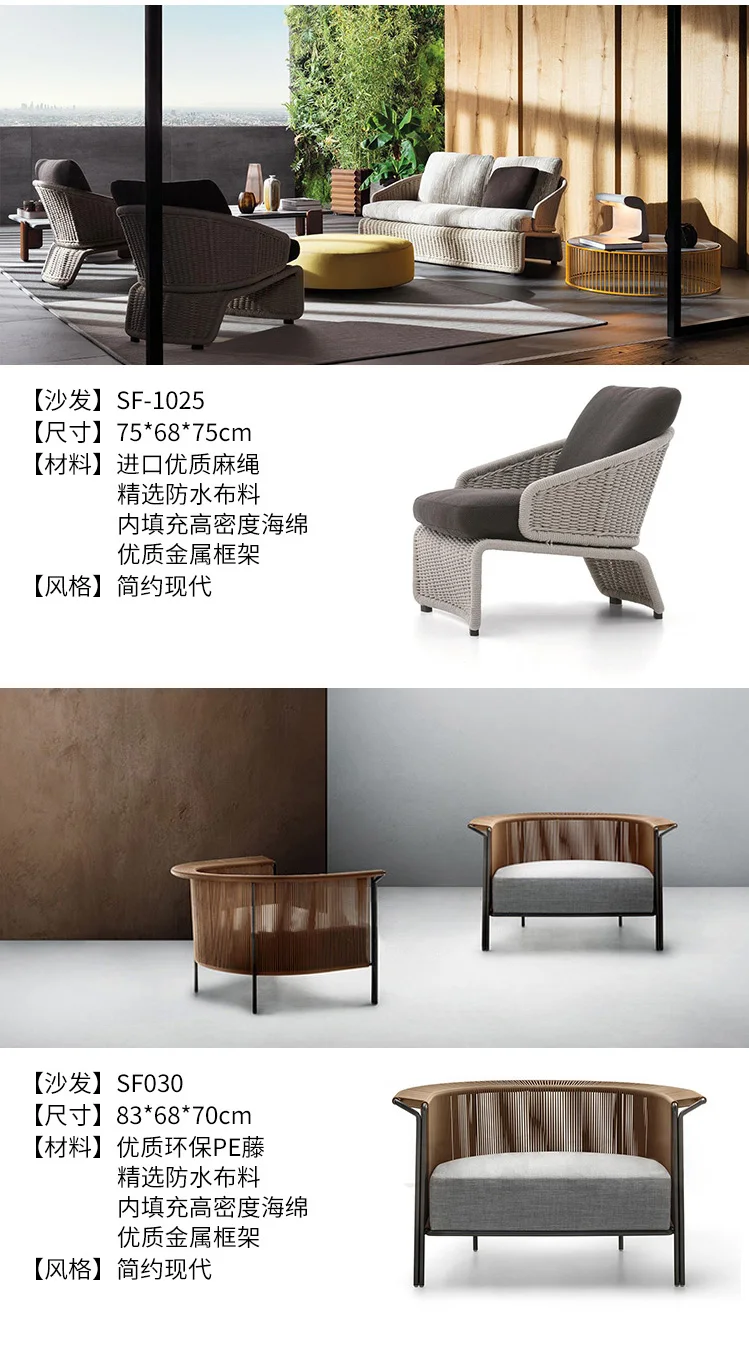Outdoor rattan sofa courtyard waterproof residential balcony leisure single rattan chair sofa rattan sofa