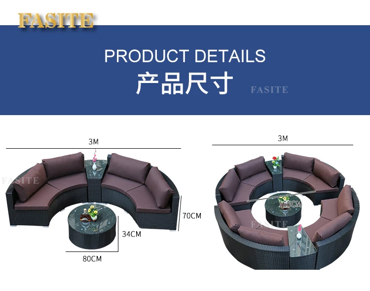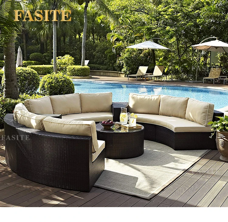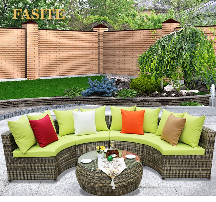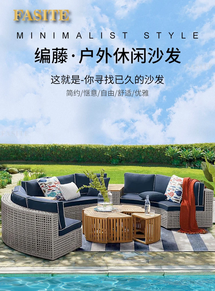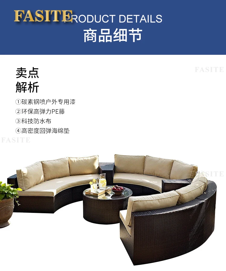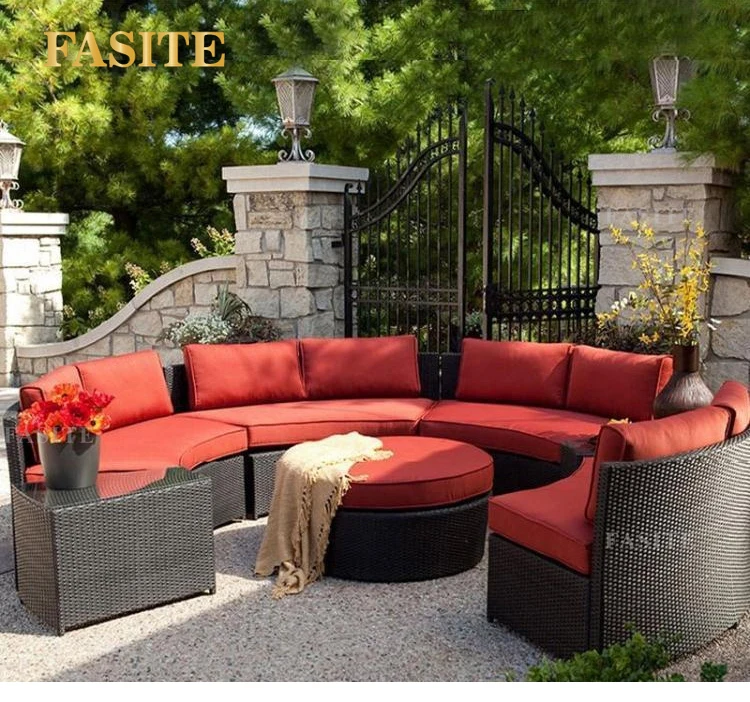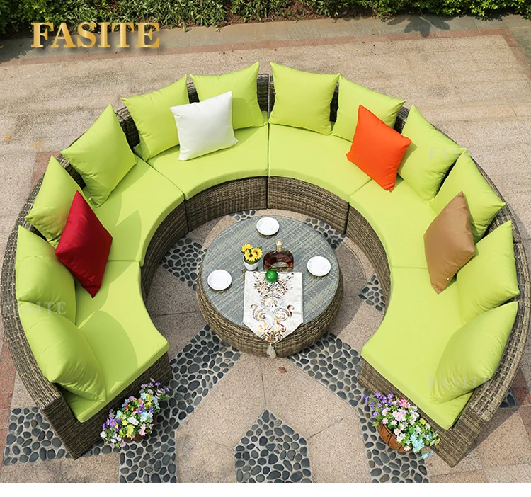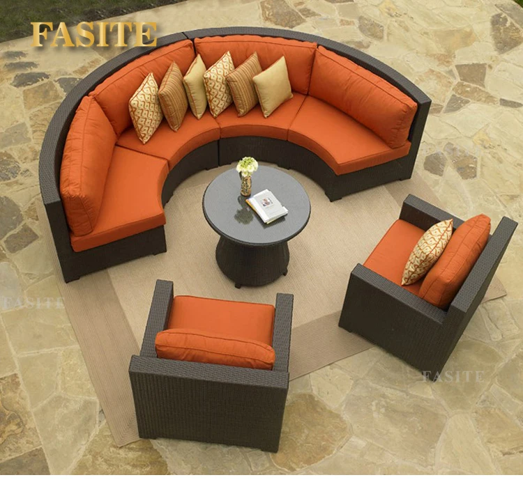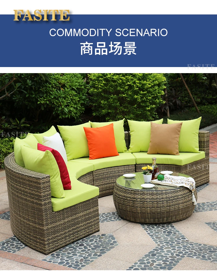 Outdoor rattan woven sofa outdoor waterproof sunscreen circular arc semi-circular woven combination yard furniture