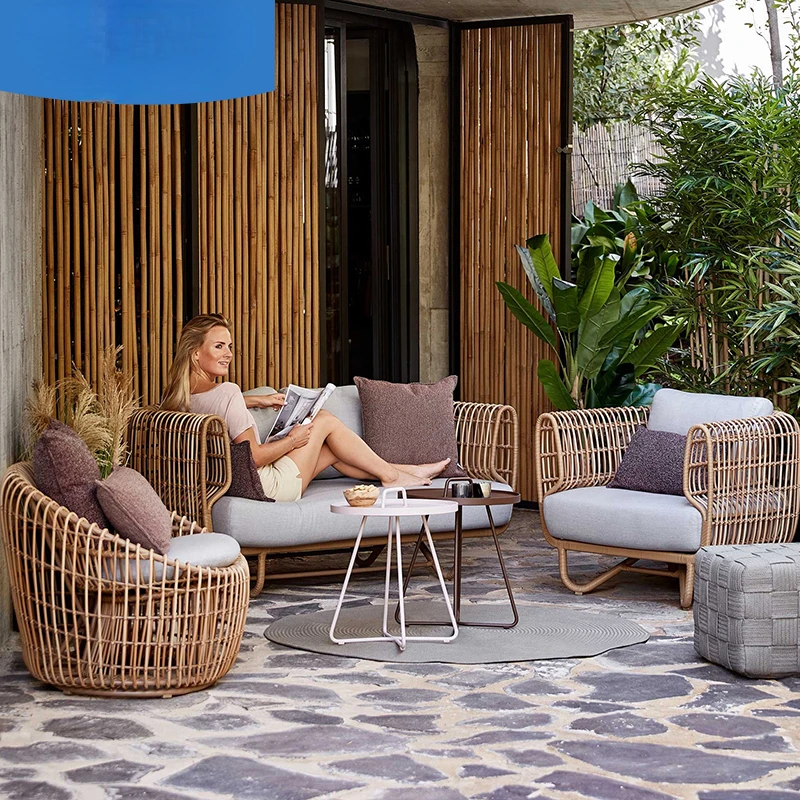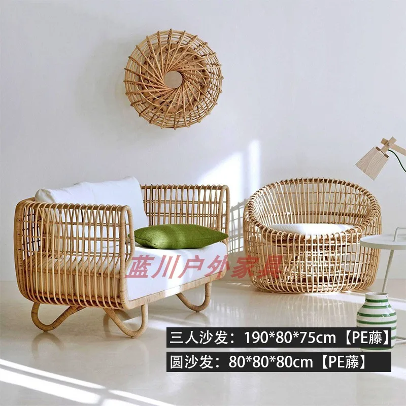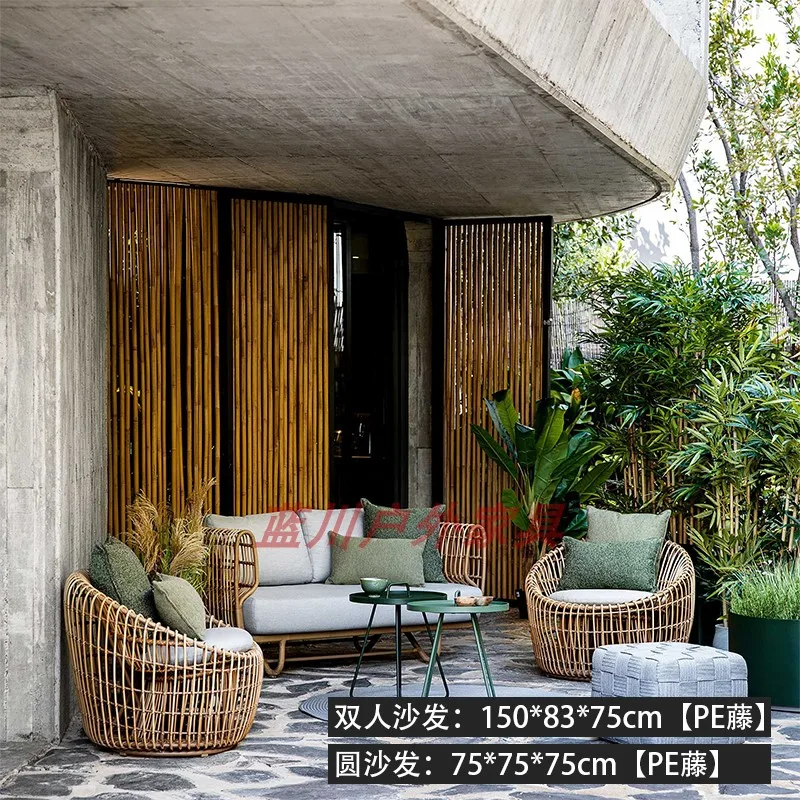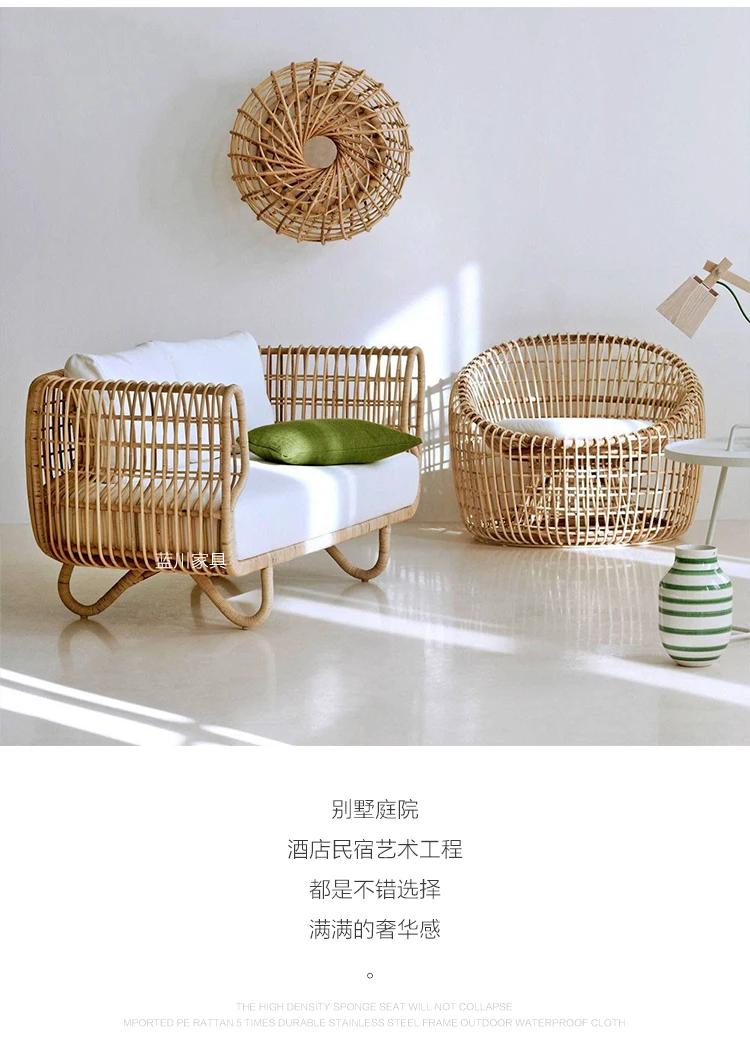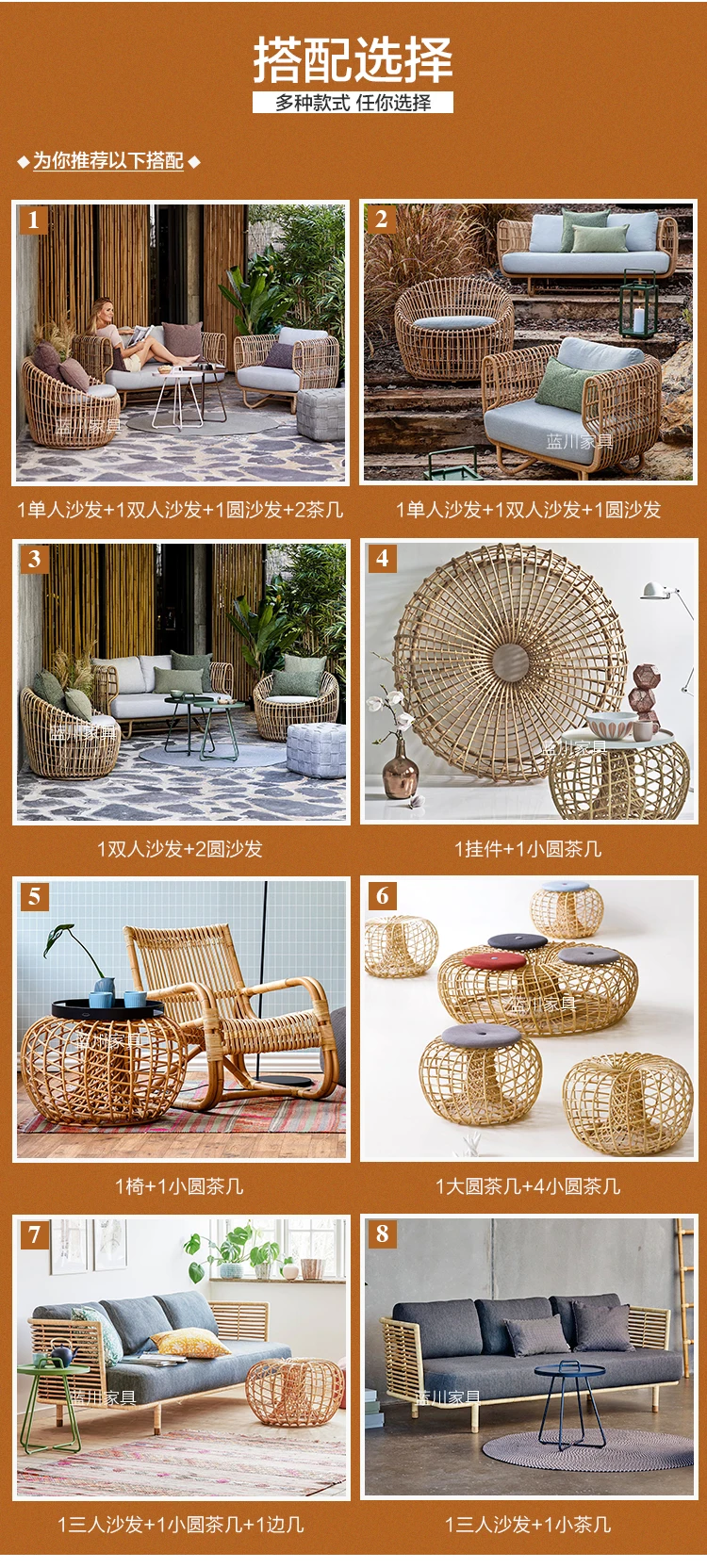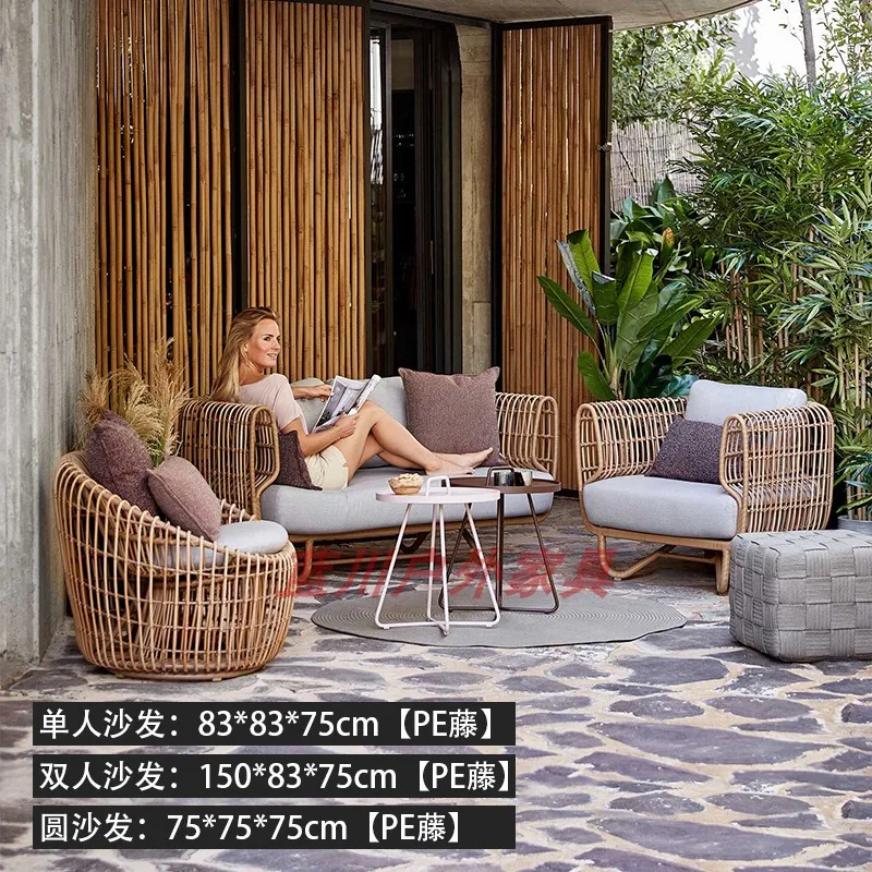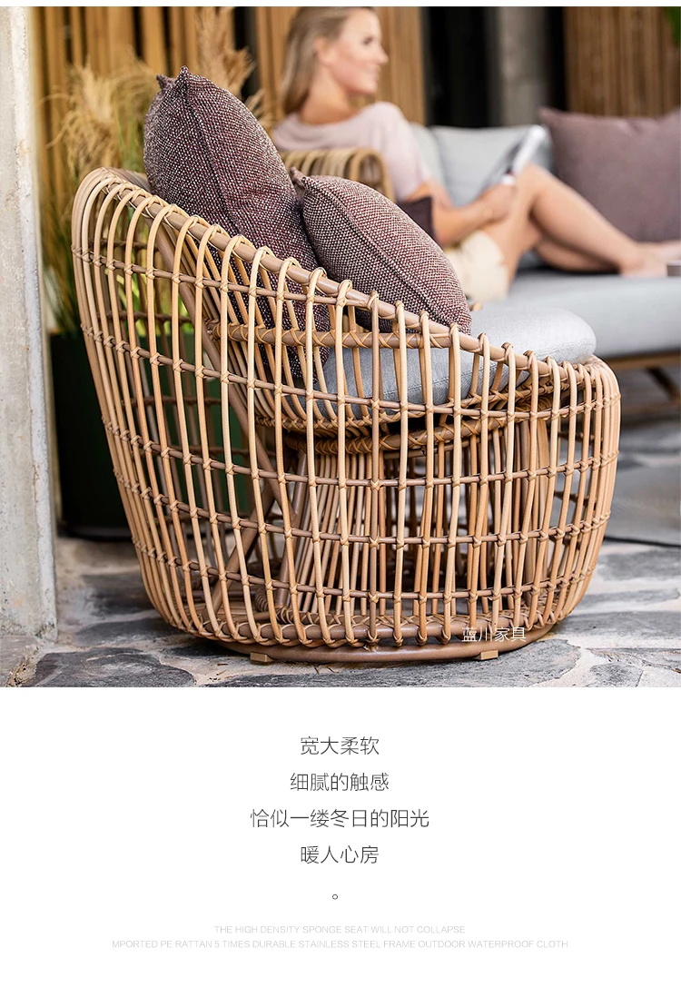 Outdoor sofa sofa bird's nest true rattan balcony furniture villa natural rattan woven leisure single courtyard