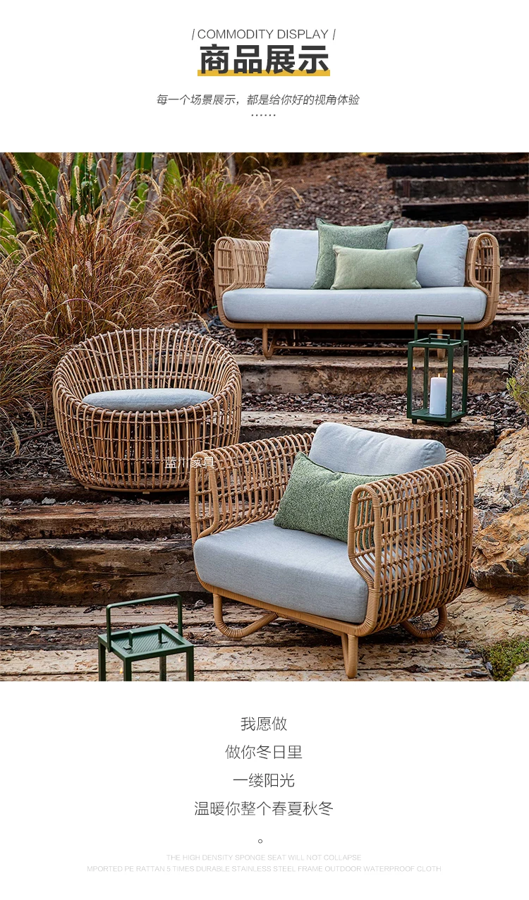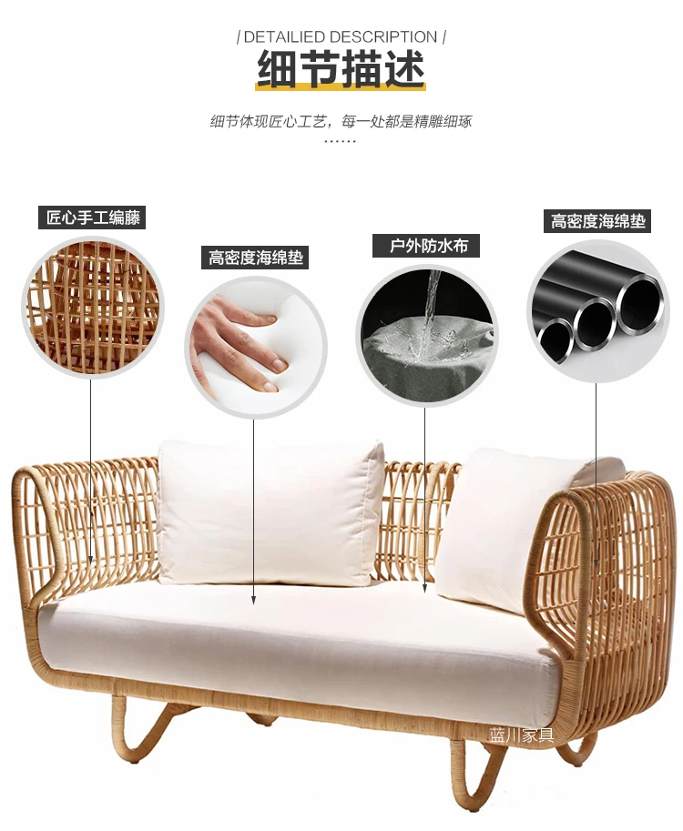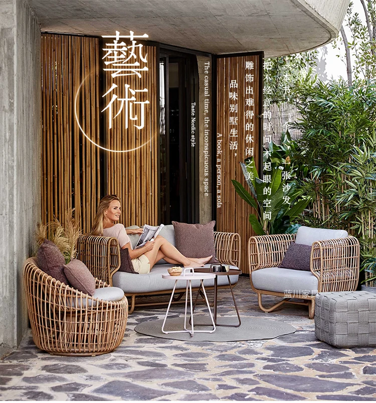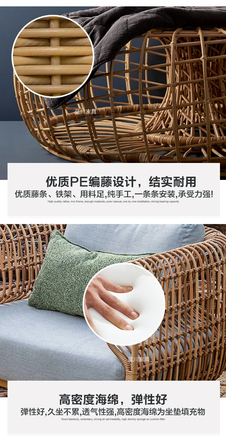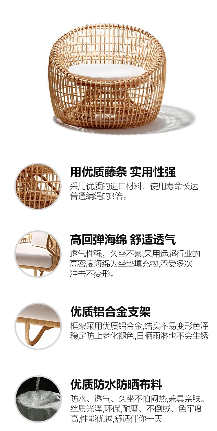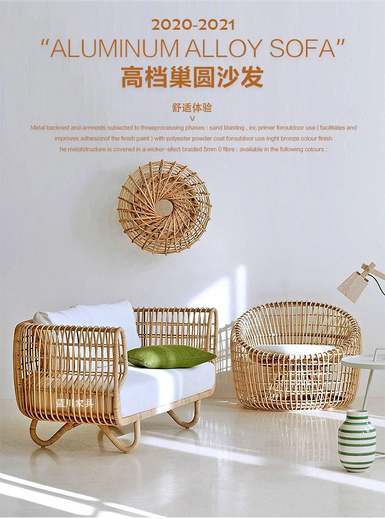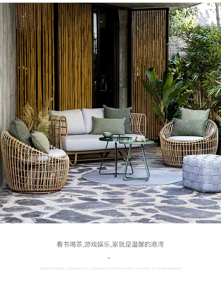 Outdoor sofa sofa bird's nest true rattan balcony furniture villa natural rattan woven leisure single courtyard