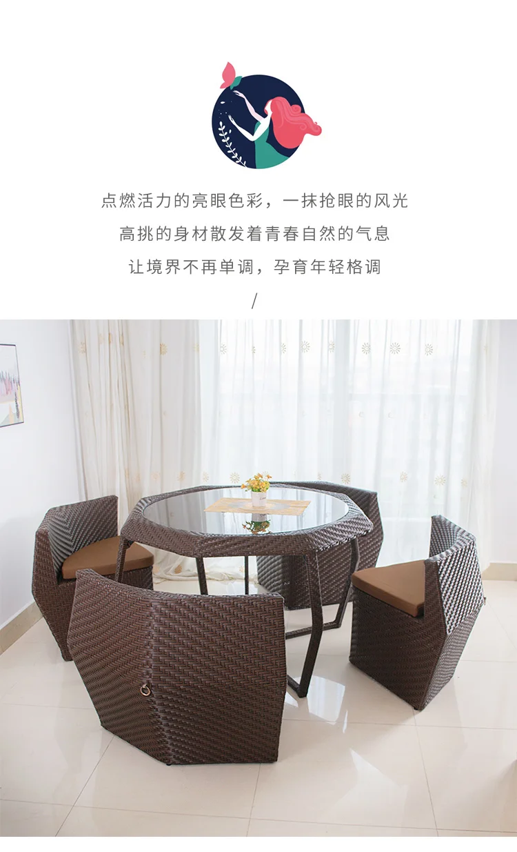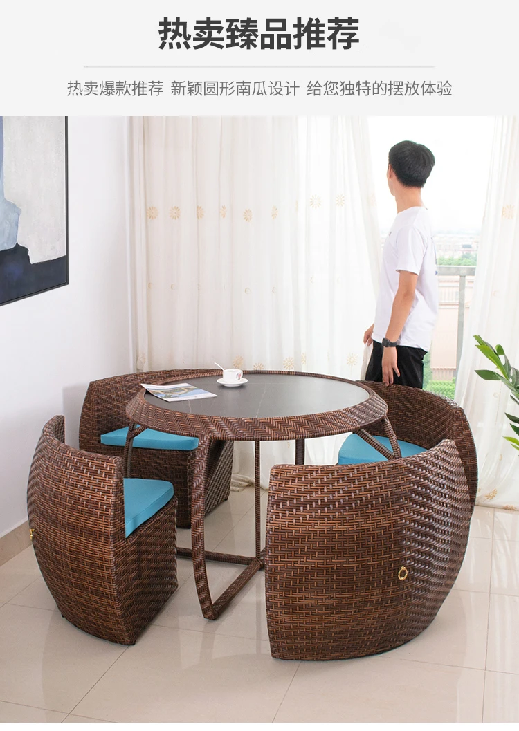 Outdoor Table and Chair Leisure PE Rattan Combination Villa Courtyard Garden Guest House Creative Garden Furniture Sets WKGF