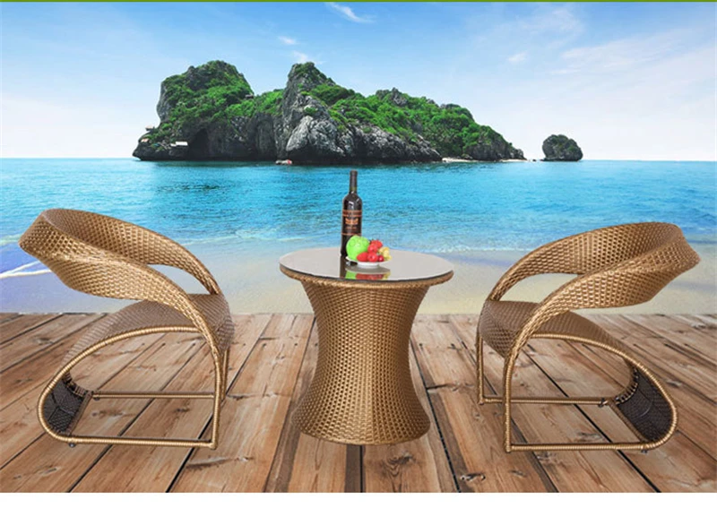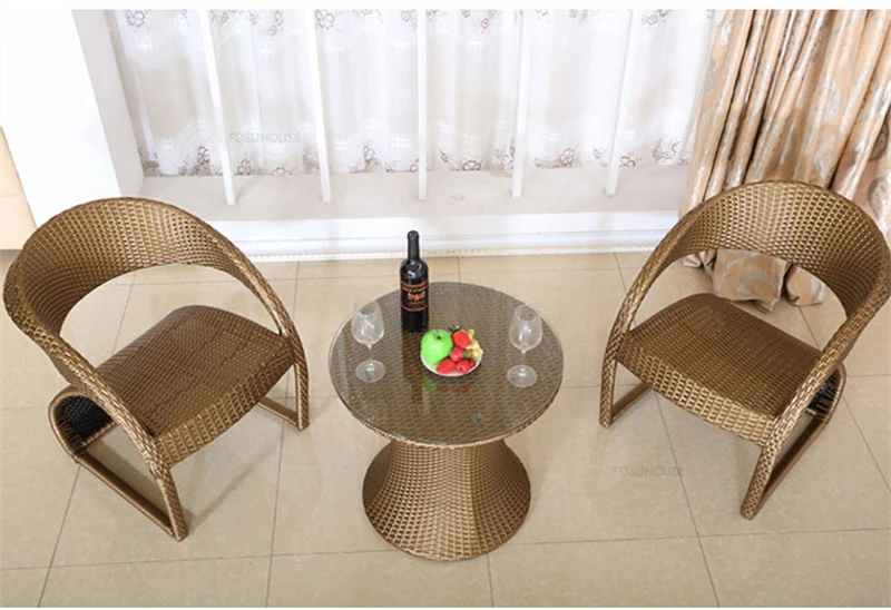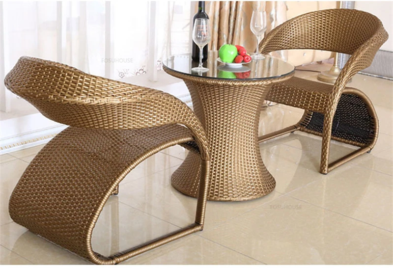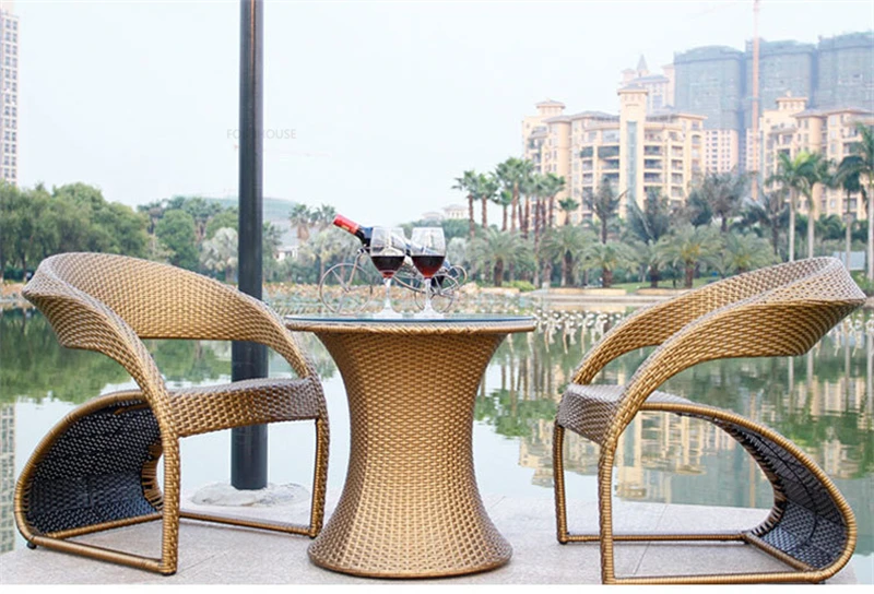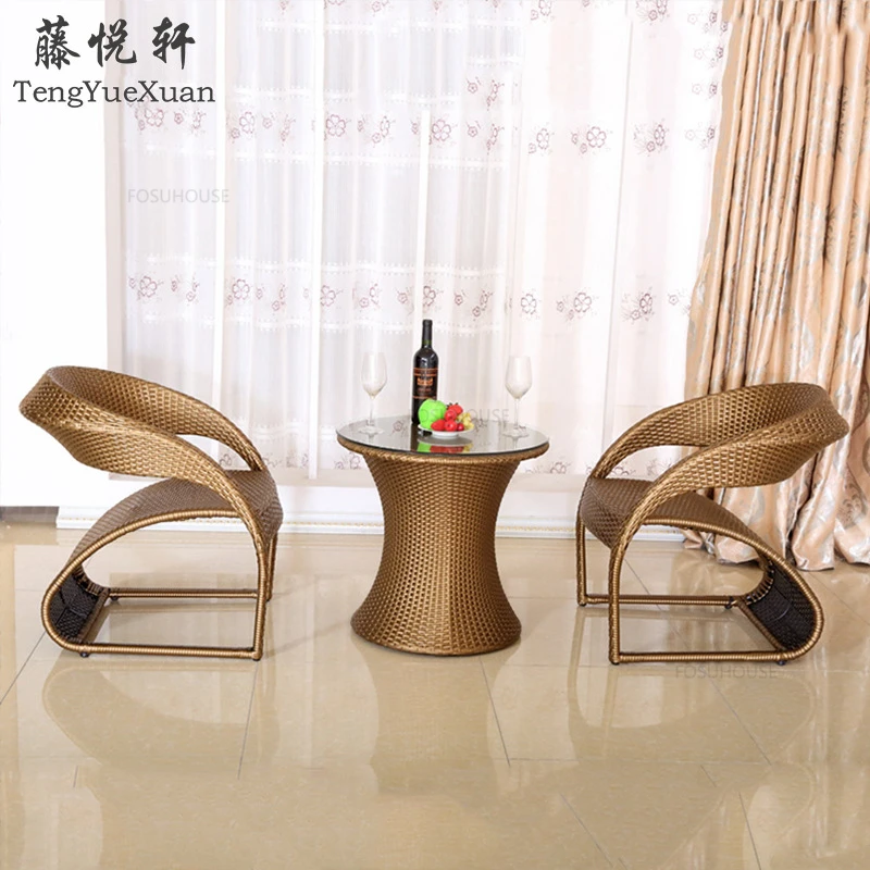 Outdoor Tables and Chairs Patio Garden Furniture Set Household Rattan Chair Three-Piece Leisure Outdoor Garden and Terrace Set