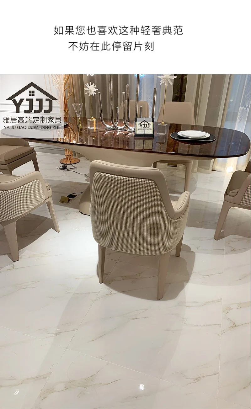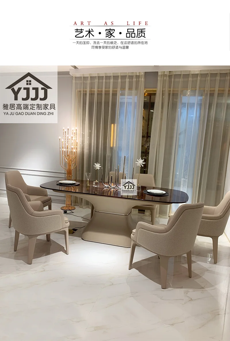Oval Dining Table Solid Wood Hong Kong-Style Light Luxurious and Simple High-End Furniture