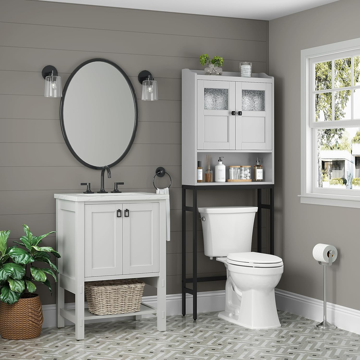Over The Toilet Storage Cabinet, Bathroom Organizer Over Toilet Storage, Double Doors Over The Toilet Storage Soft Hinges Above