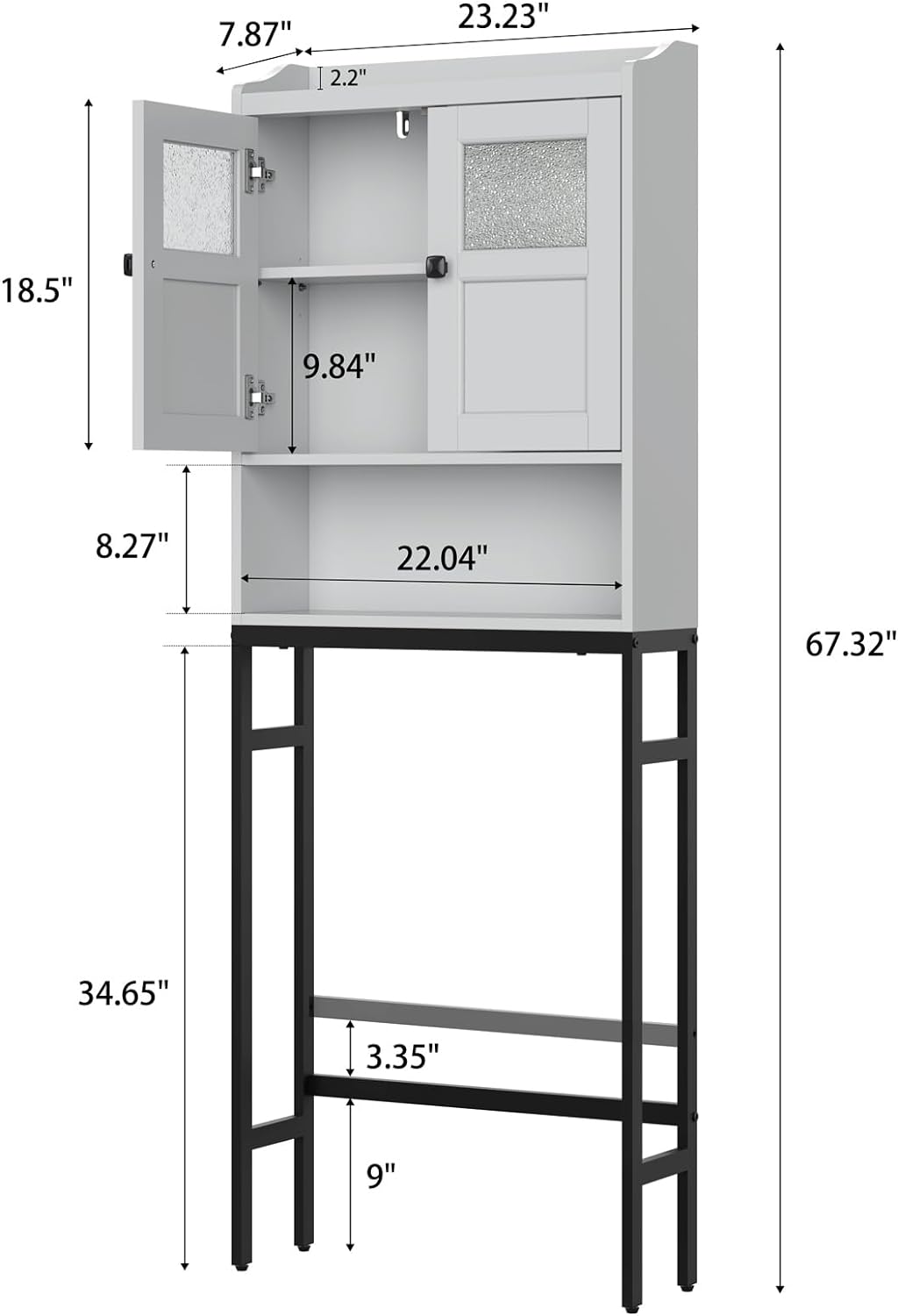 Optimize Your Bathroom Space: This over the toilet storage cabinet (67.32'' H x 23.23'' L x 7.87'' D) is designed to free up bathroom countertops and tap into the vacant area above the toilet. It provides ample room for all your bathroom essentials. With a clearance of 34.57" from the floor to the bottom shelf, this storage rack fits over most standard toilets.