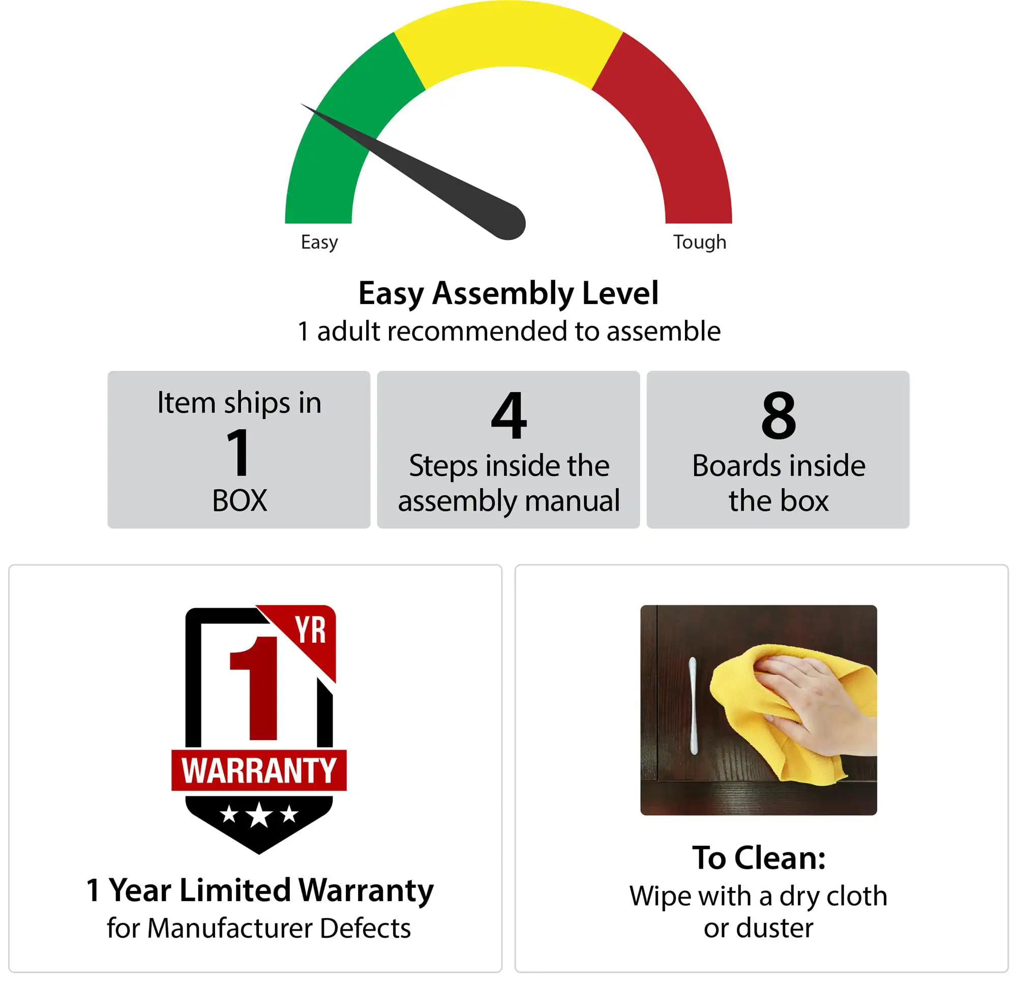- Made of laminated hollow core and particleboard, the black oak woodgrain finish pairs with any style and décor