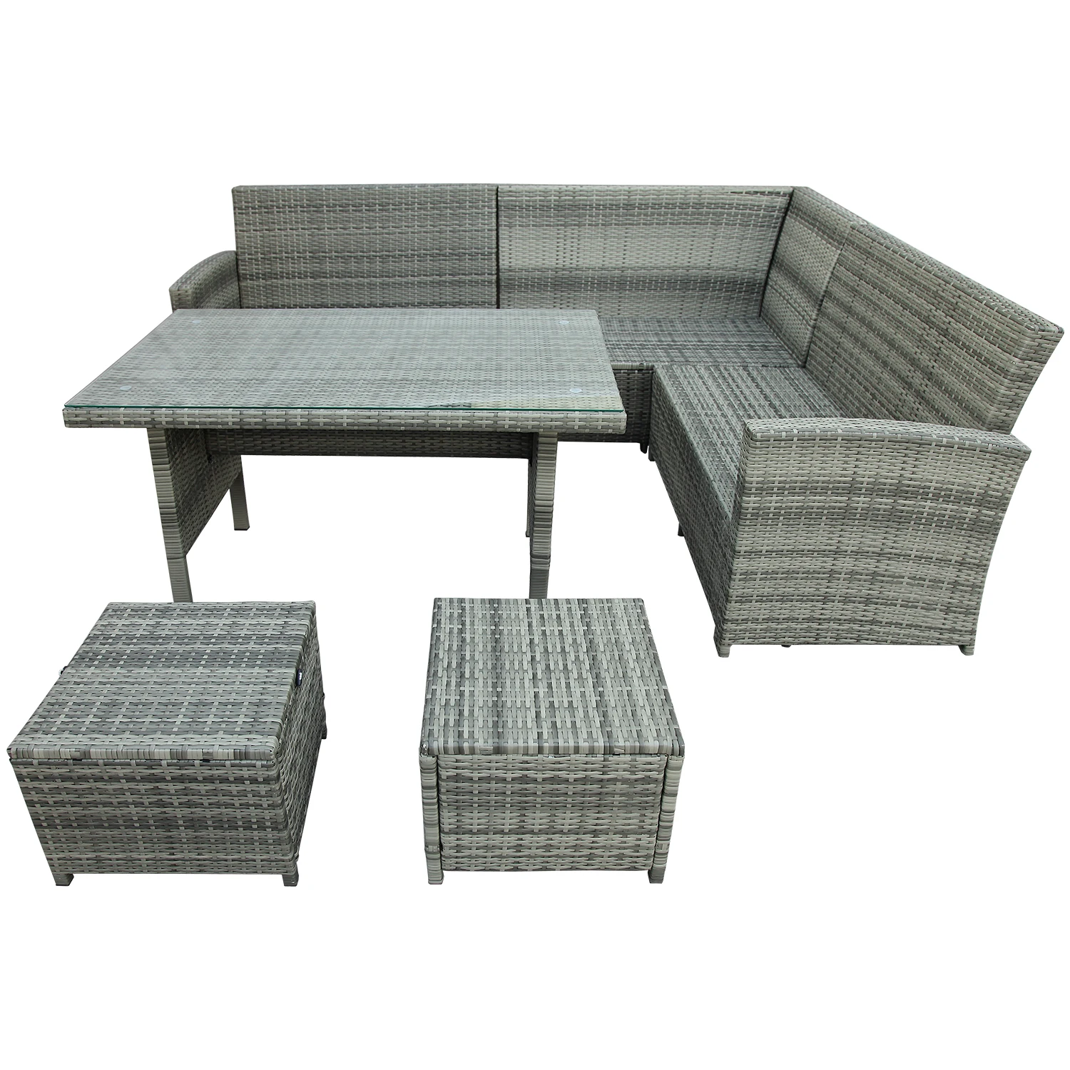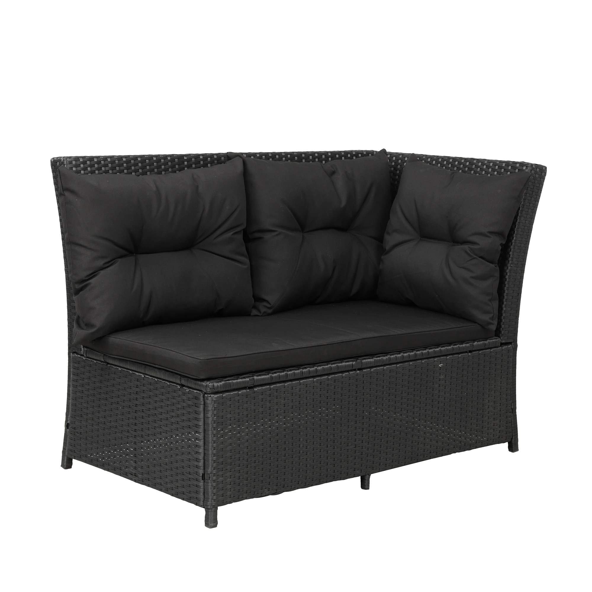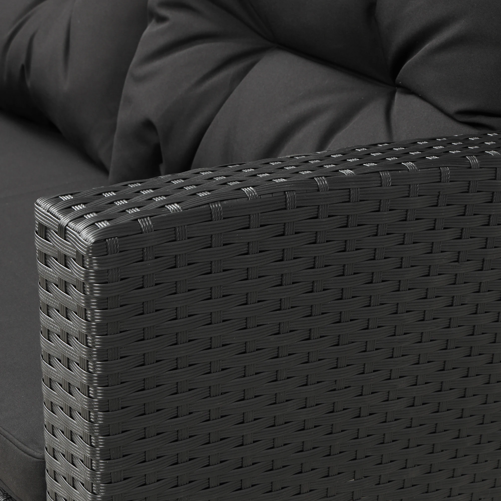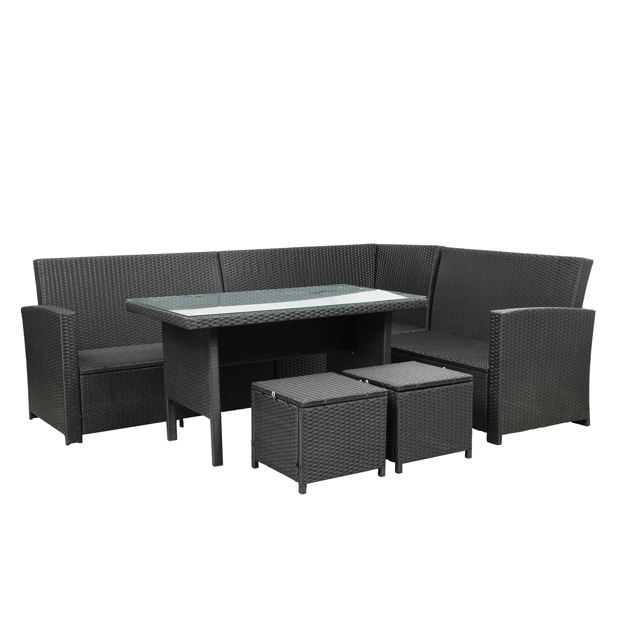 Patio Furniture 6-Piece Set Outdoor Sectional Sofa with Glass Table Ottomans for Pool Backyard Lawn Black/Gray[US-Depot]