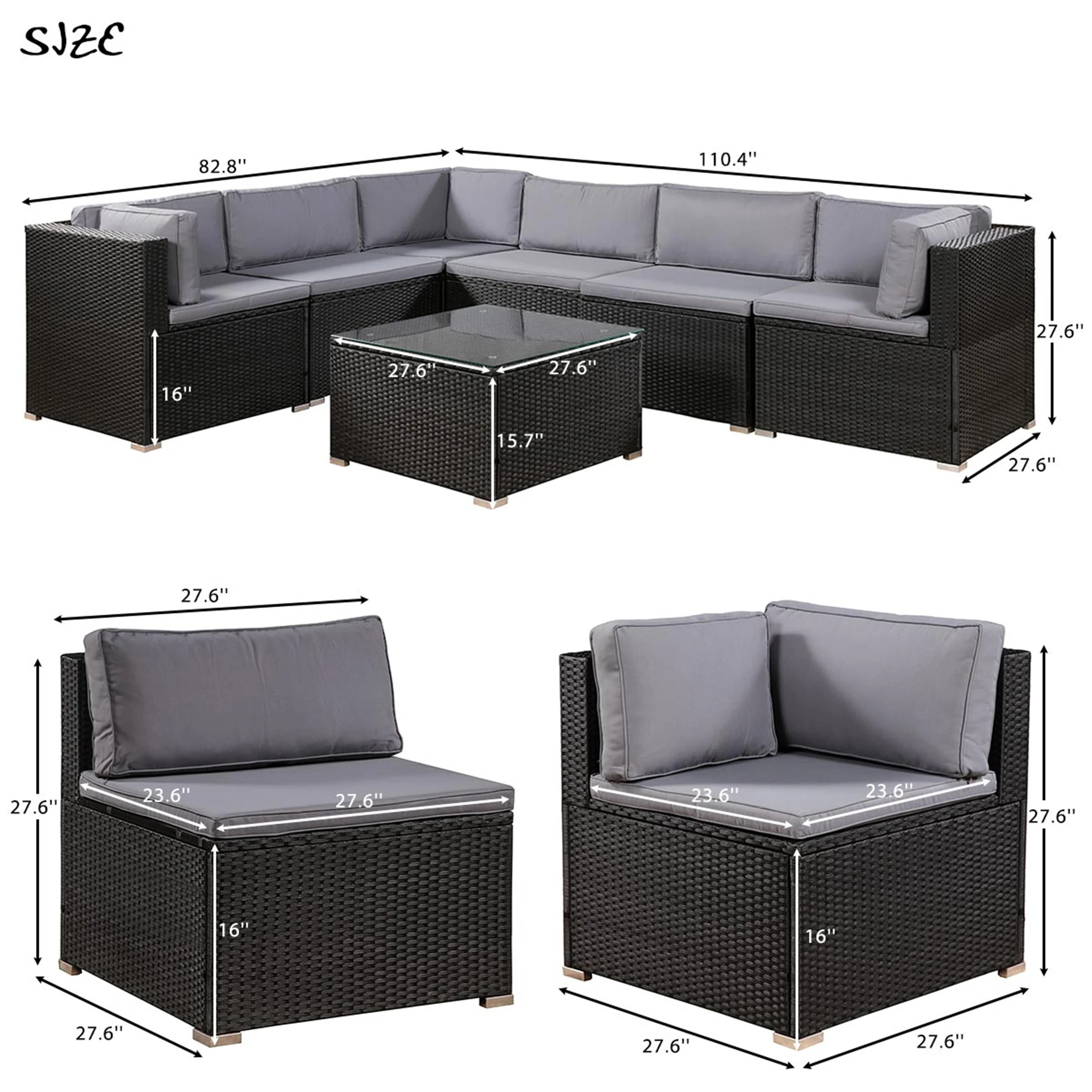 7 piece patio furniture set includes 3 Corner Chairs + 3 Middle Chairs + 1 Coffee Table