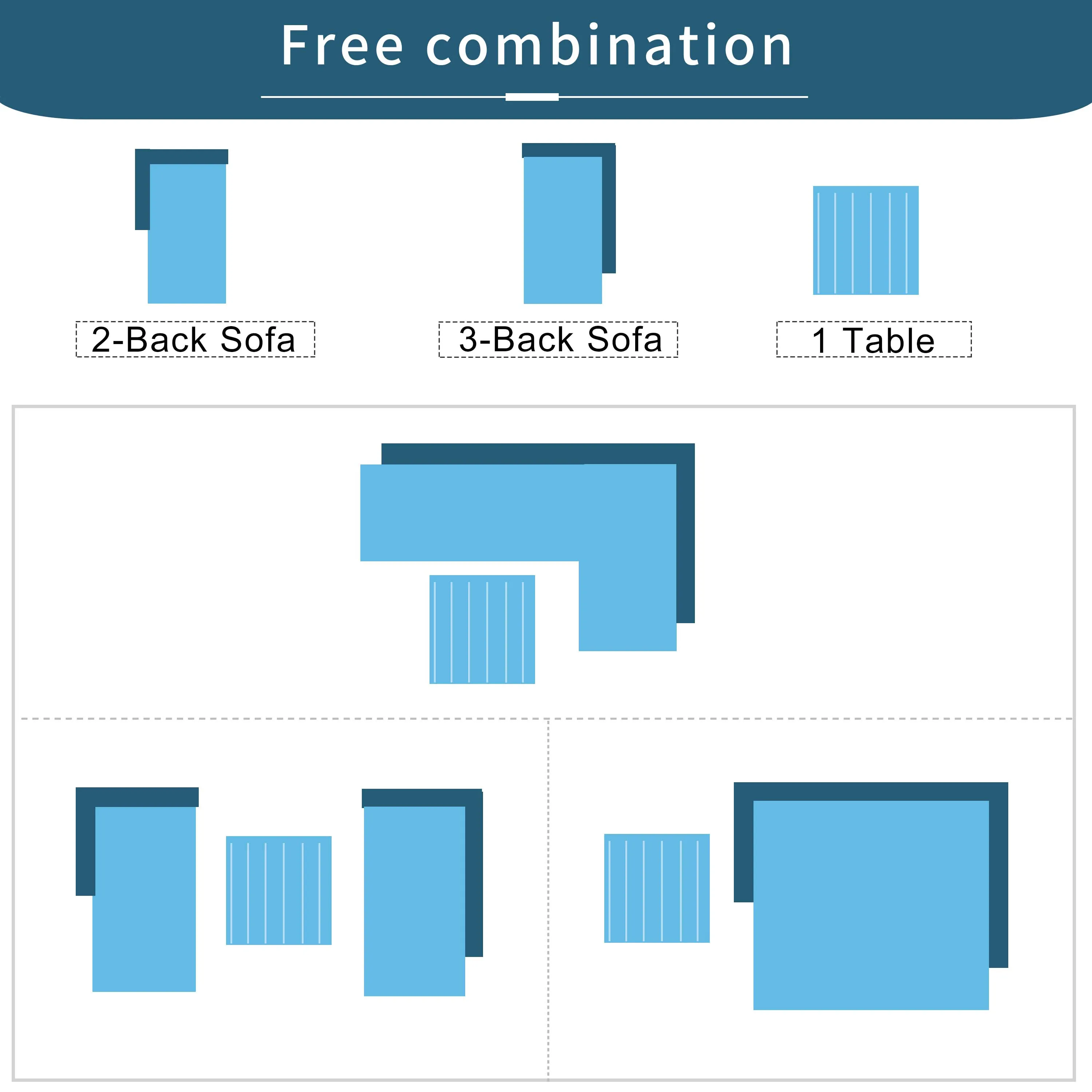 Although the sofa set contains 2 sofas and 1 coffee table, 5 pillows and 4 seat cushions, the installation is not complicated at all. It is unnecessary to worry about detailed errors in the installation process because you may finish in a new style!