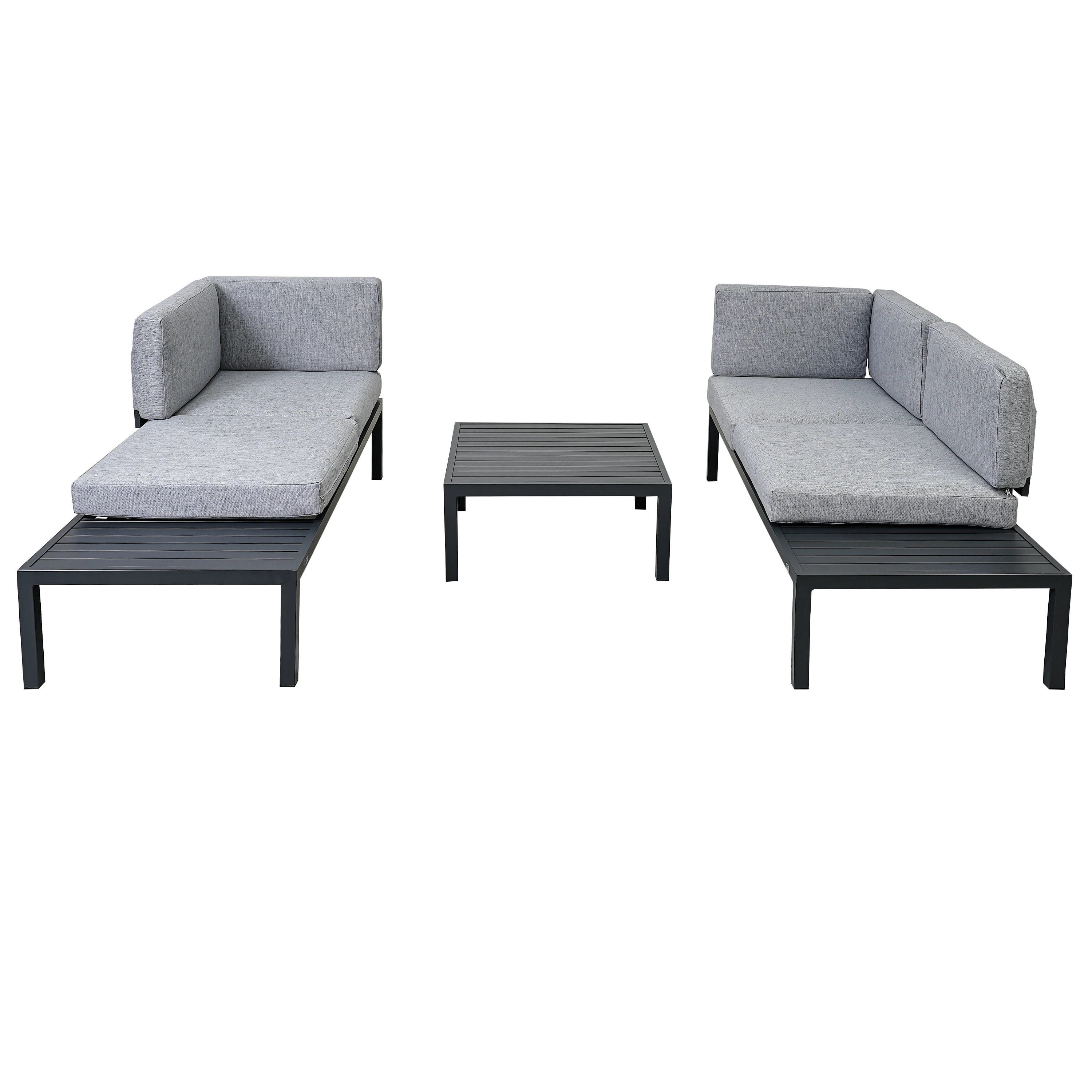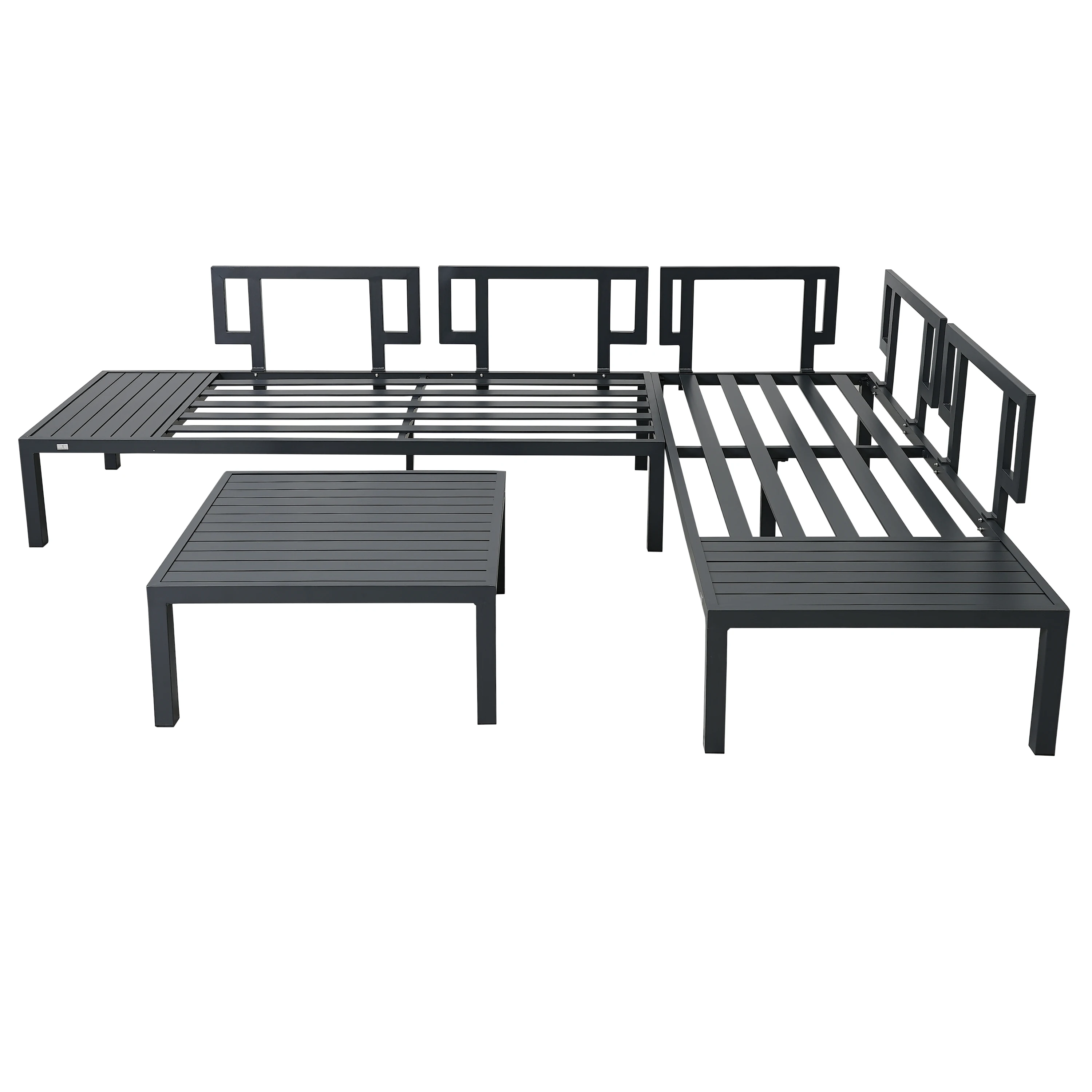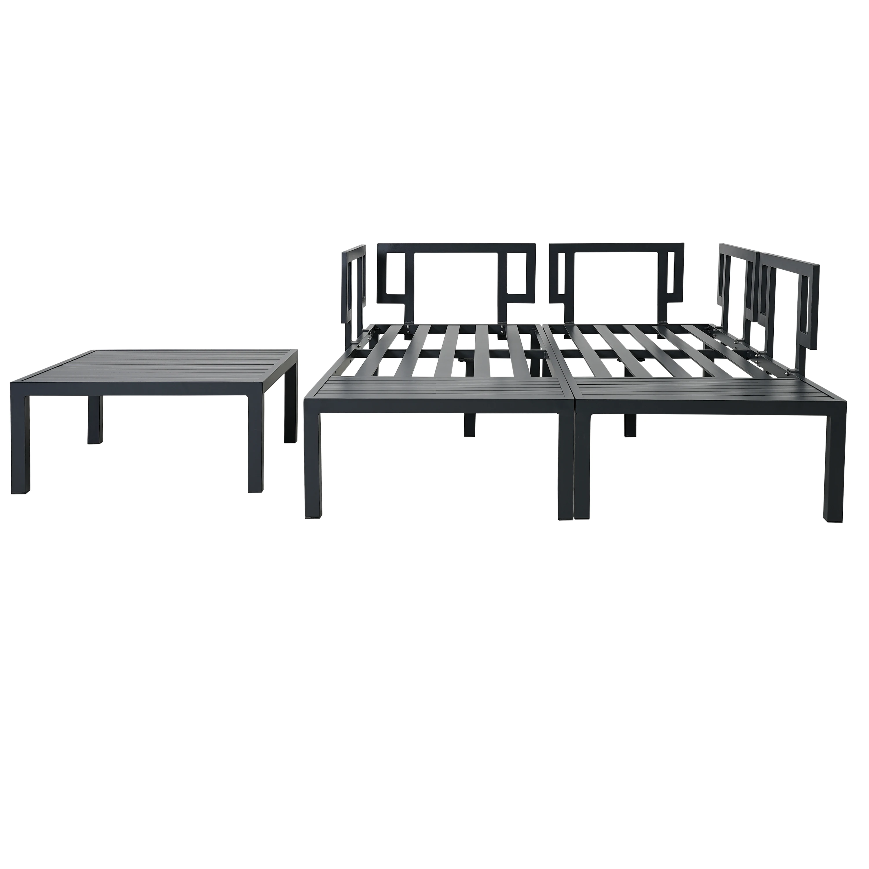 Patio Furniture Set Outdoor 3-piece Aluminum Alloy Sectional Sofa Set with End Table and Coffee Table,Black Frame+Gray Cushion