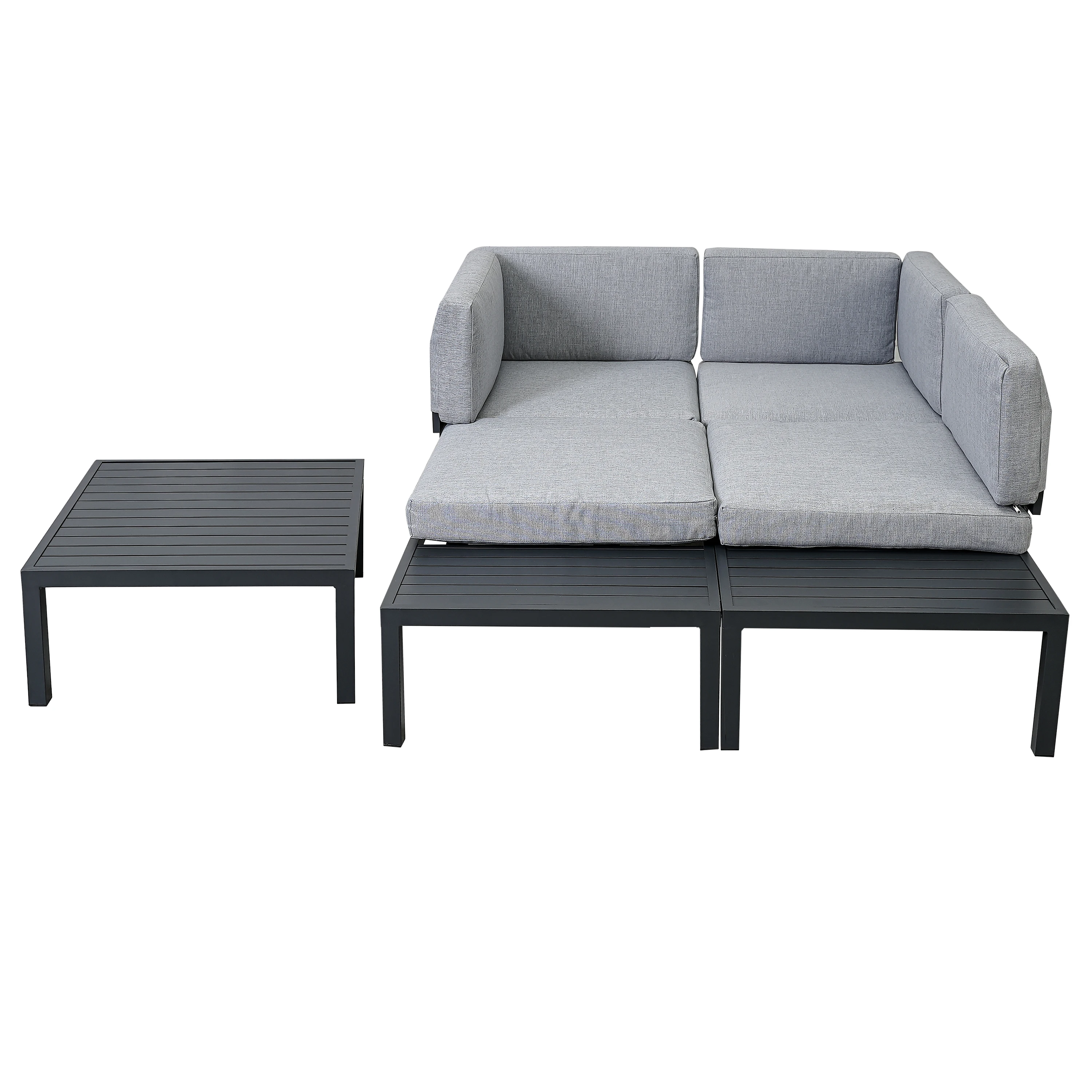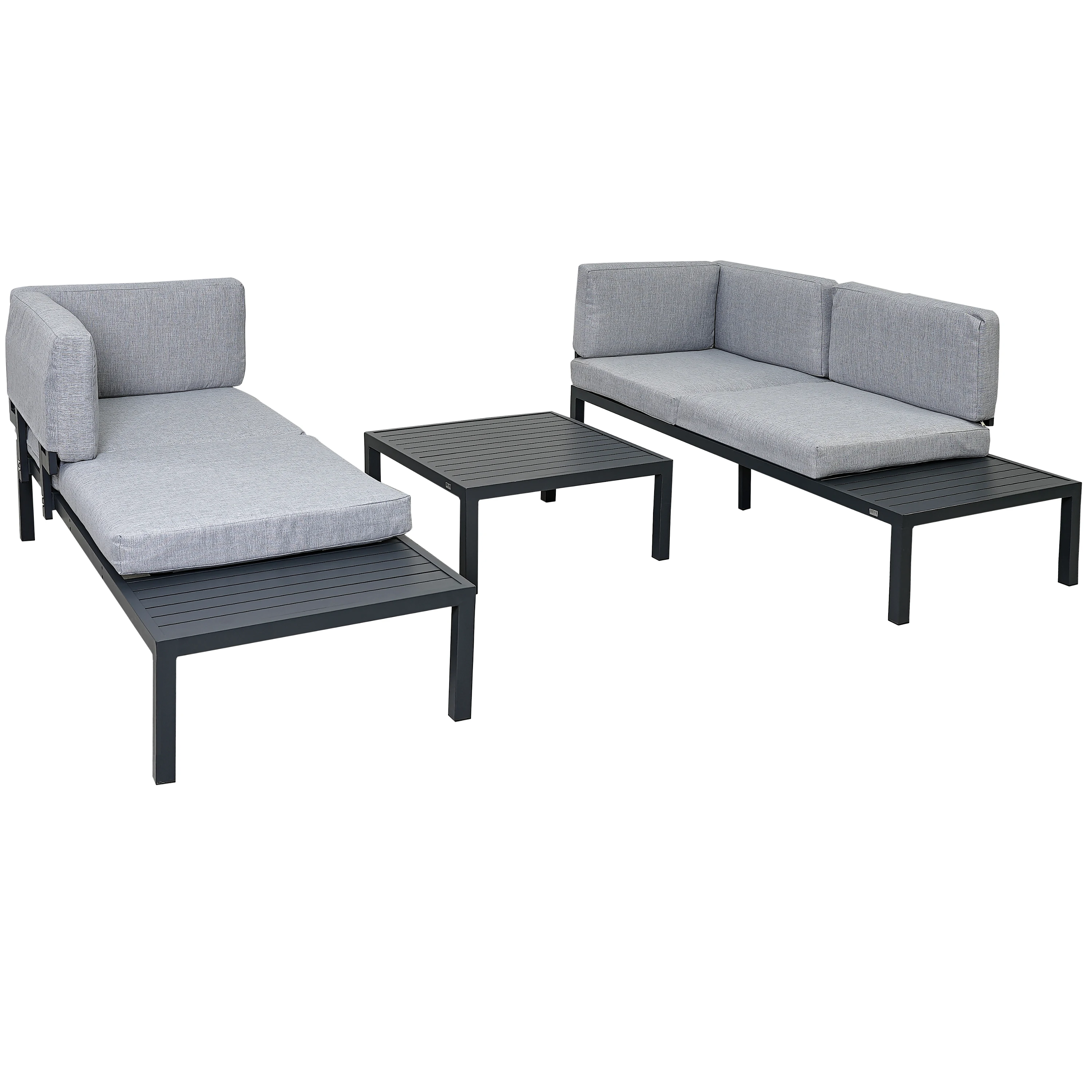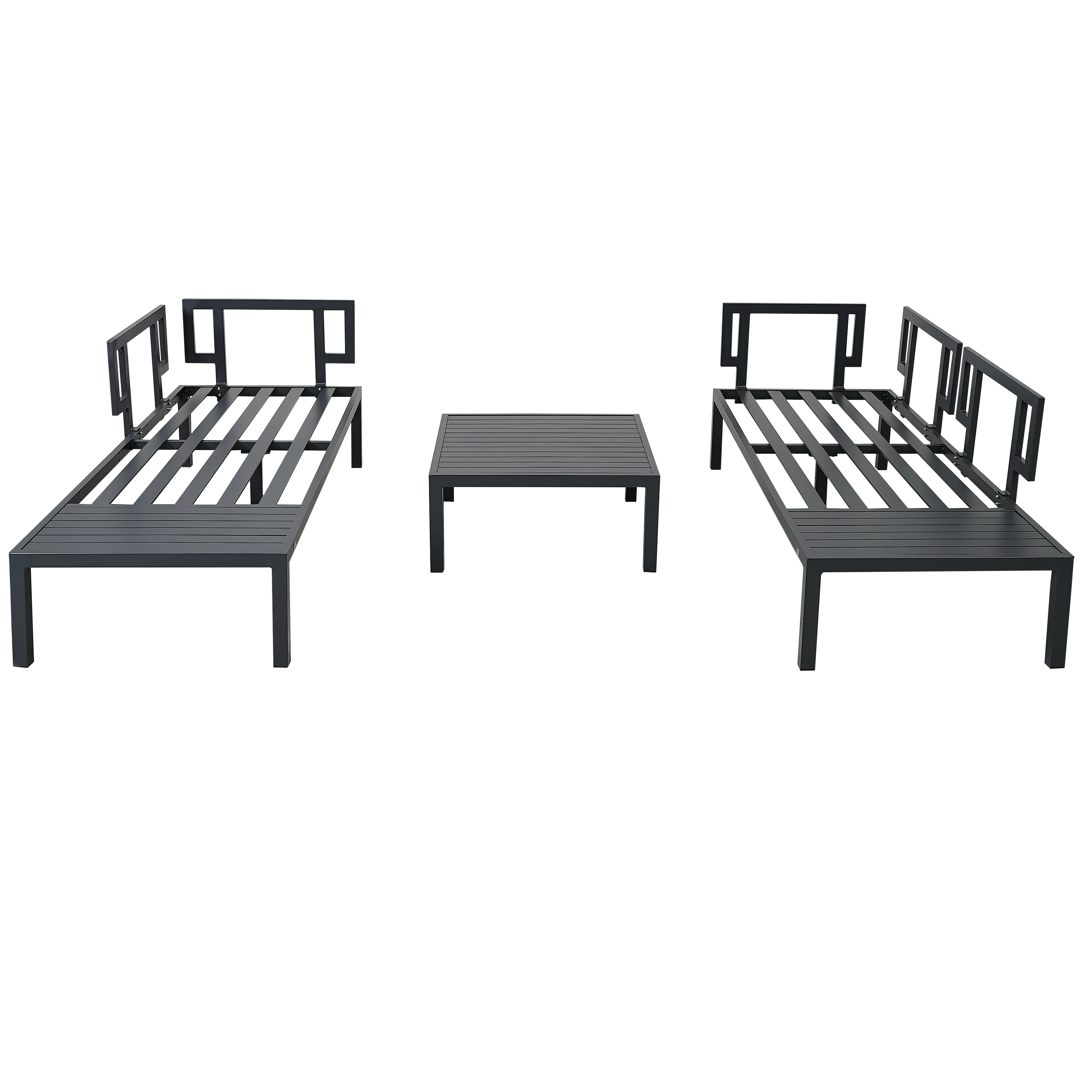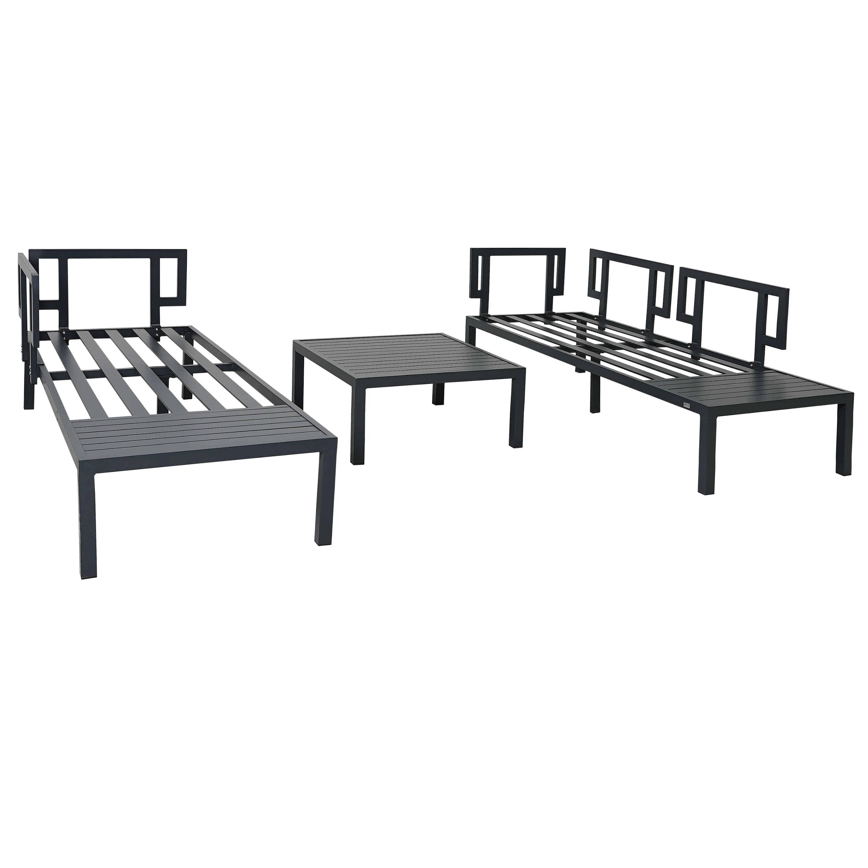 Patio Furniture Set Outdoor 3-piece Aluminum Alloy Sectional Sofa Set with End Table and Coffee Table,Black Frame+Gray Cushion
