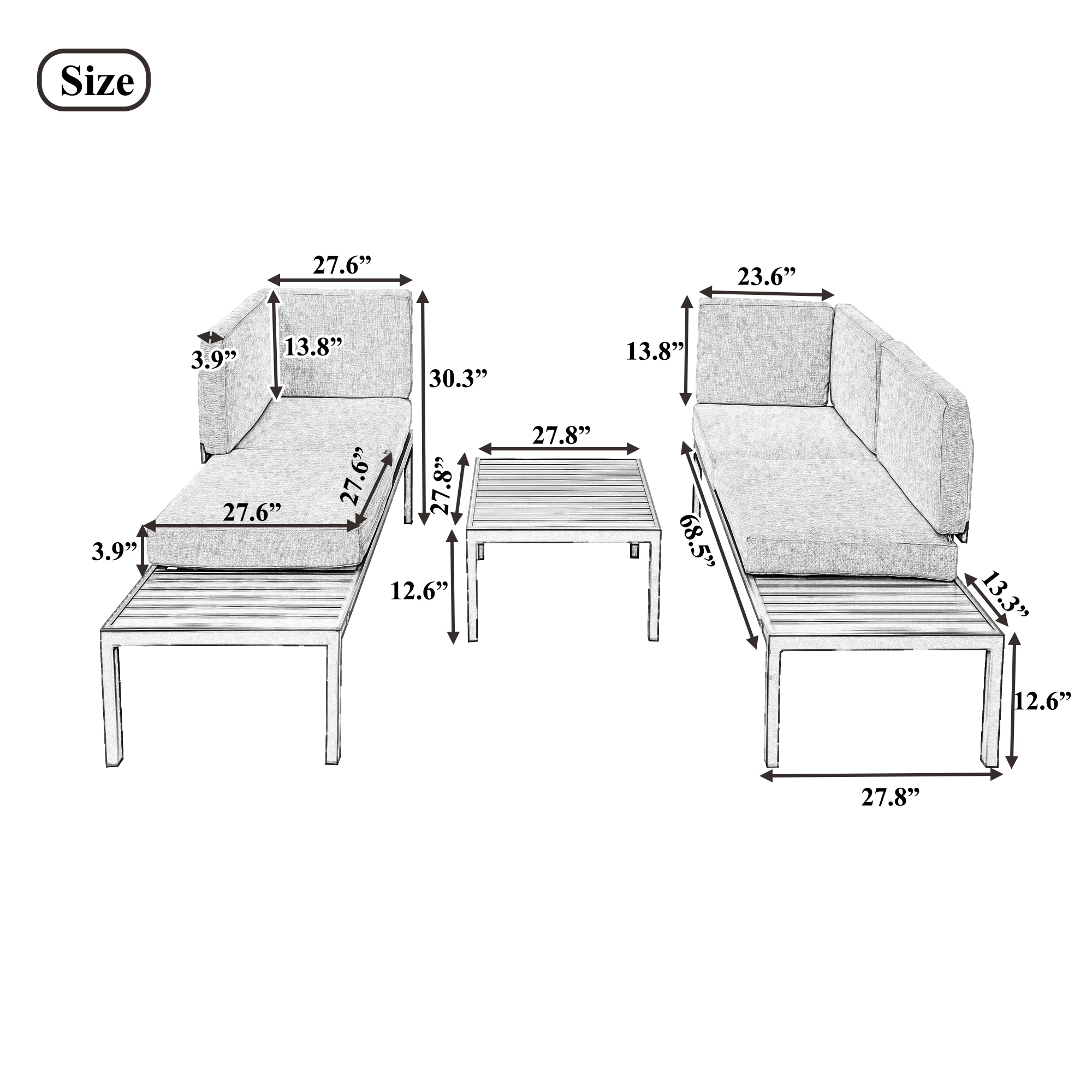 Sofa:68.5x27.8x30.3inch(LXWXH);Coffee Table:27.8x27.8x12.6inch(LXWXH);Cushion:27.6x27.6x3.9inch(LXWXH);Pillow:27.6x13.8x3.9inch(only one smaller size:23.6x13.8x3.9).