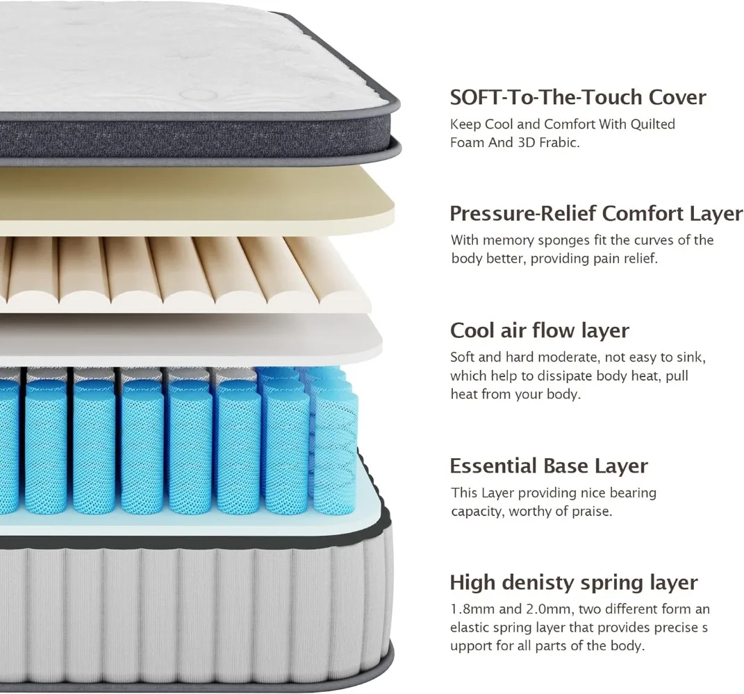 Serweet 12 Inch Memory Foam Hybrid Queen Mattress Pocket Innersprings for Motion Isolation Pressure in Century-Old Factory