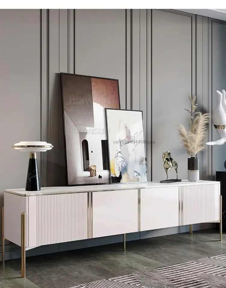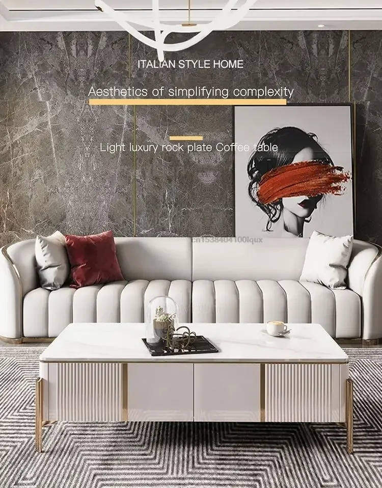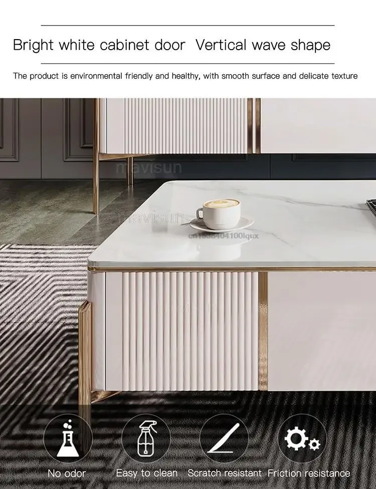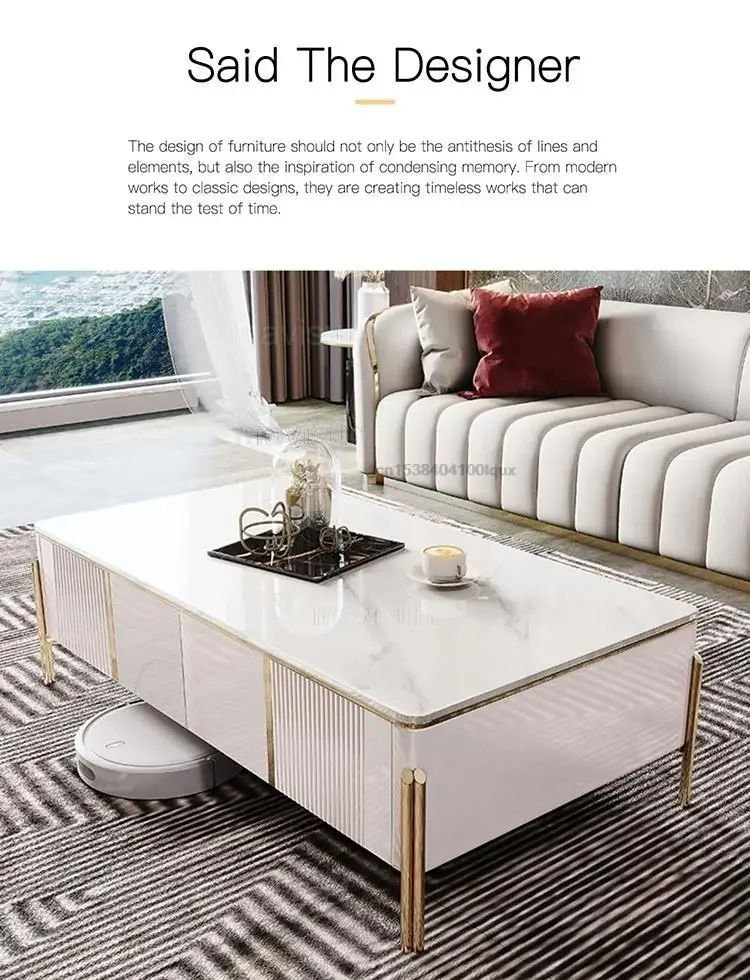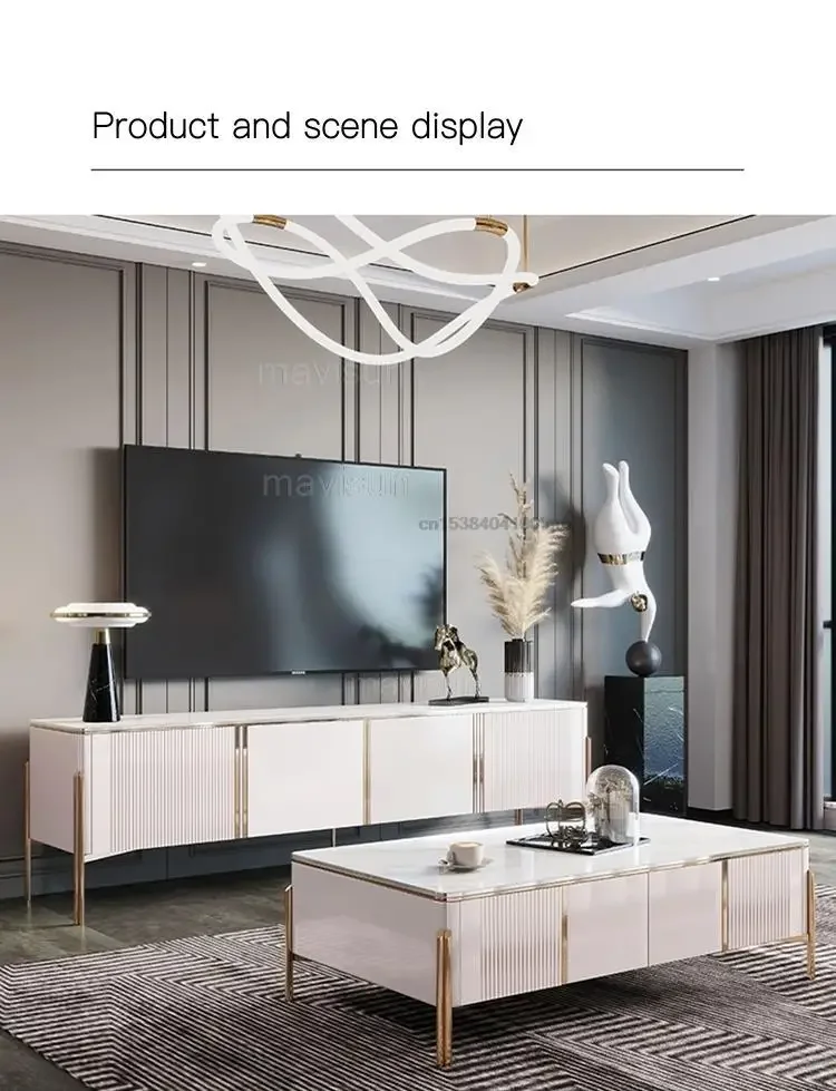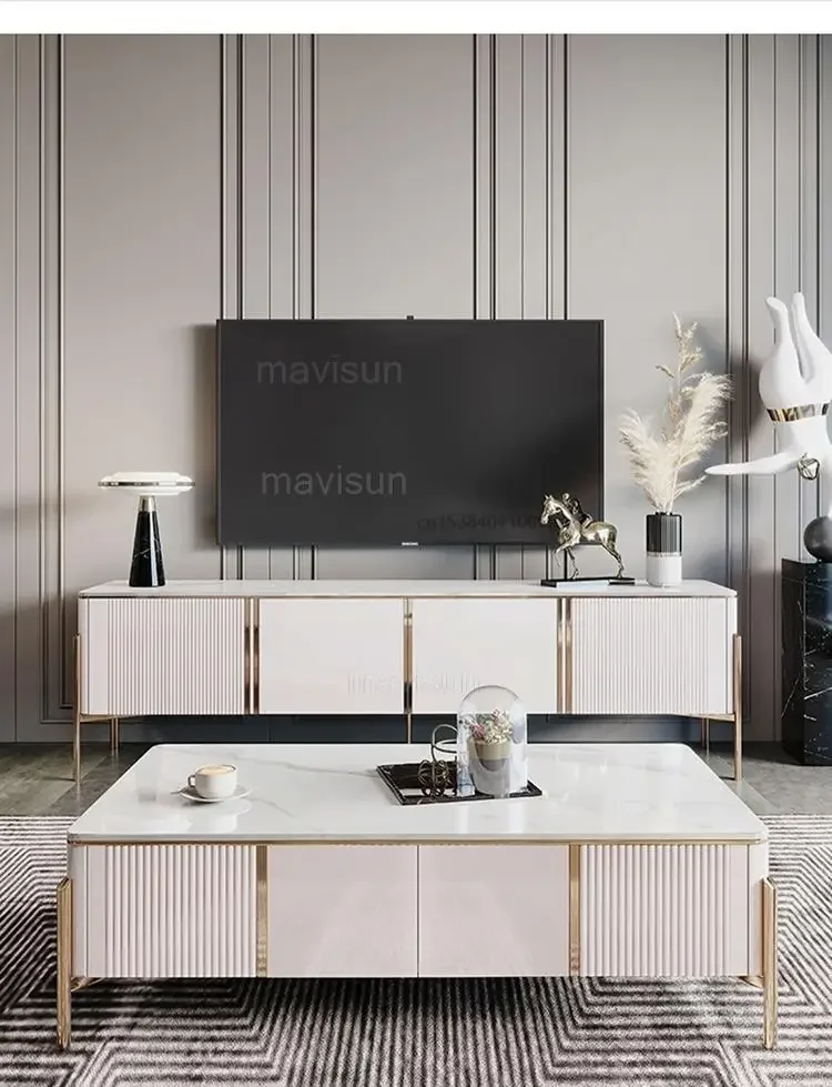 Shelf Tv Stand Modern High Quality Luxury TV Cabinet Coffee Tables Set Gold Stand Slate Tabletop For Living Room Furniture