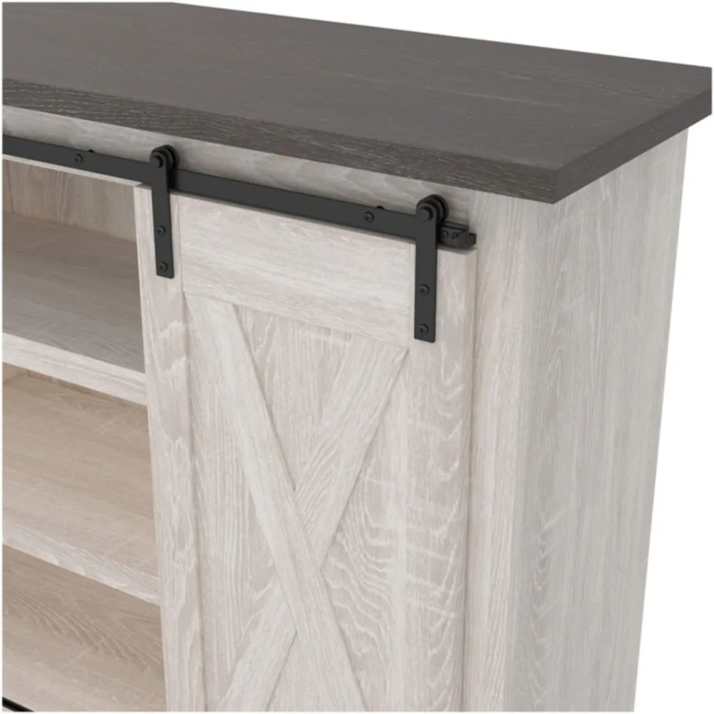 - MODERN FARMHOUSE DESIGN: Beautifully made to accommodate your media equipment with adjustable shelving, cutouts for wire management and a pair of sliding barn doors you can center or place to the side