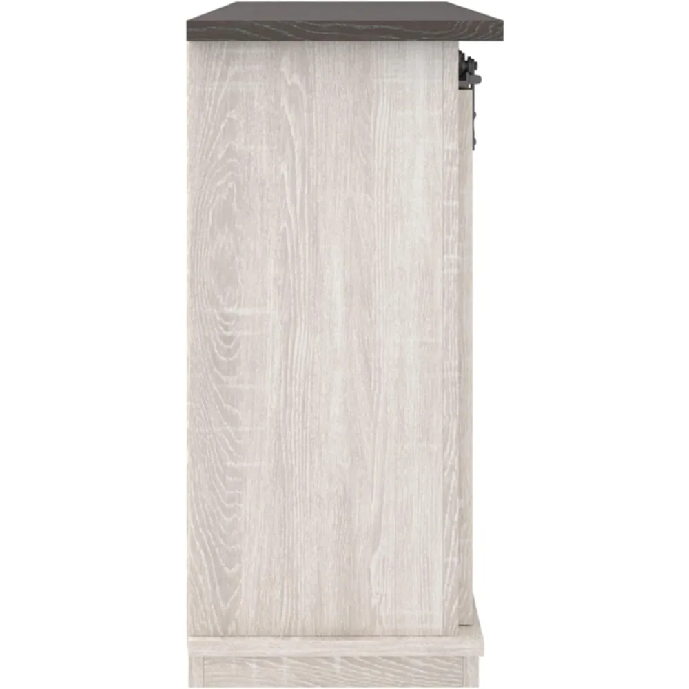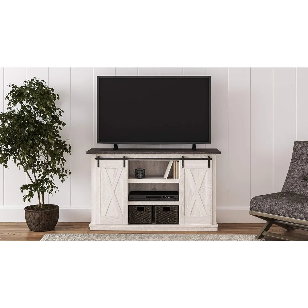 Signature Design Farmhouse TV Stand Fits TVs up to 50" with Sliding Barn Doors and Storage Shelves, Whitewash & Gray