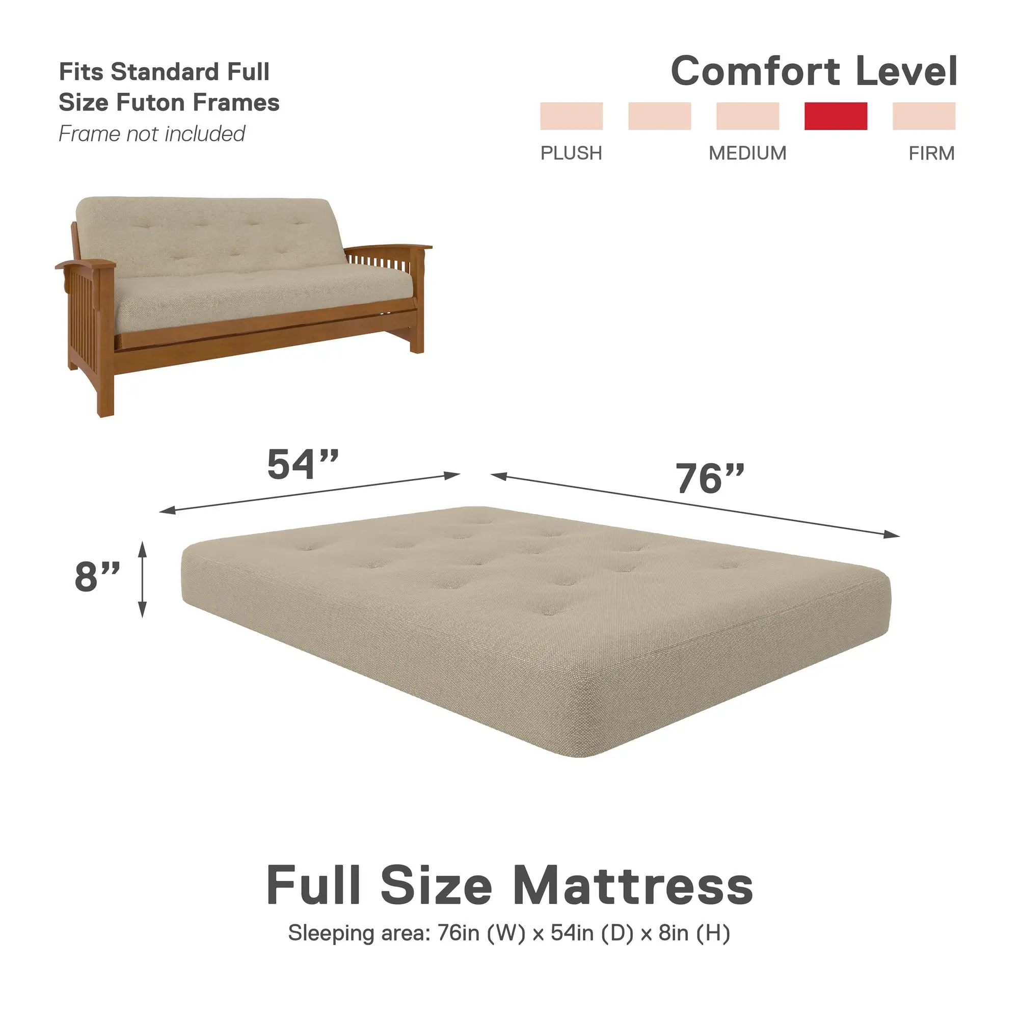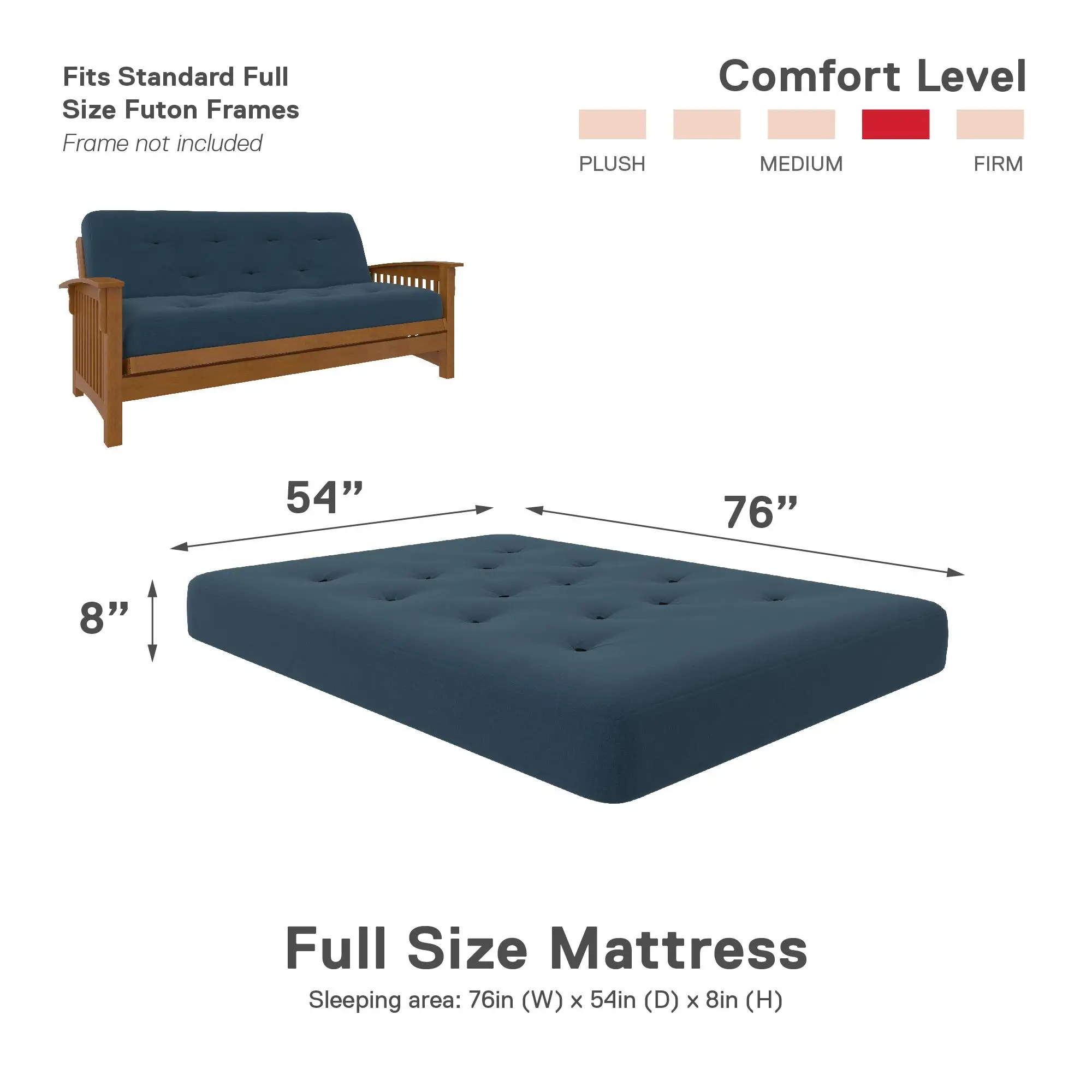- Flip it and reverse it, use this 8-inch futon mattress on both sides to reduce wear and tear and experience premium body-hugging comfort sitting or sleeping while boosting the living room style power of your full-size futon frame (not included)